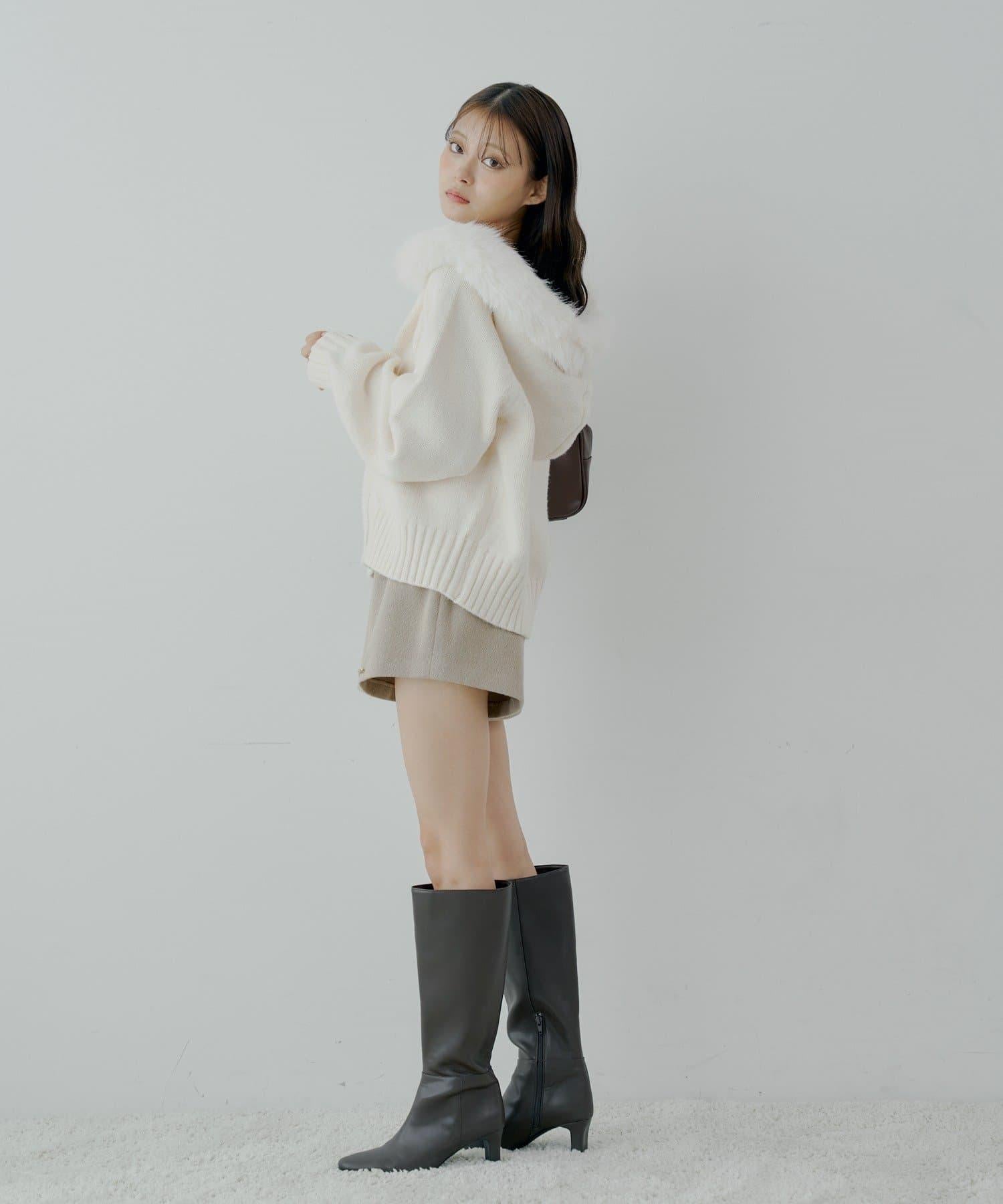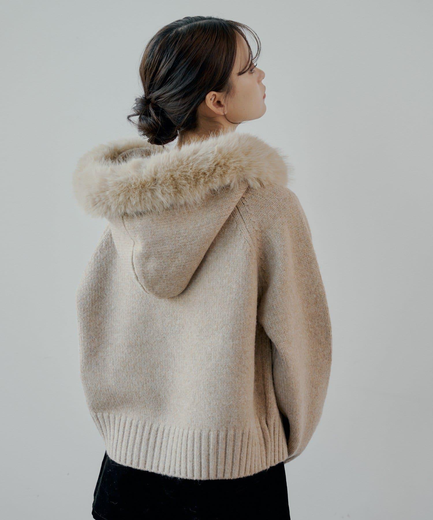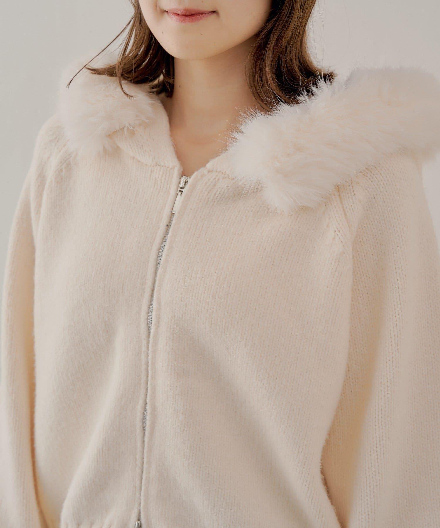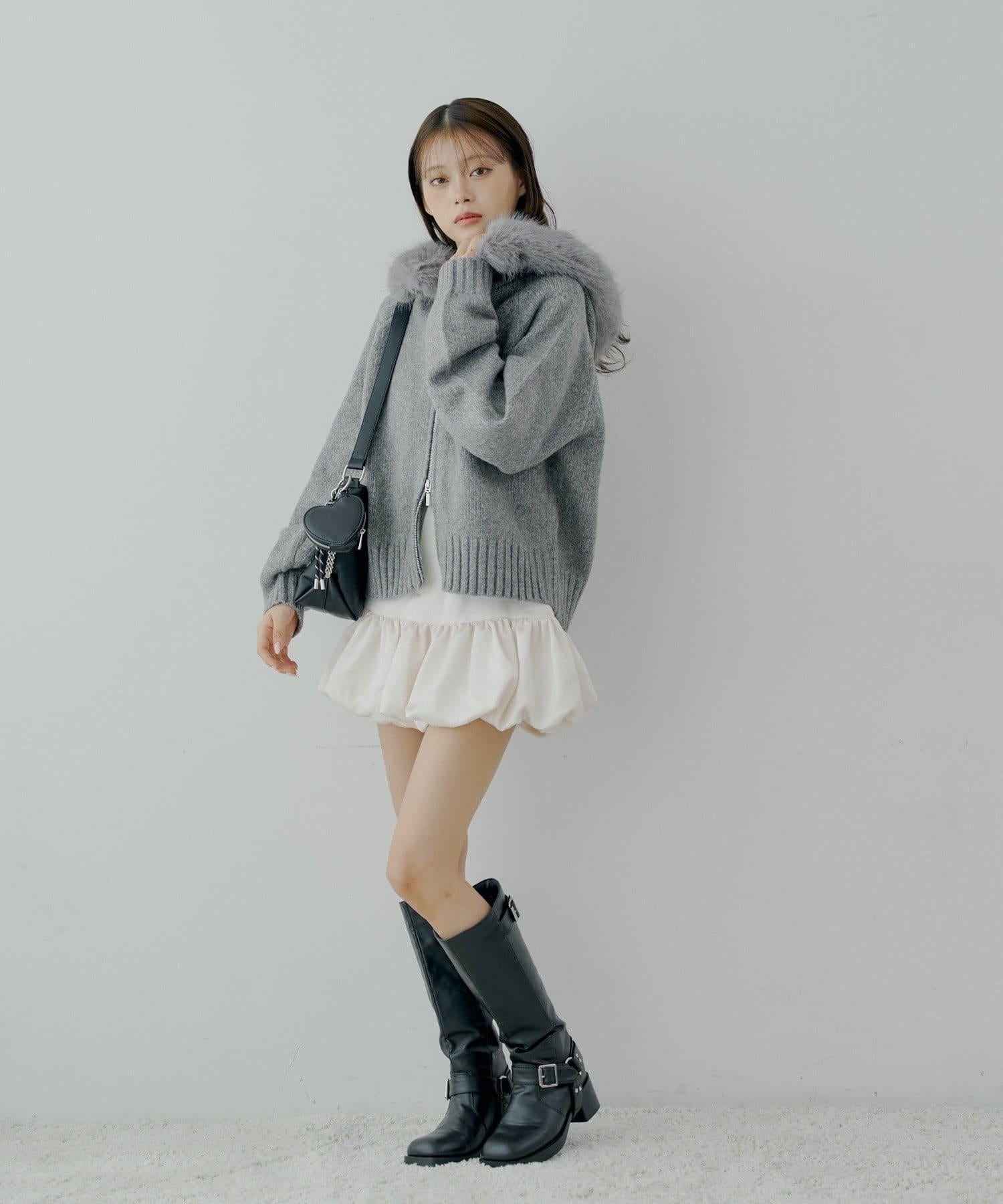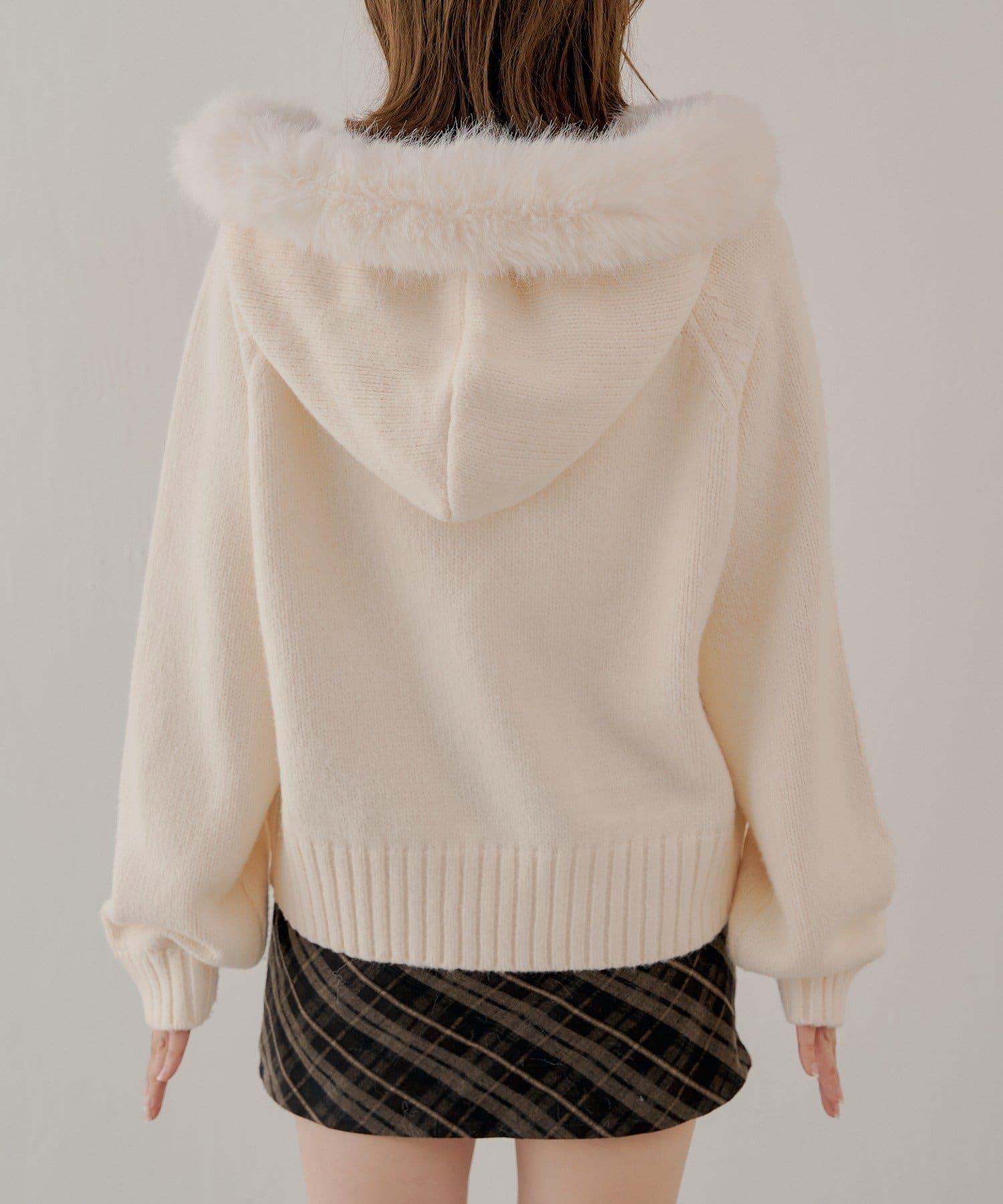 寬鬆 W 型拉鍊針織開衫,配以蓬鬆毛皮,雙向設計。