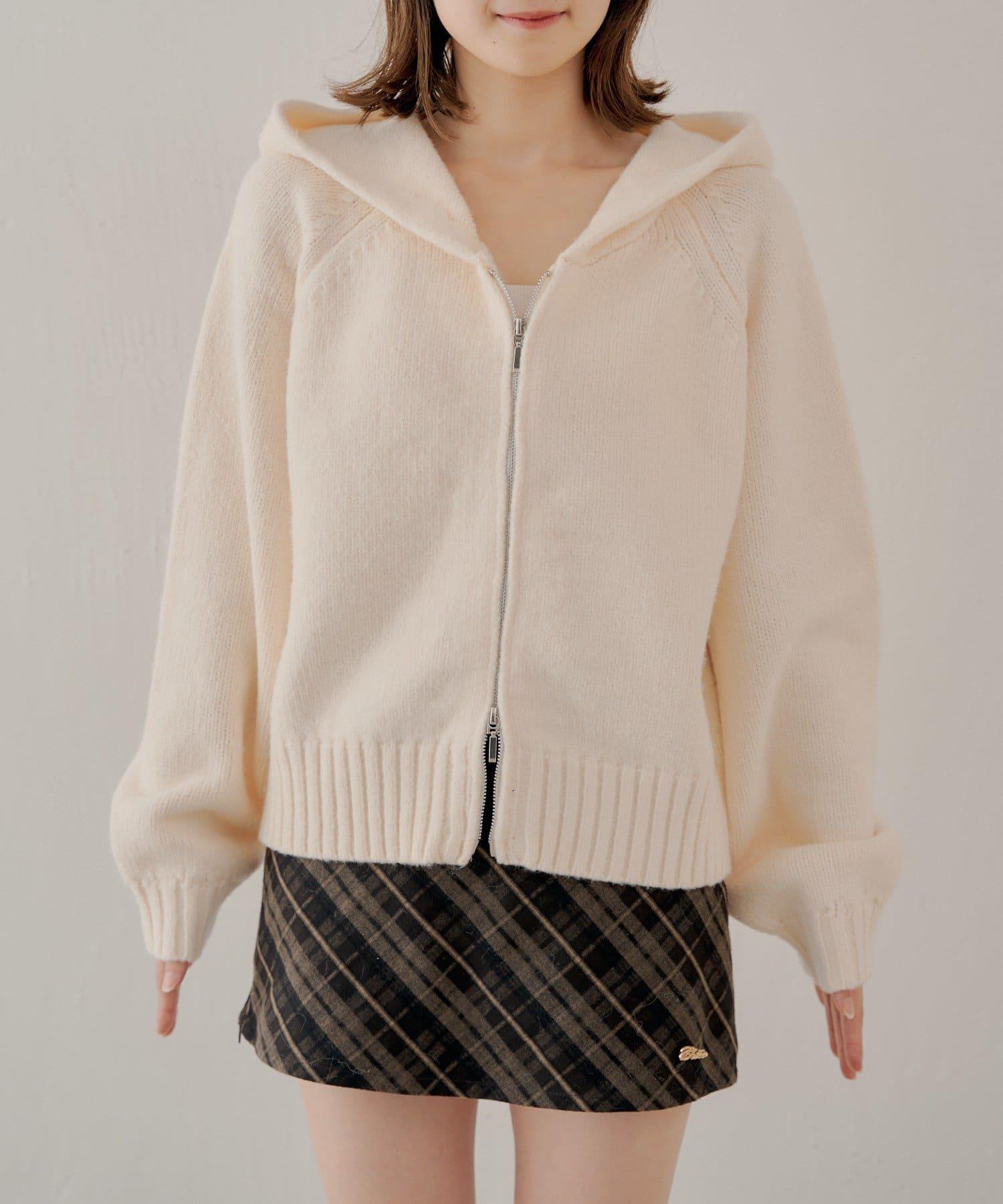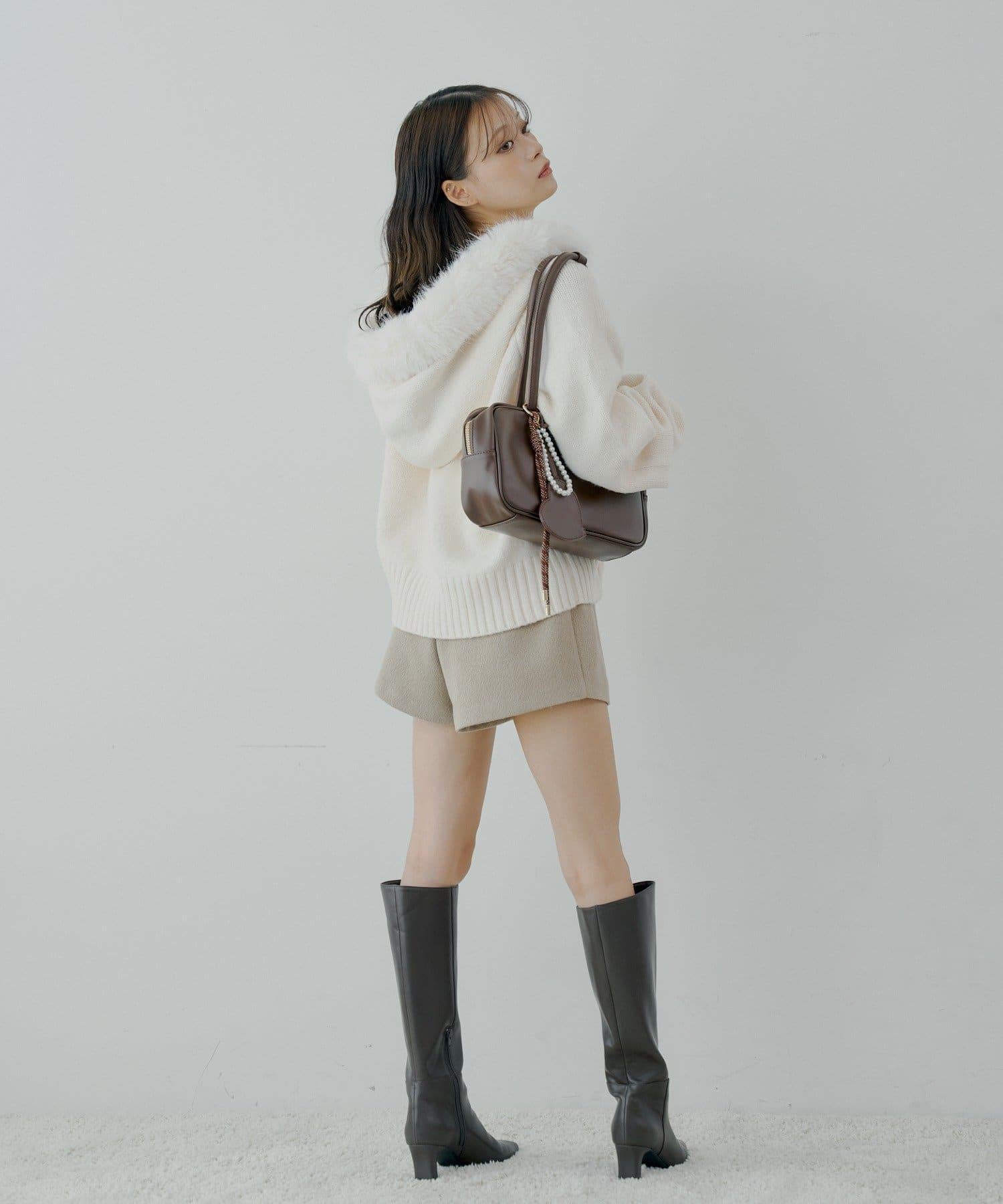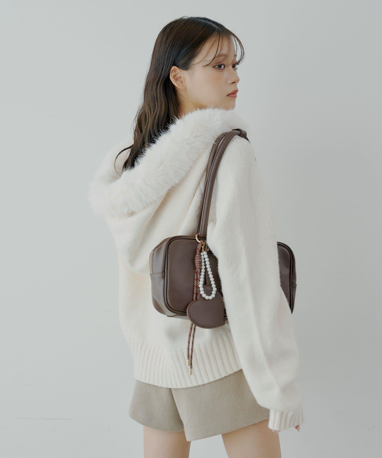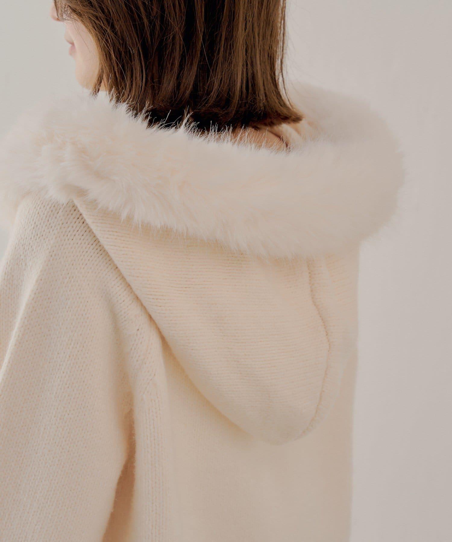 寬鬆 W 型拉鍊針織開衫,配以蓬鬆毛皮,雙向設計。