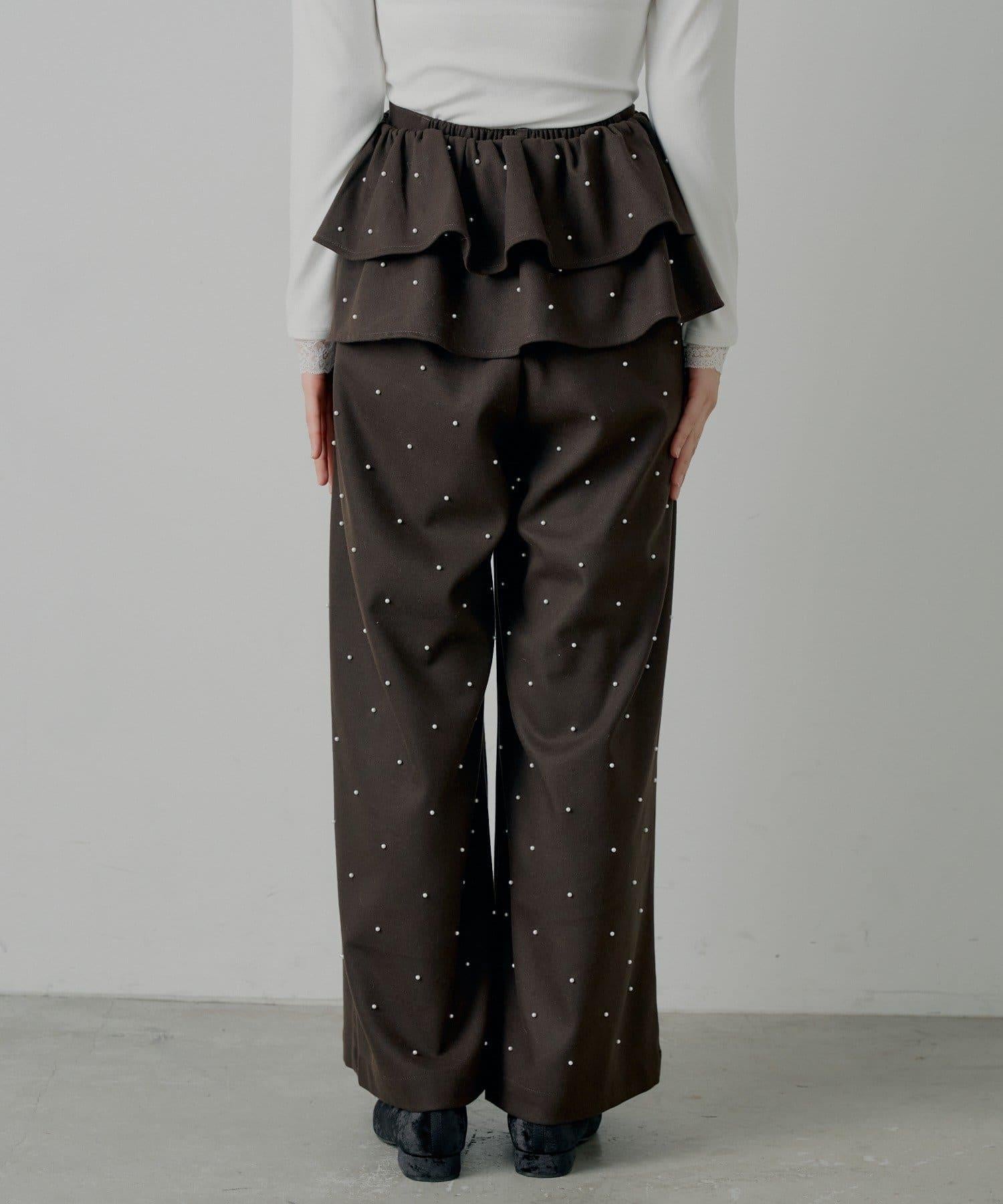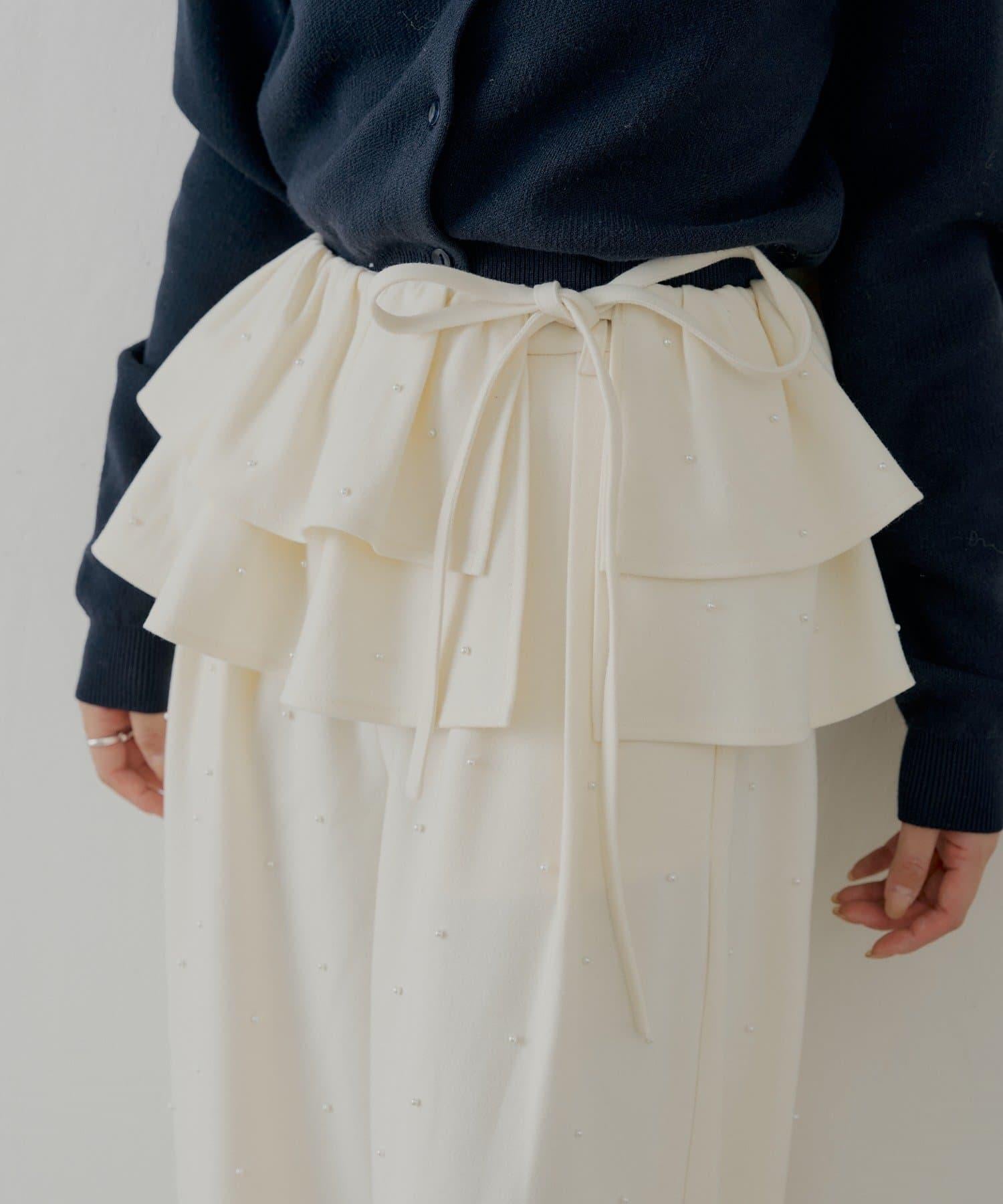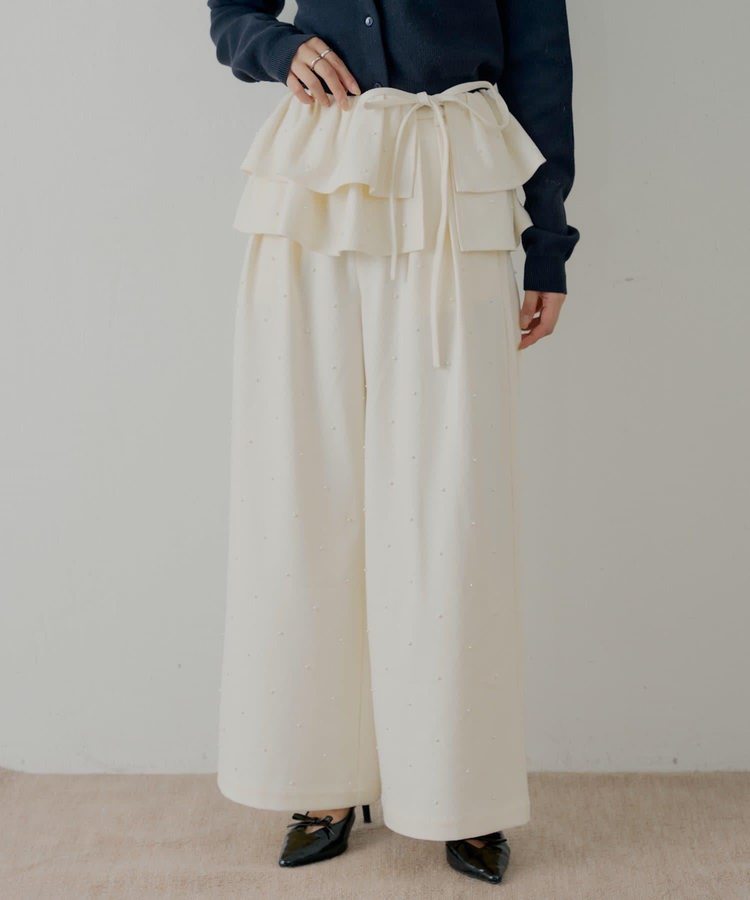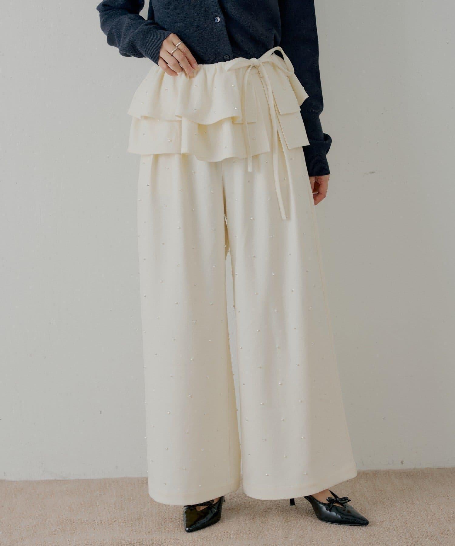 【SALON by Chico】可拆卸荷葉邊+珍珠裝飾寬鬆休閒褲