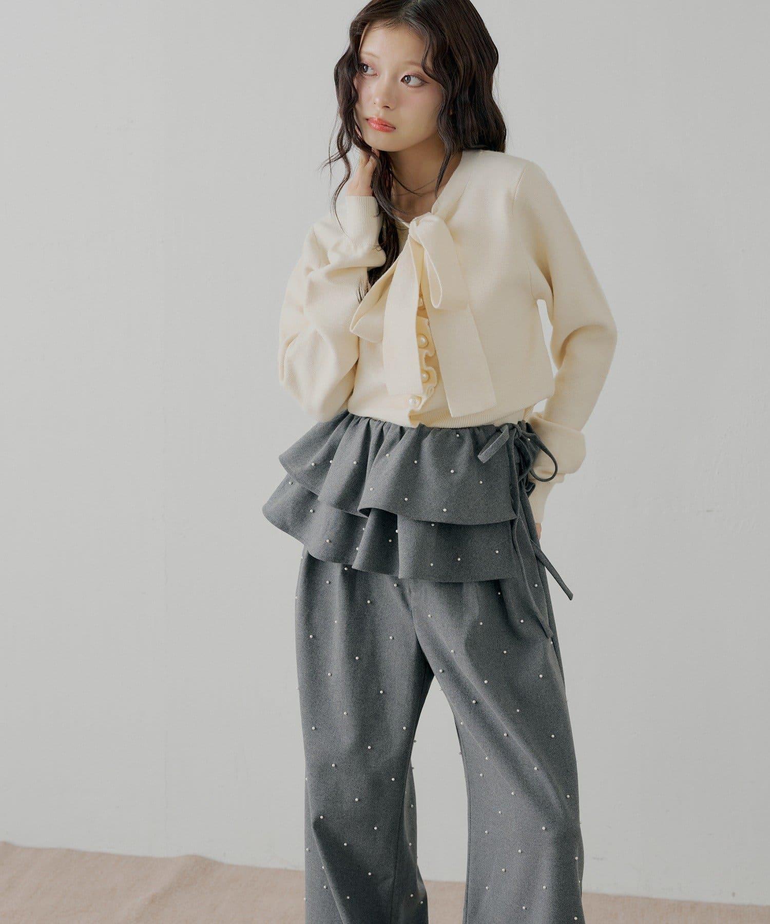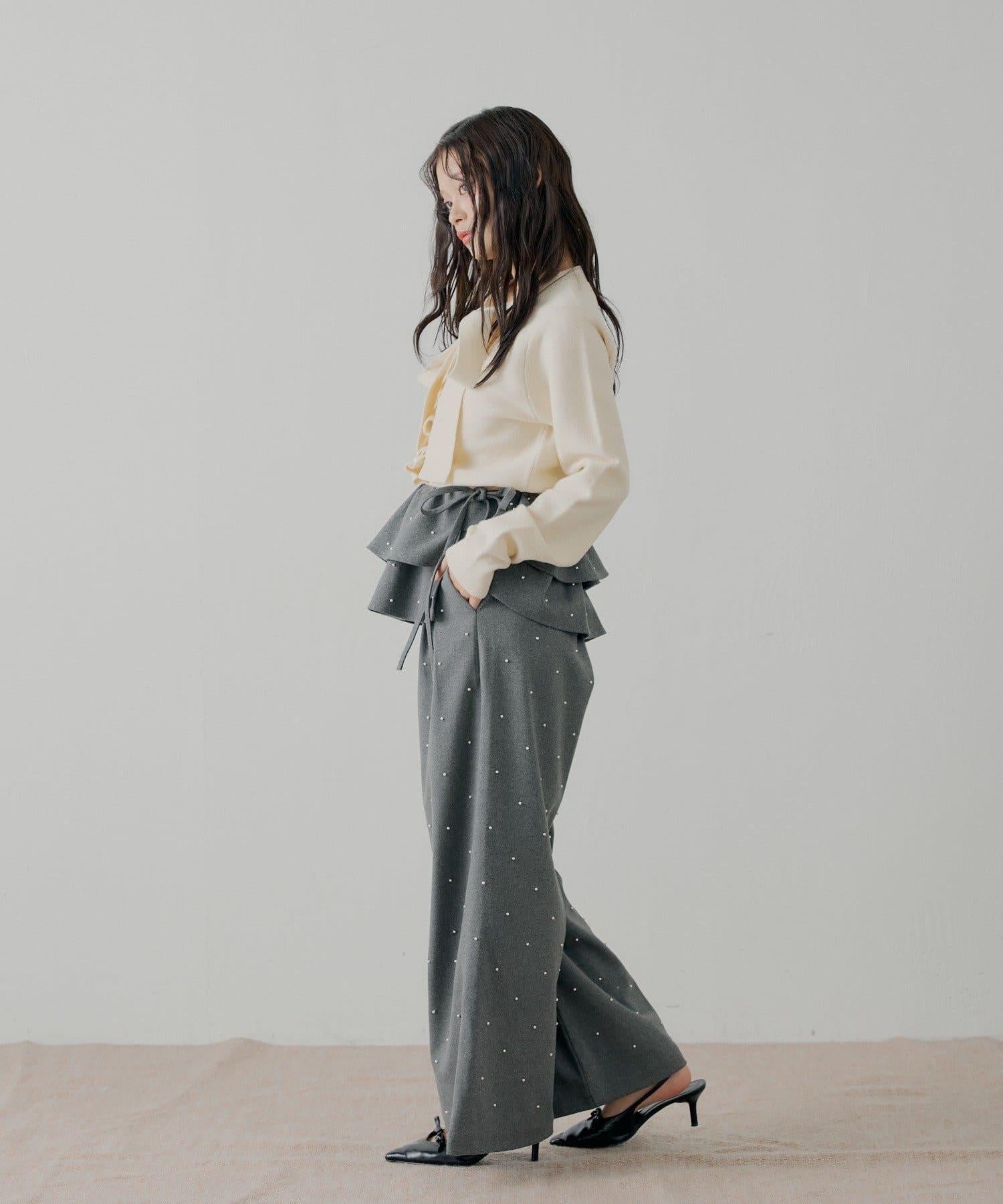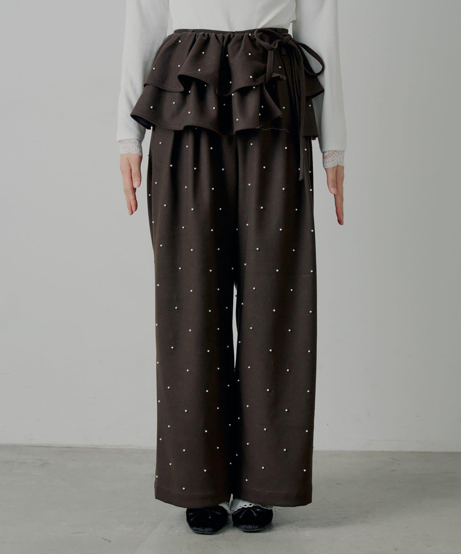 【SALON by Chico】可拆卸荷葉邊+珍珠裝飾寬鬆休閒褲