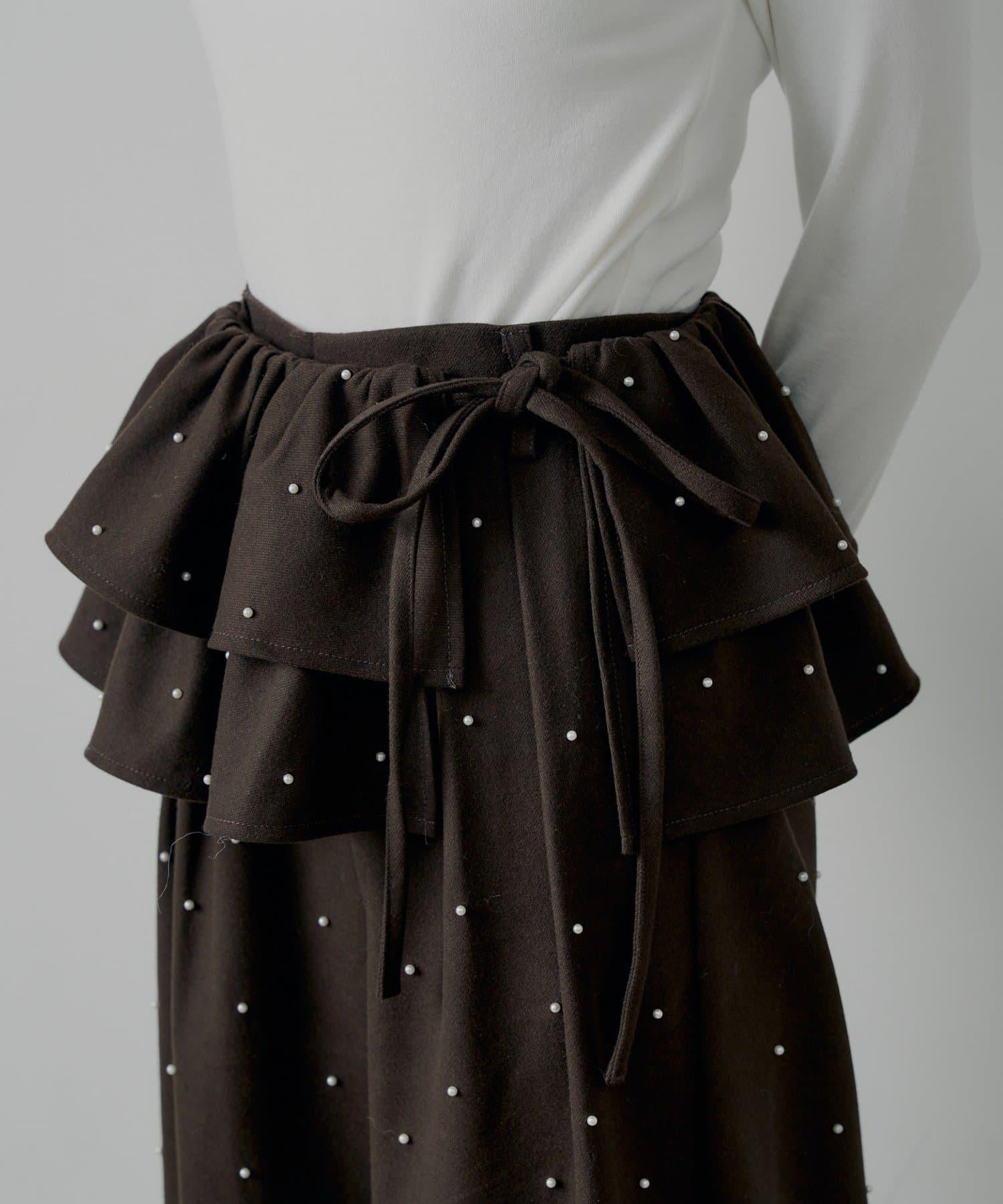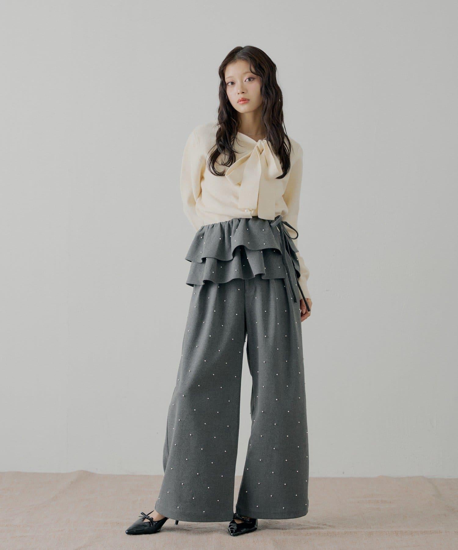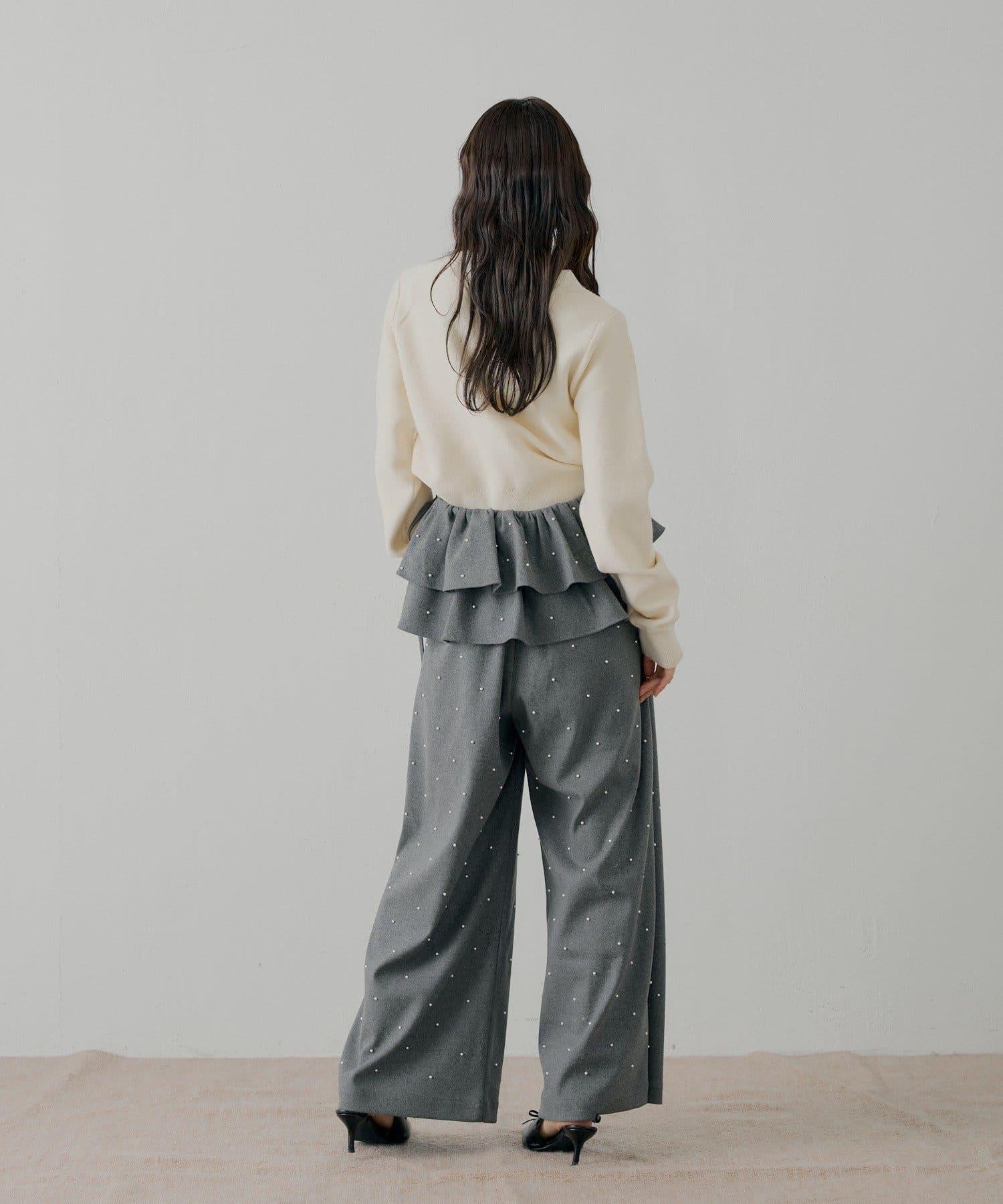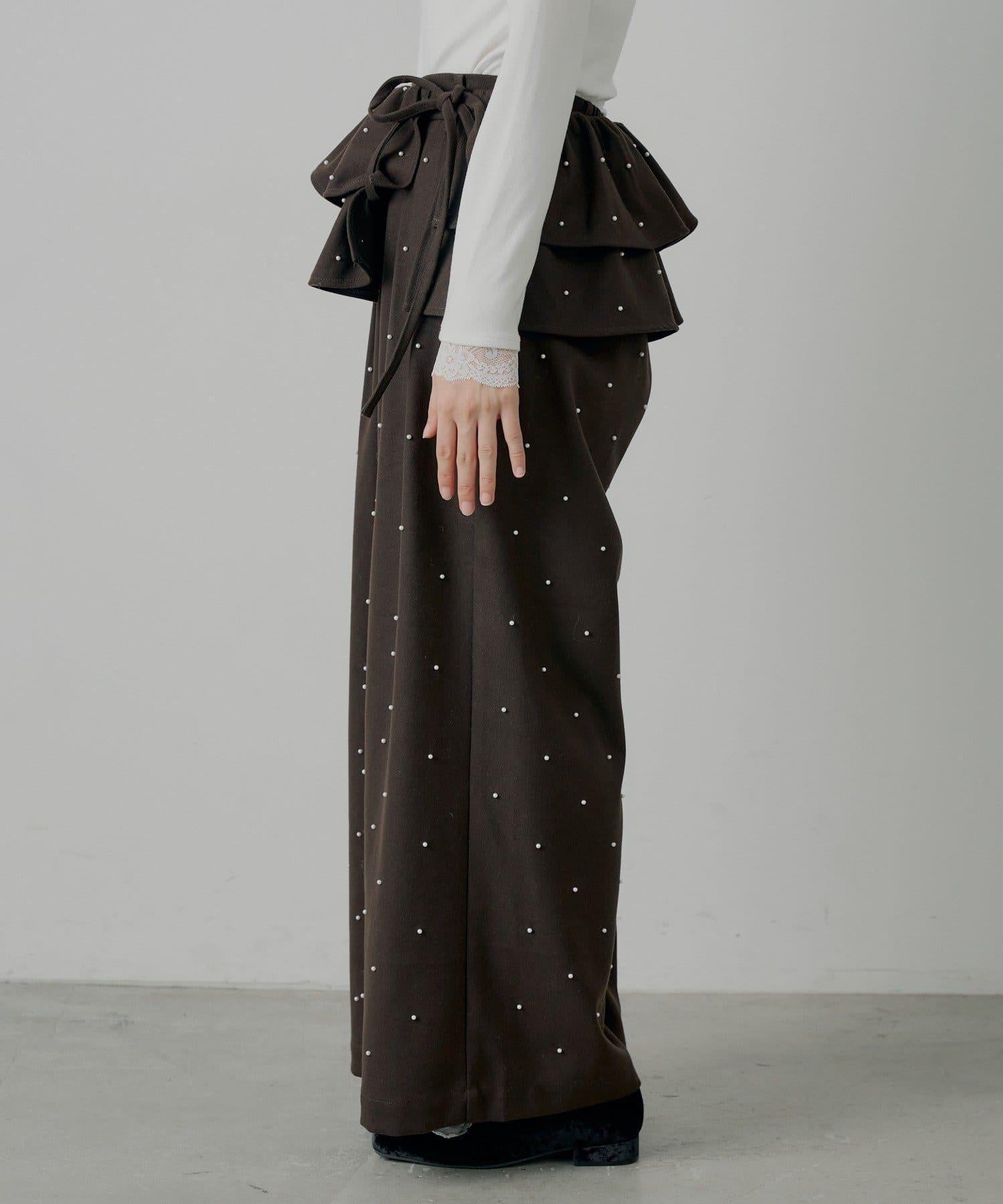 【SALON by Chico】可拆卸荷葉邊+珍珠裝飾寬鬆休閒褲
