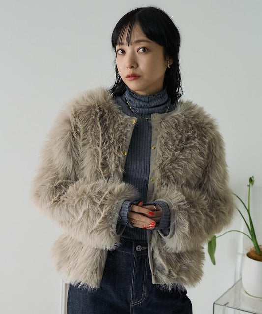 【SALON by Chico】可拆卸領短款動物紋大衣