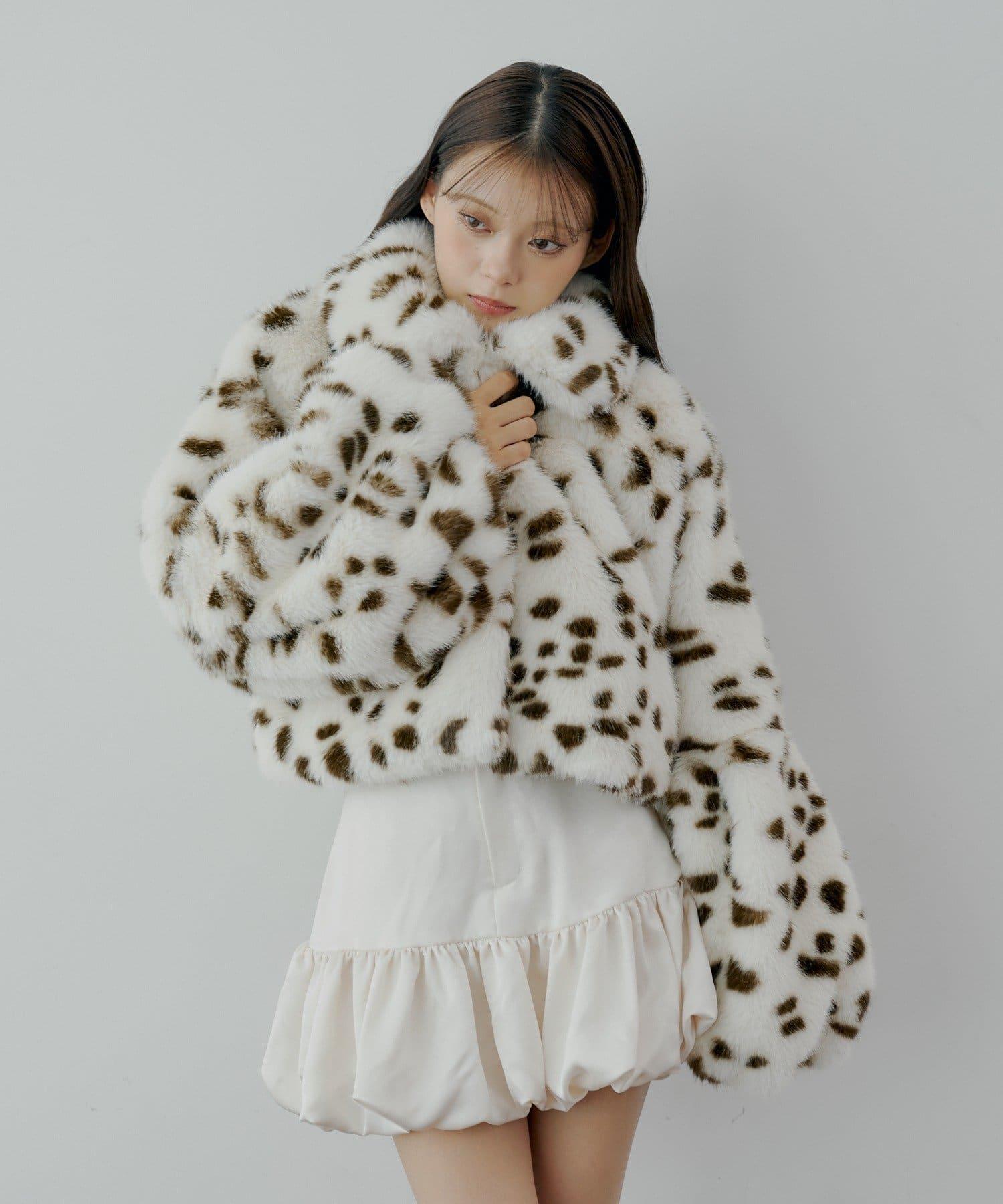 這款帶可拆卸衣領的短款動物大衣印有大膽的動物圖案,使其成為各種服飾的主角。