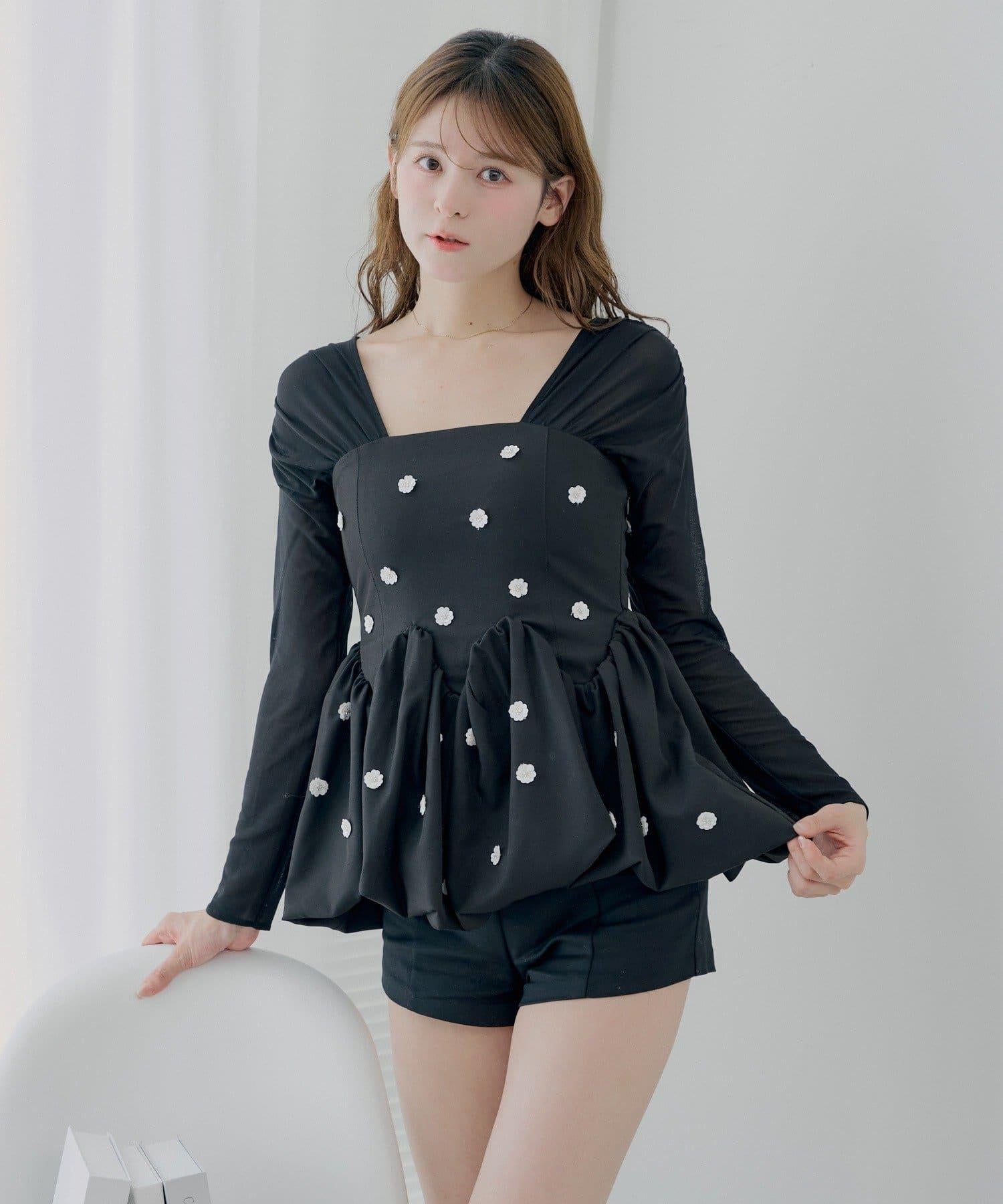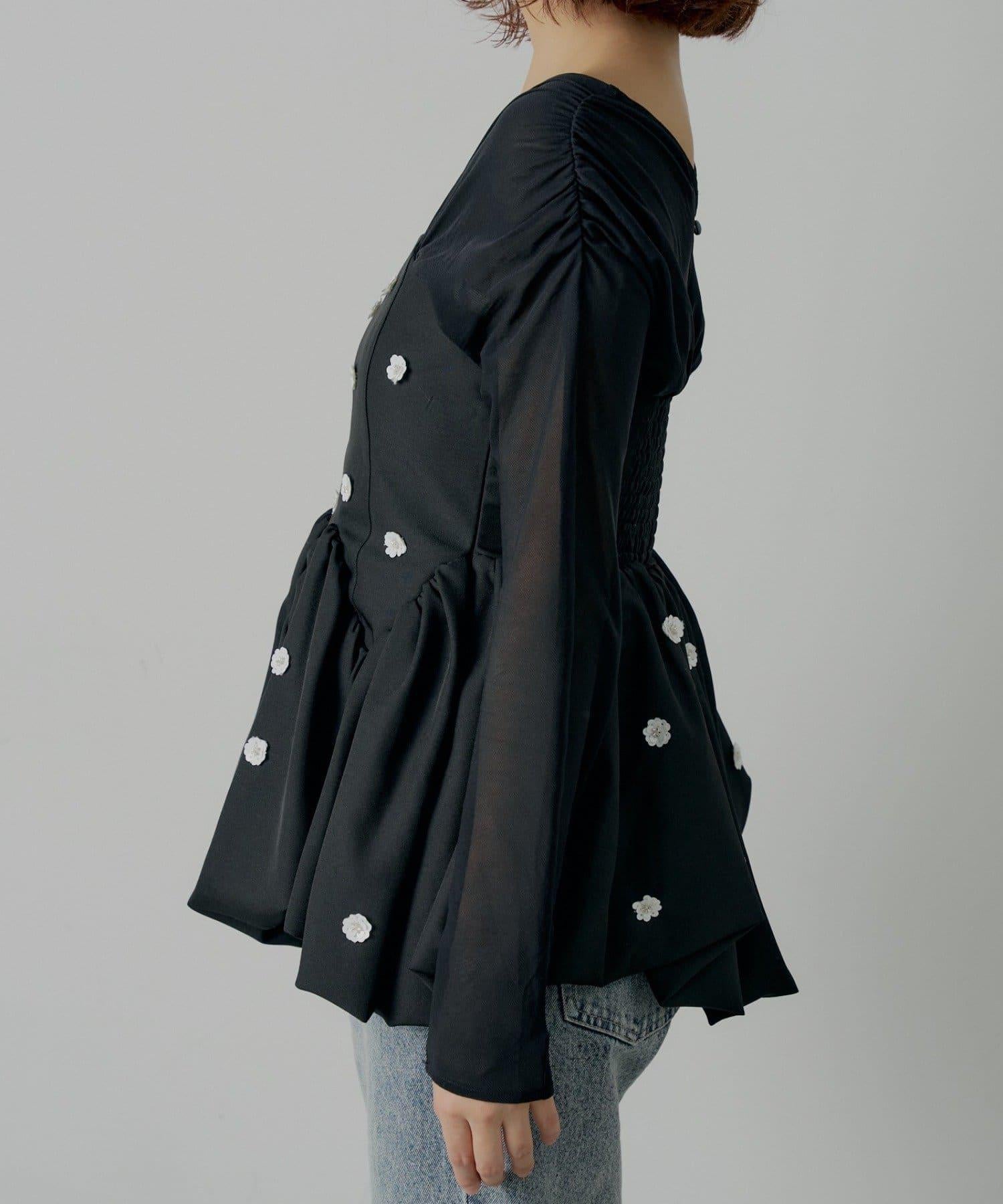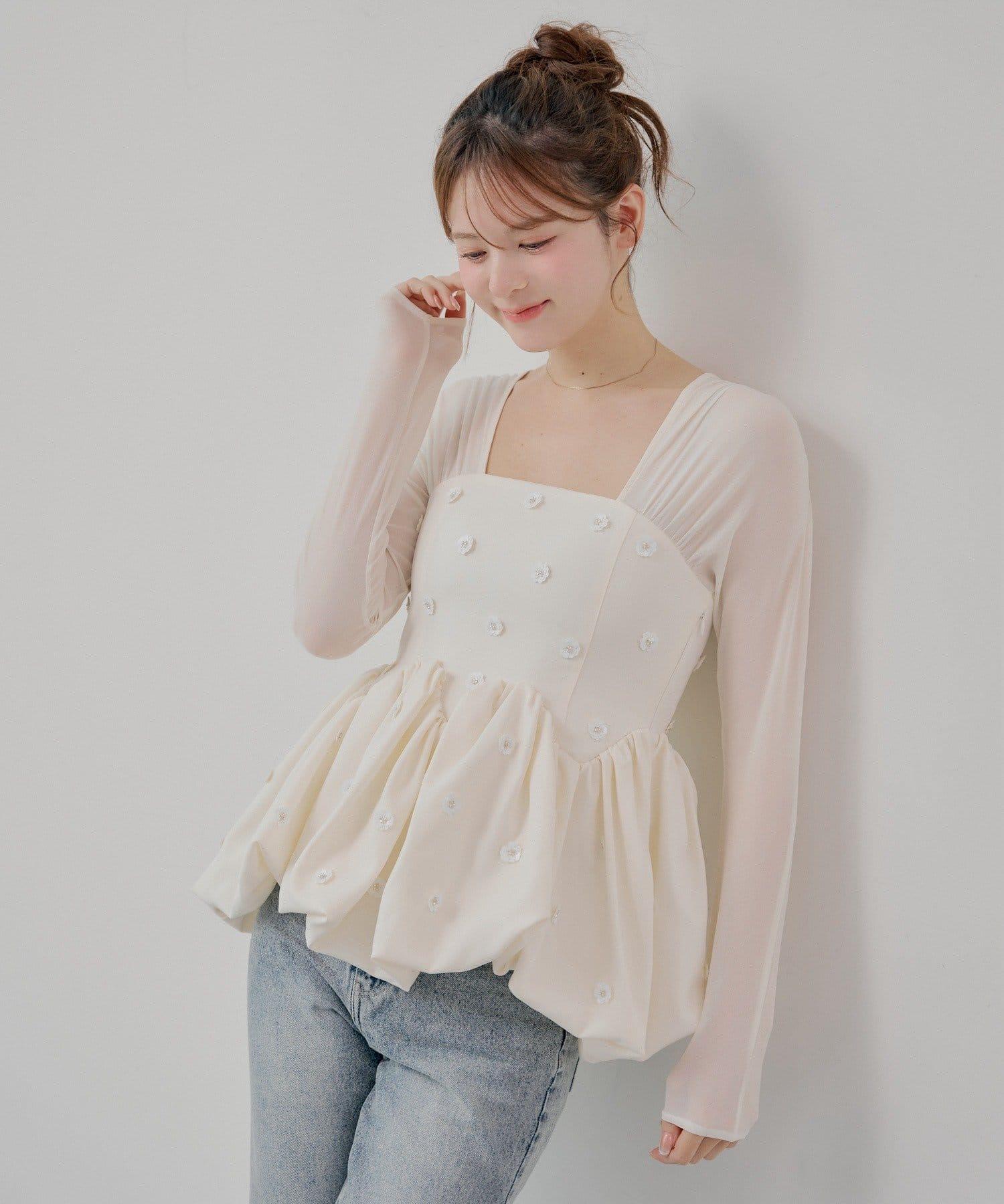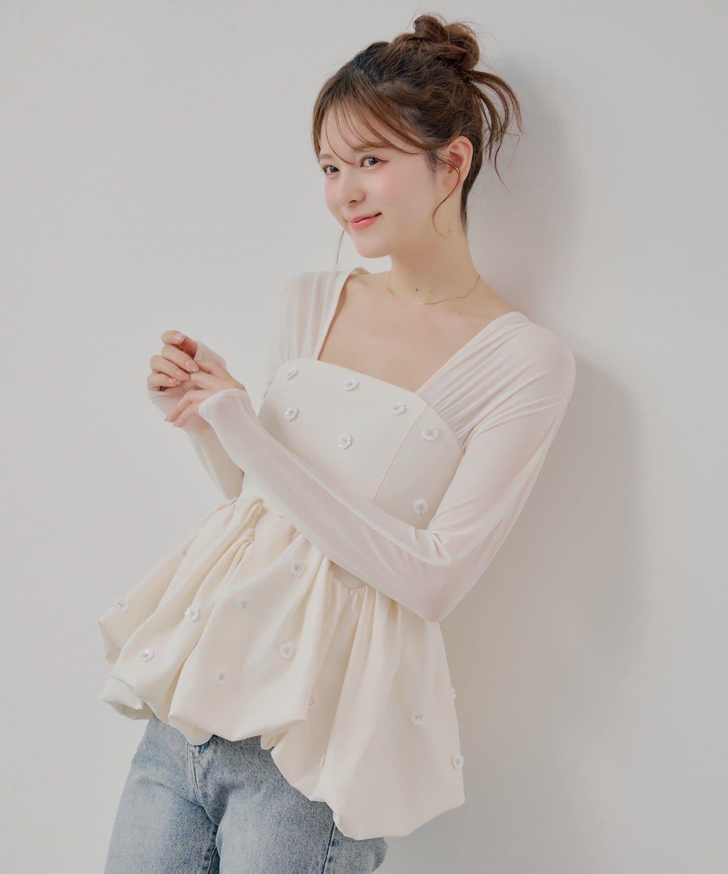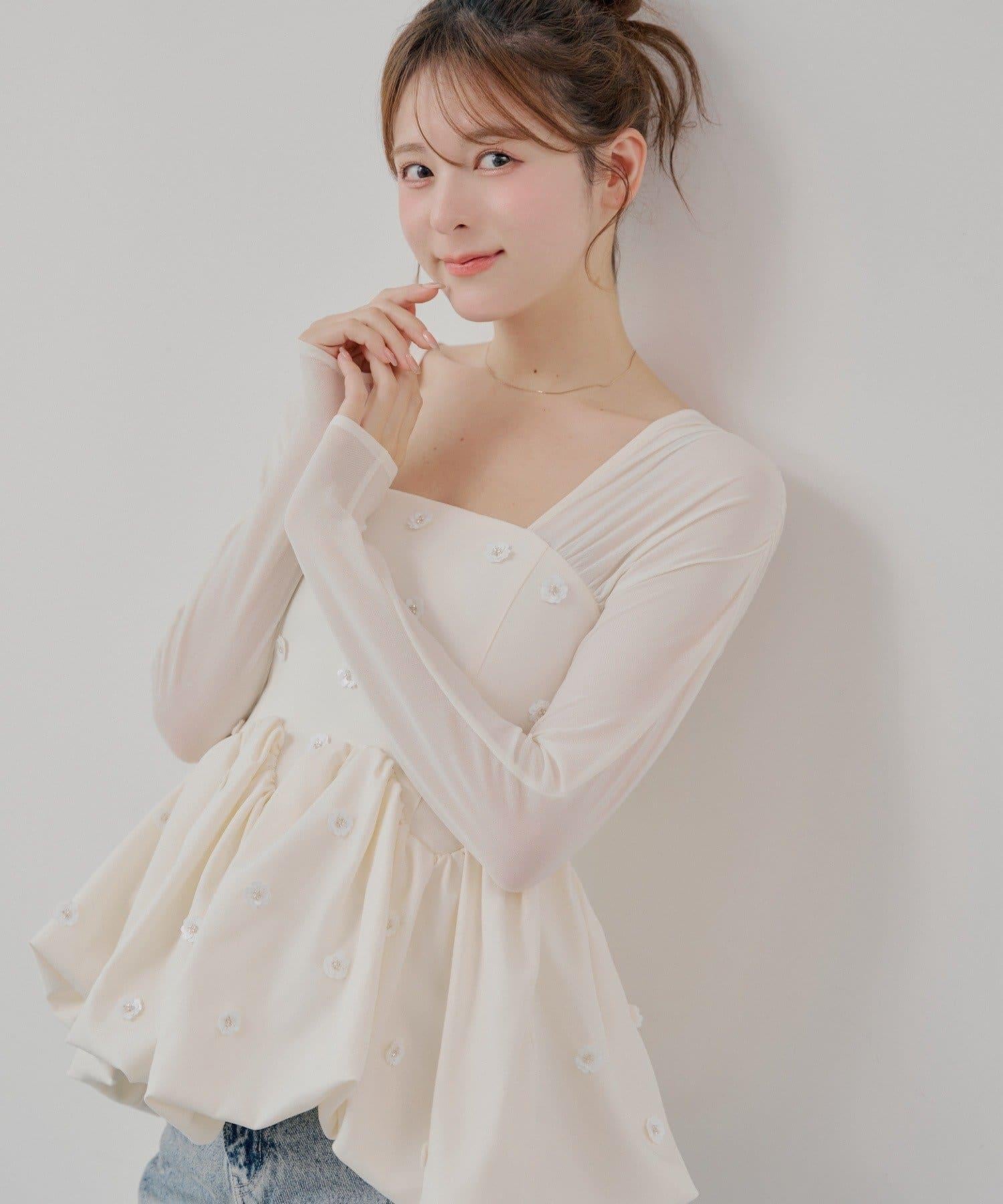 散落在上衣各處的花朵圖案使其看起來優雅而富有女人味。