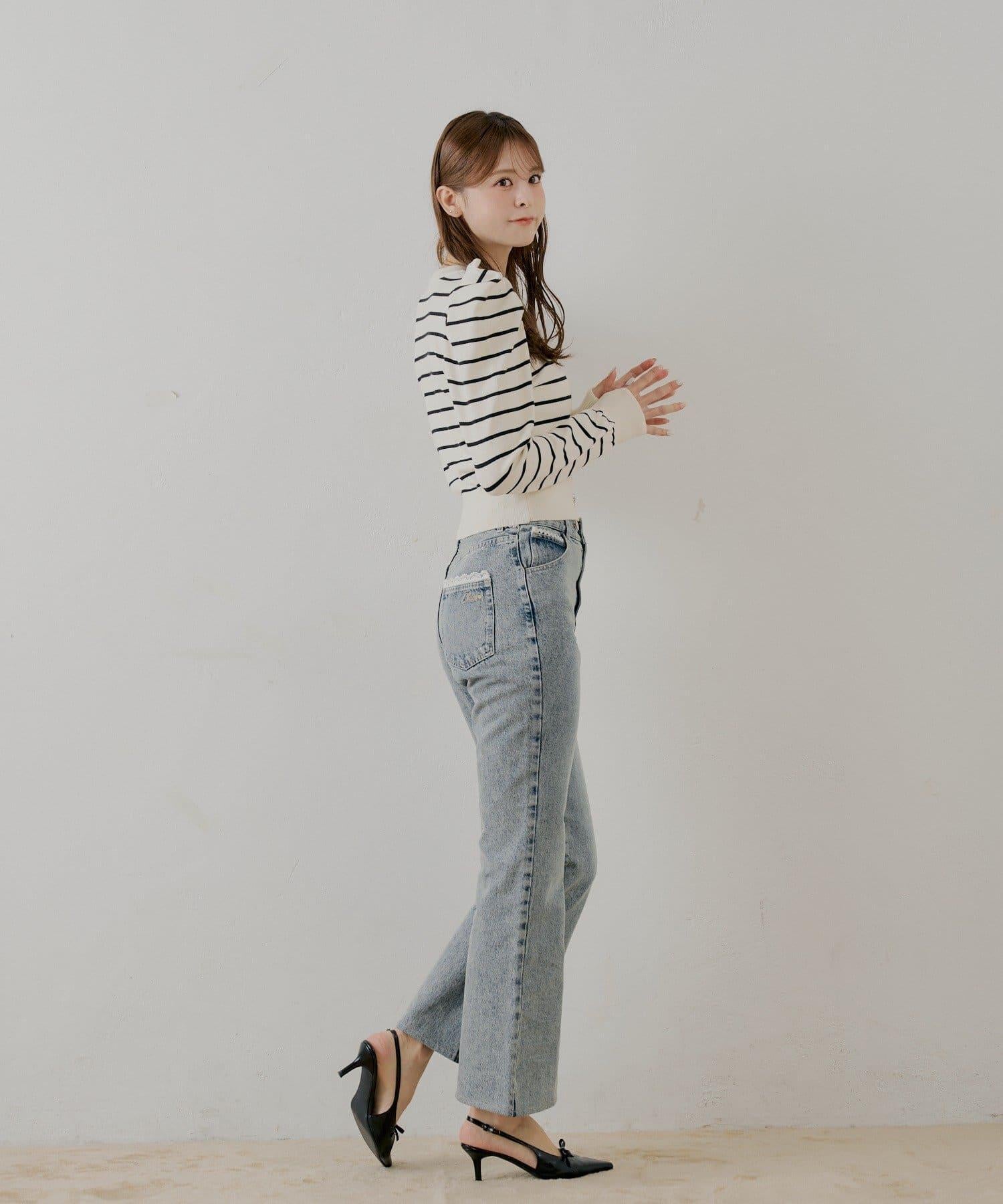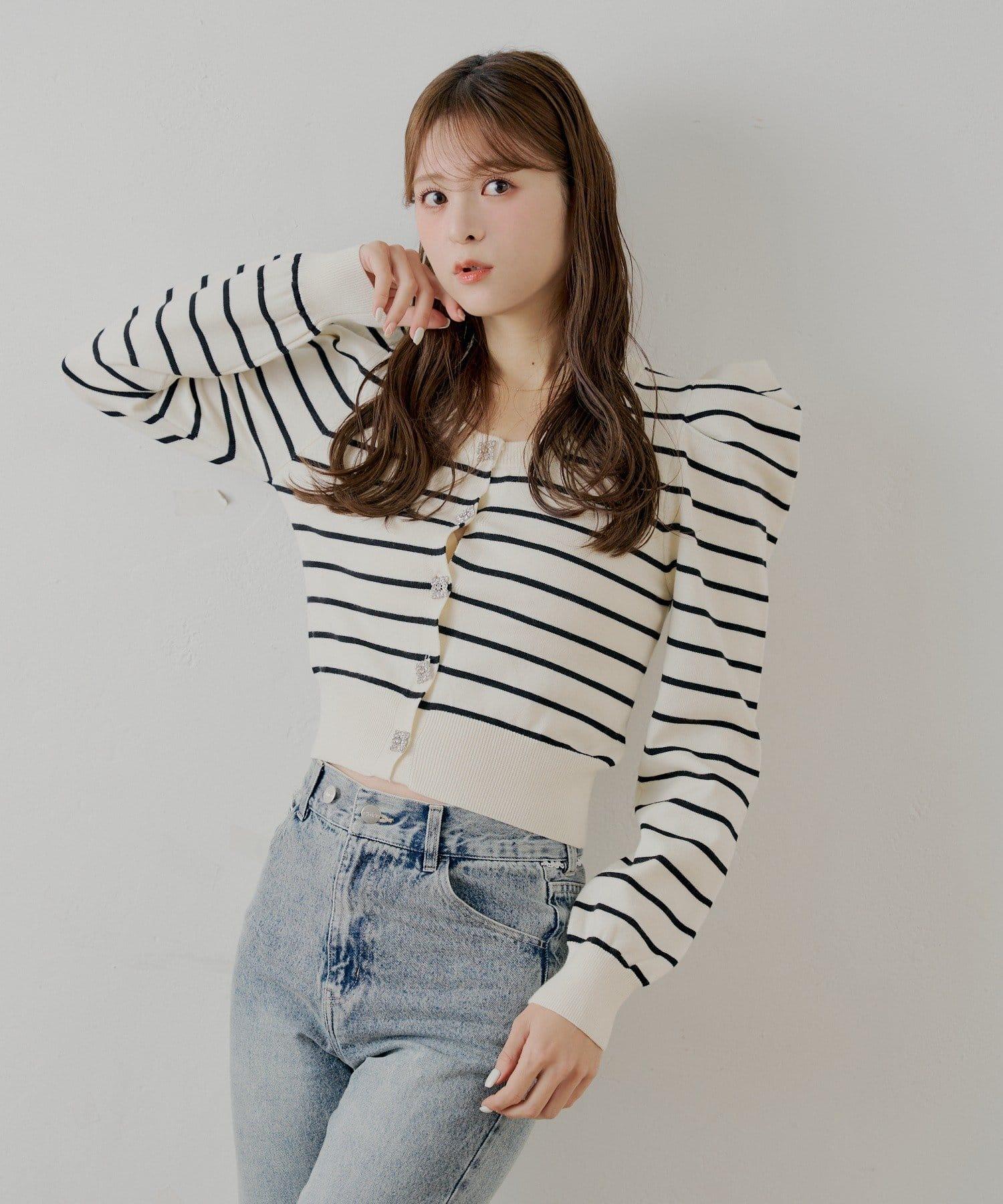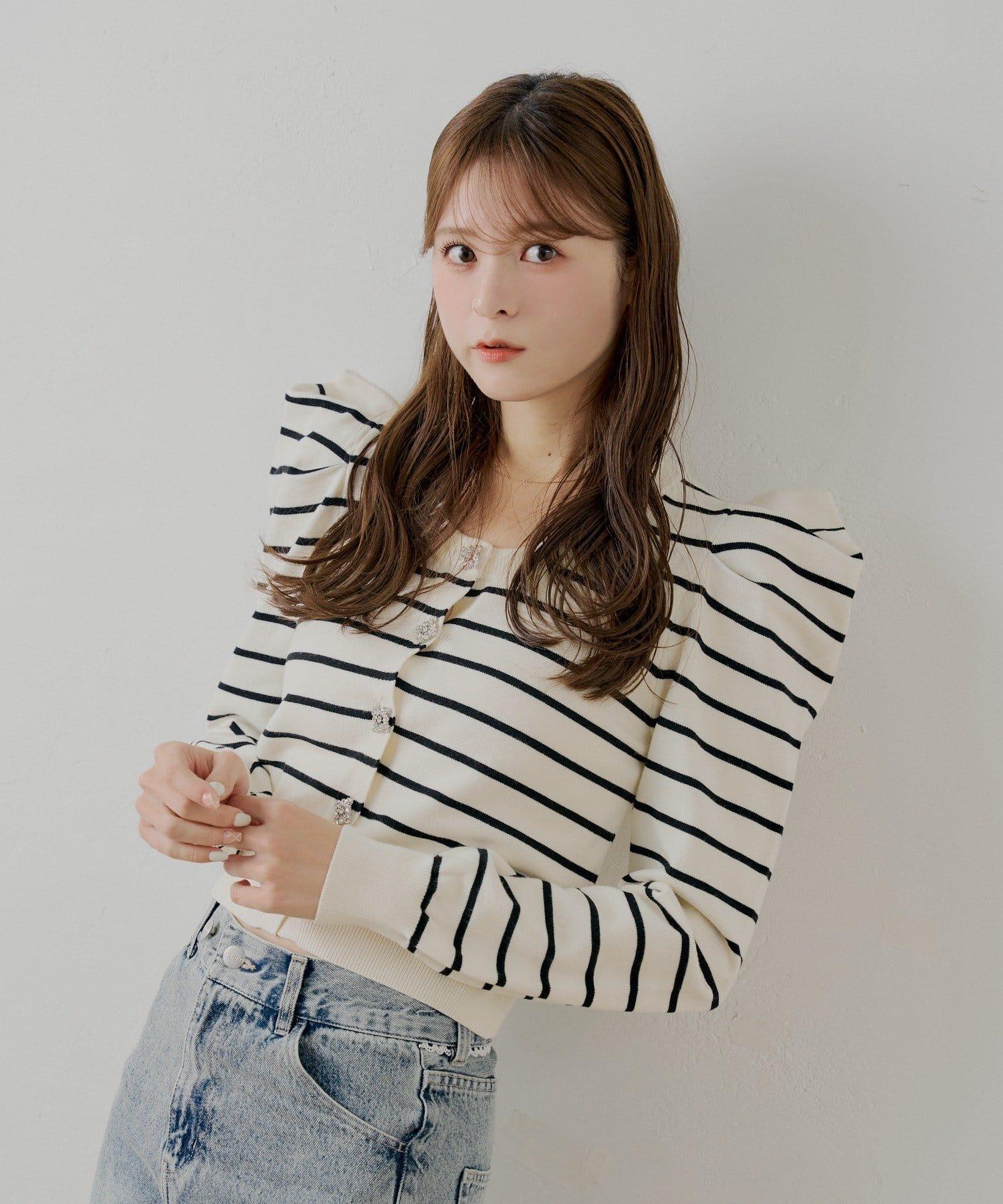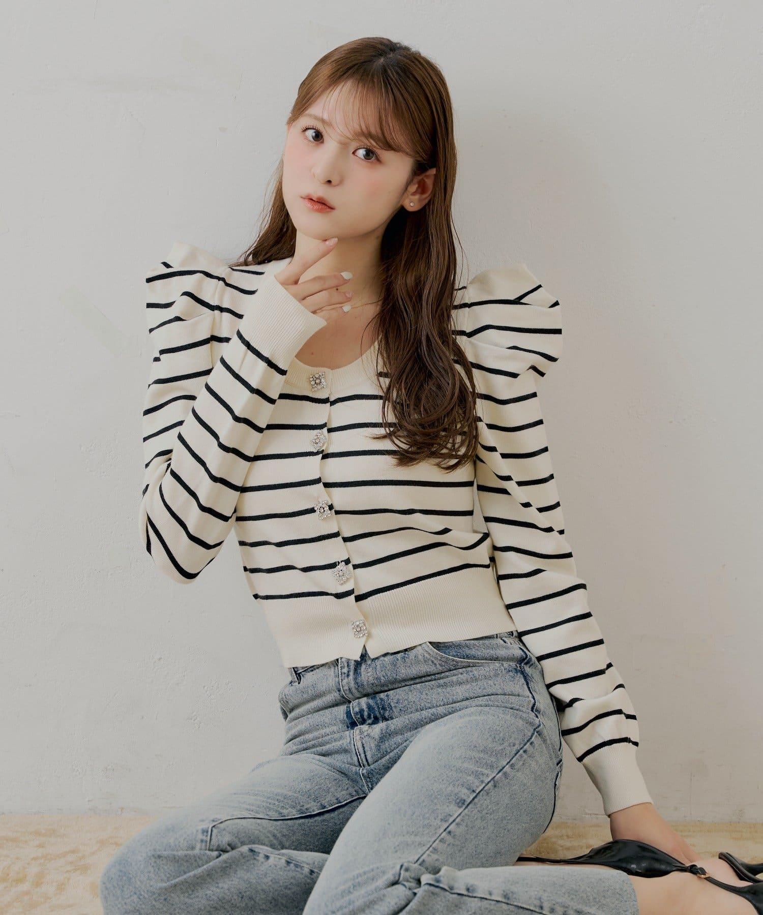 【SALON by Chico】珠飾紐扣泡泡袖設計開衫