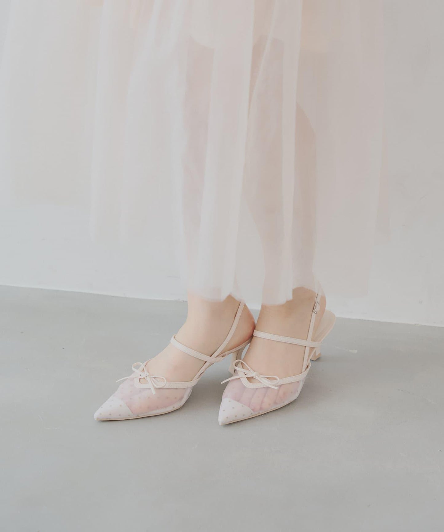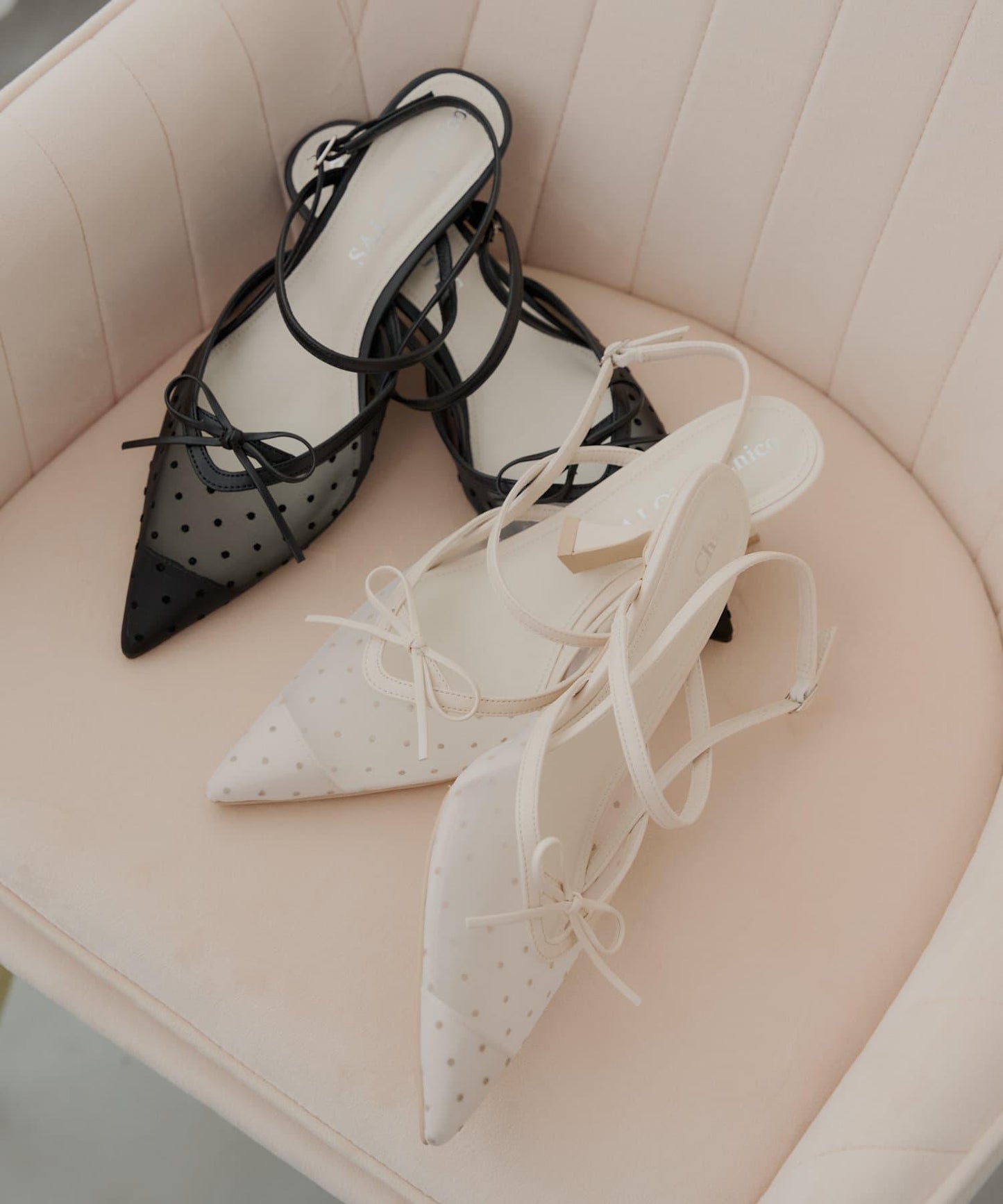 腳背上精緻的絲帶增添了女人味。