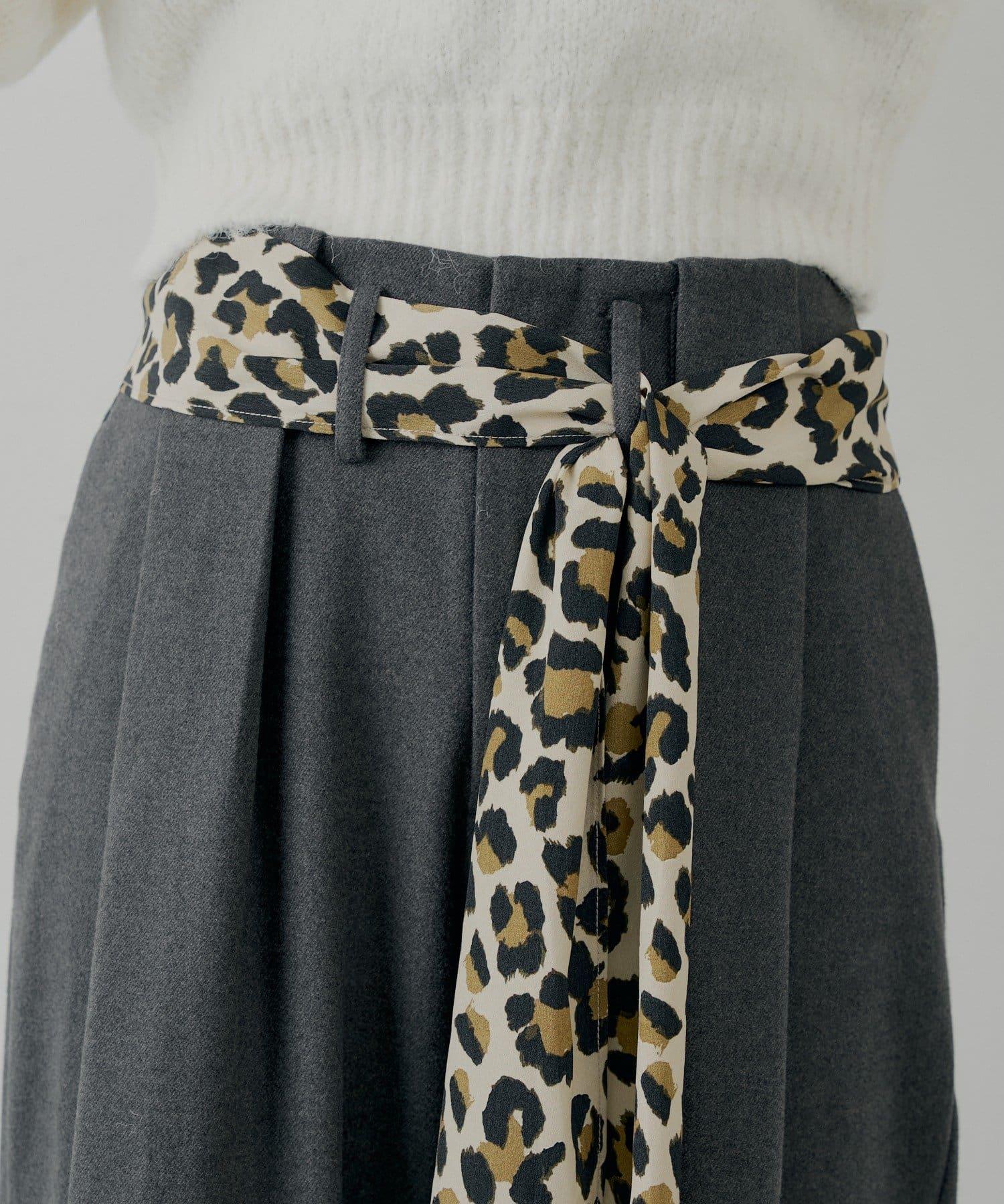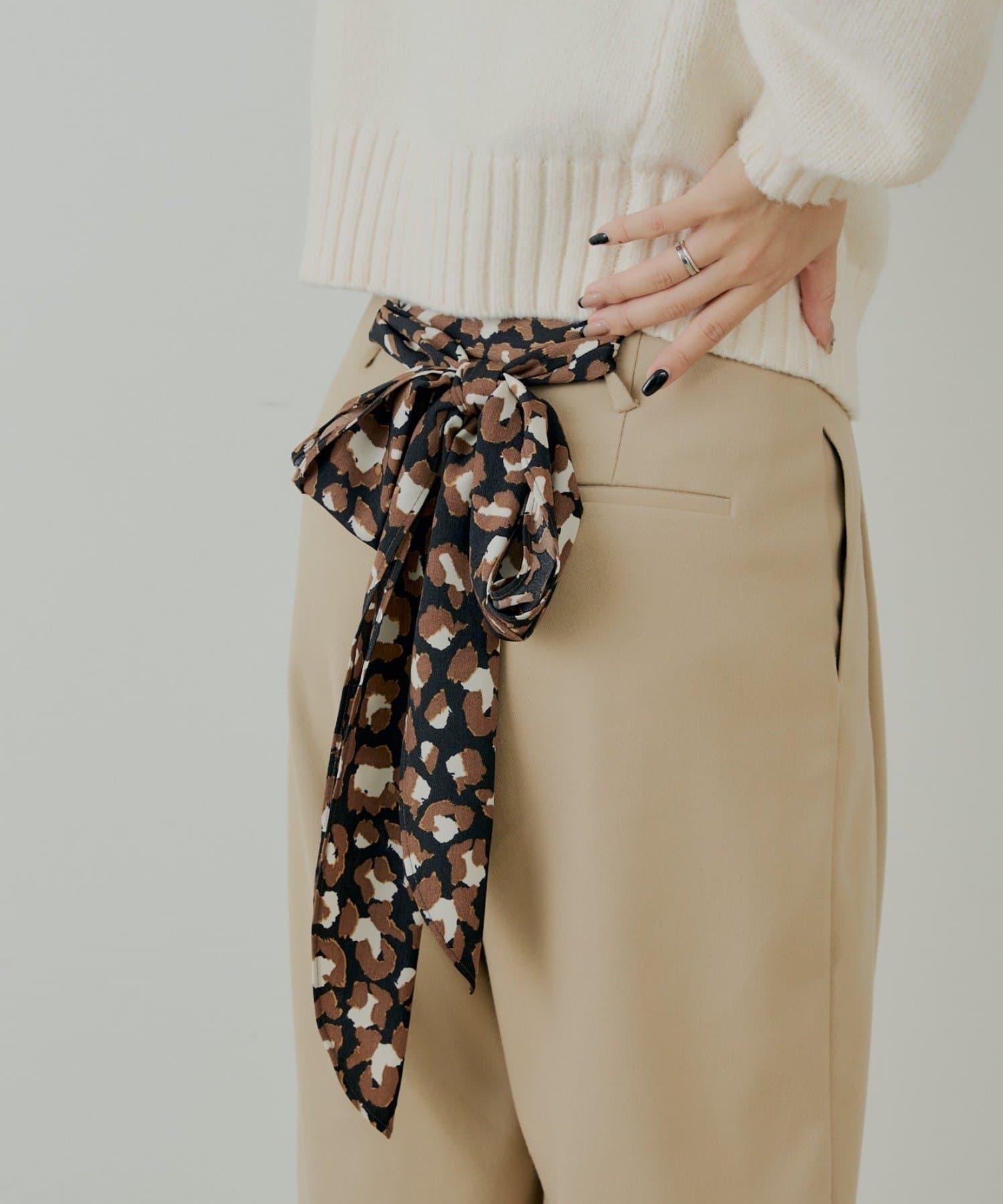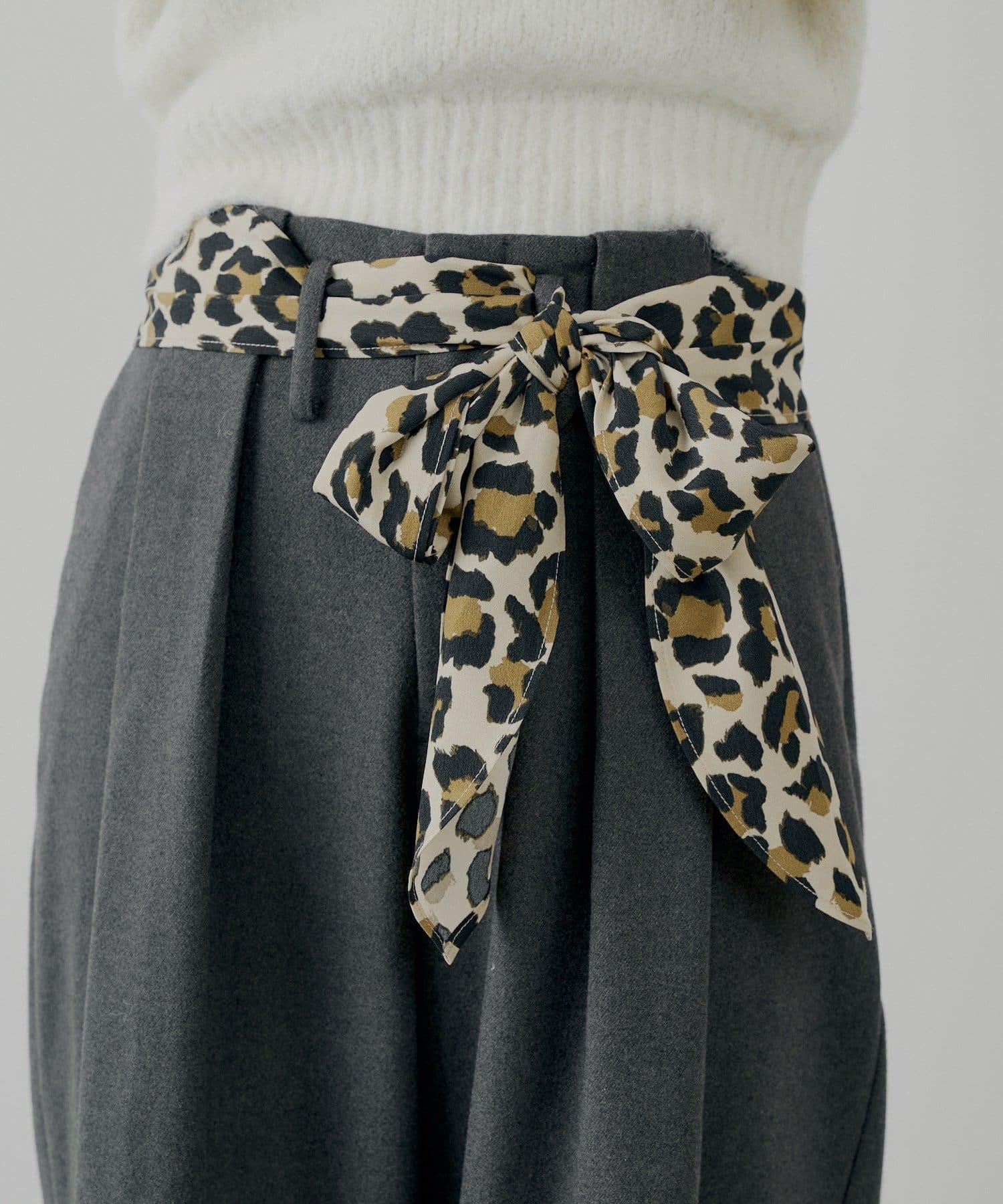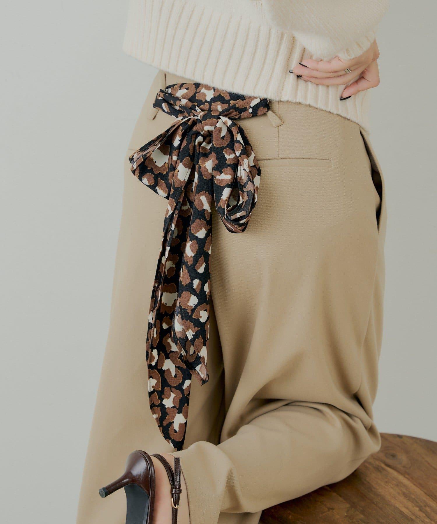 雙襉羊毛休閒褲,配圍巾腰帶。