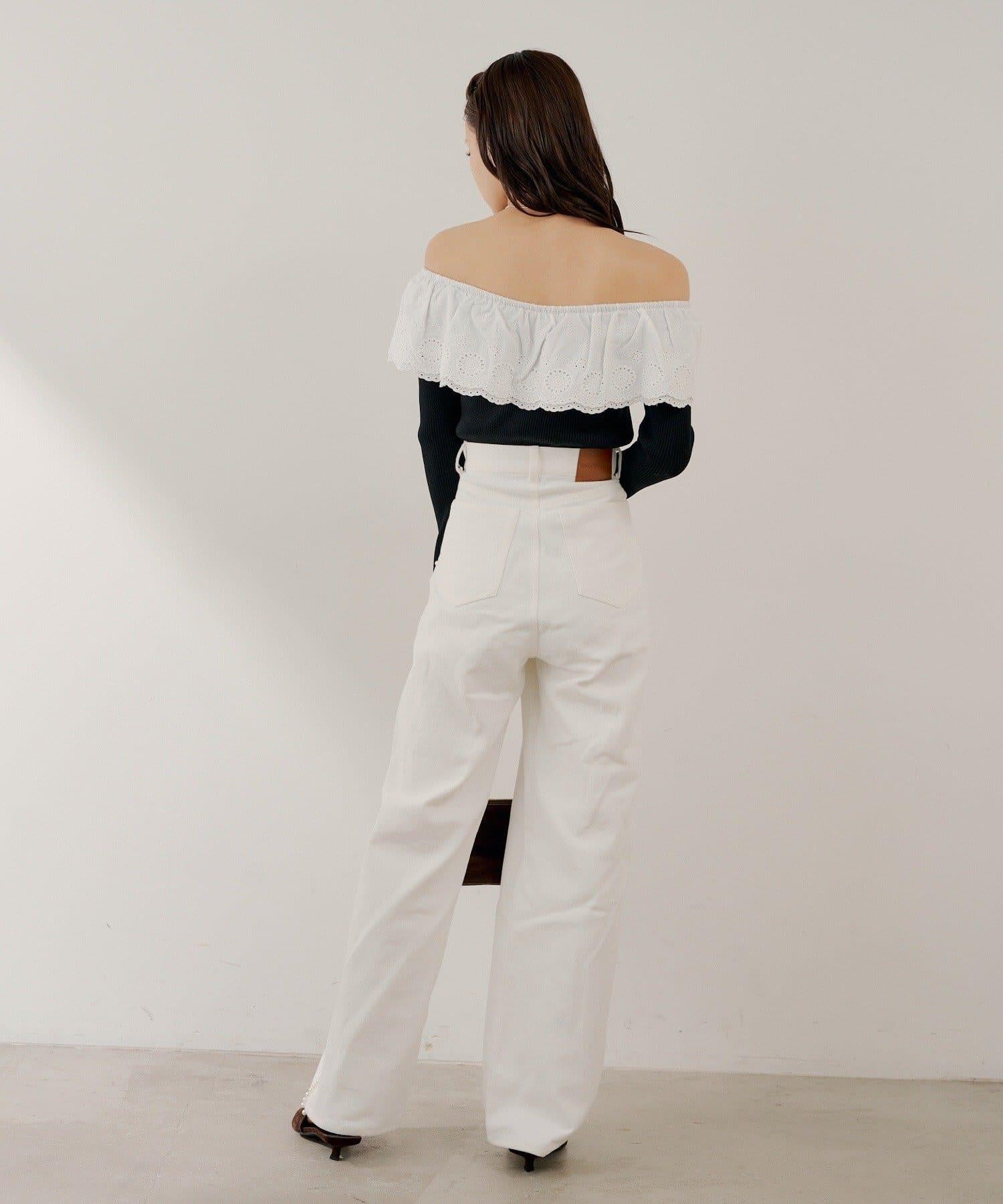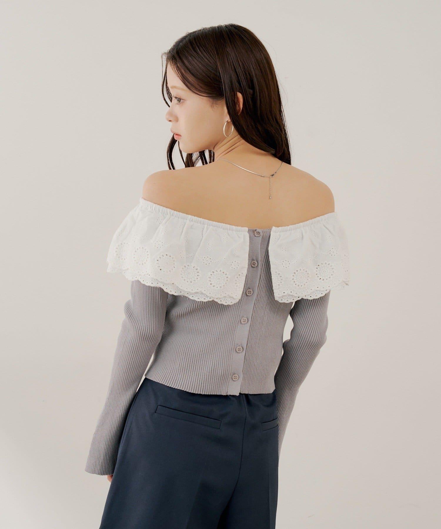 SALON by Chico 雙層蕾絲荷葉邊露肩 針織上衣