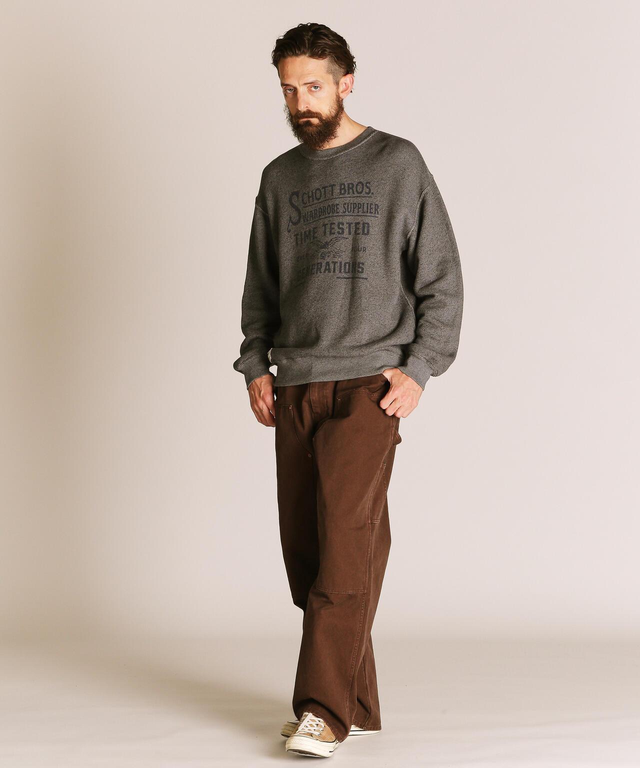 質地獨特的運動衫。針織衫的表面採用搓捻花紋編織,呈現出芝麻般深邃的外觀。此外,通過使用俗稱 "魔鬼背毛 "的超粗支紗,👍限度地保留了棉花的天然質感。甜美的粗針慢織絨毛襯裡柔軟蓬鬆,貼身舒適。越穿越貼身,穿著舒適。此外,採用復古印花,經過反覆洗滌後,印花會褪色,與身體相匹配。隨著時間的推移,紋理會逐漸增加,並變化出獨特的外觀。融合了精心挑選的材料和可以長期穿著的設計,這是一件讓人願意長期穿著的衣服。雖然簡單