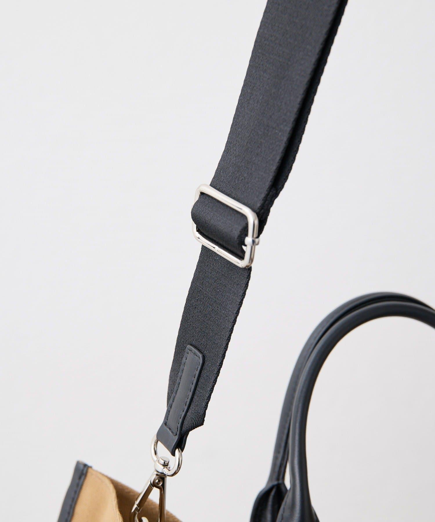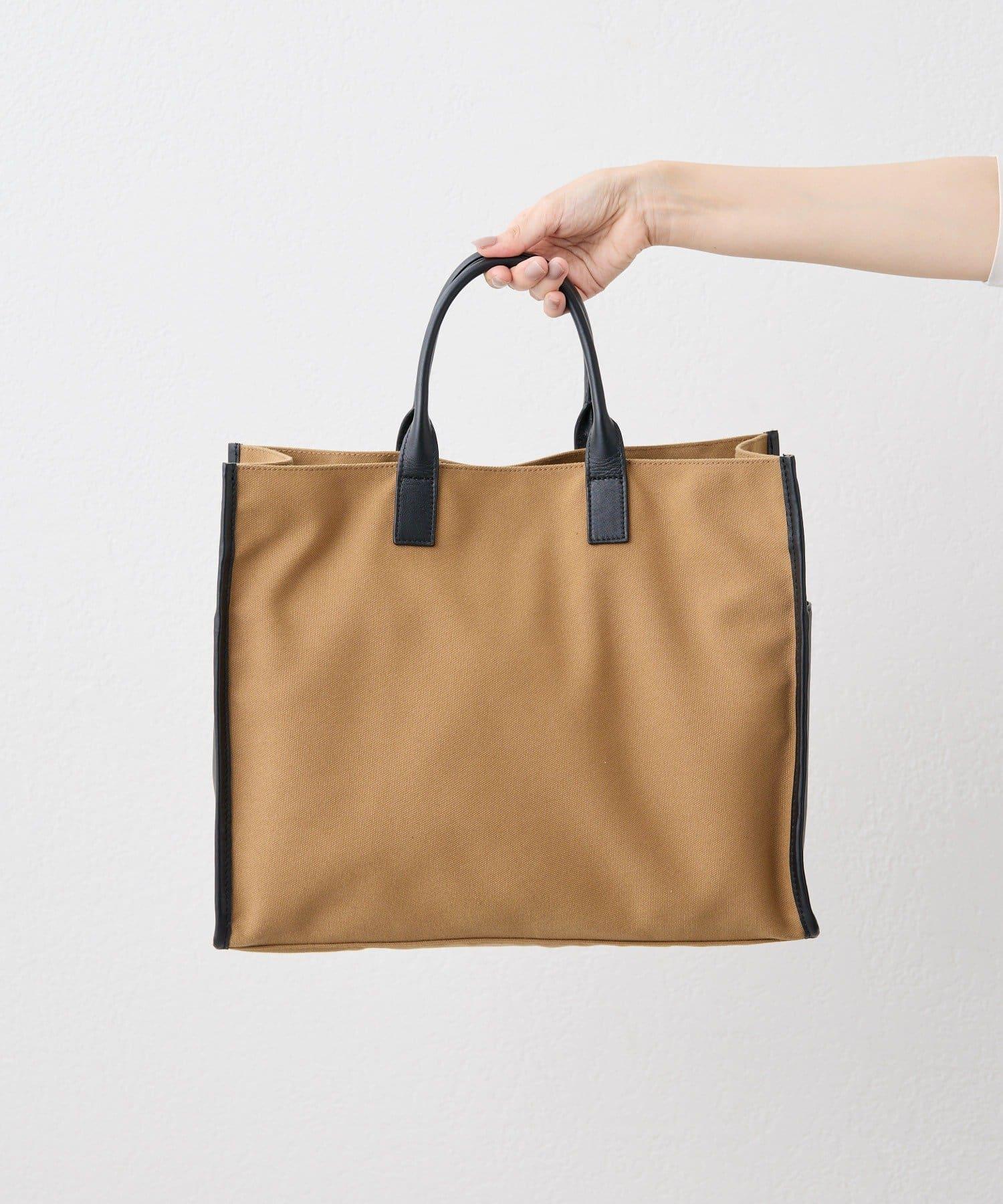 這款手提包可容納 A4 大小,採用聚酯纖維和皮革的組合製作而成,優雅大方。