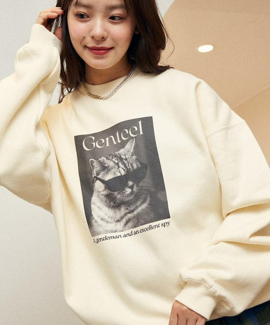 帶有可愛刺繡和植絨圖案的超大號運動衫。