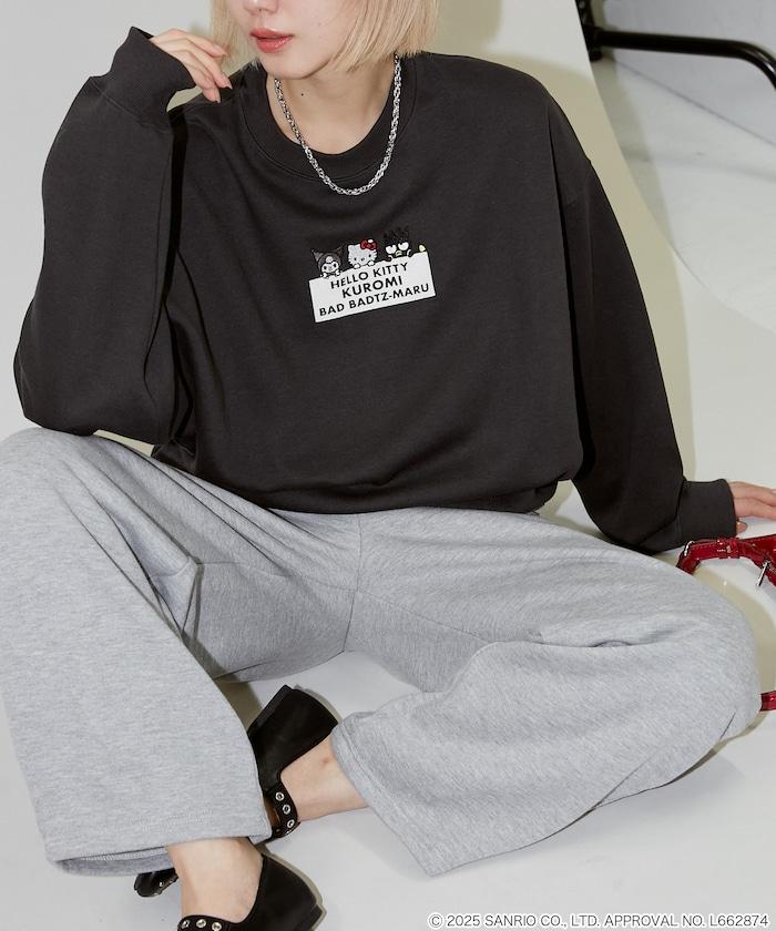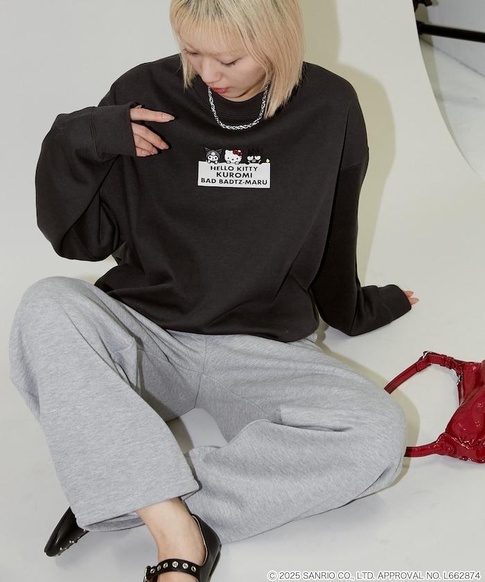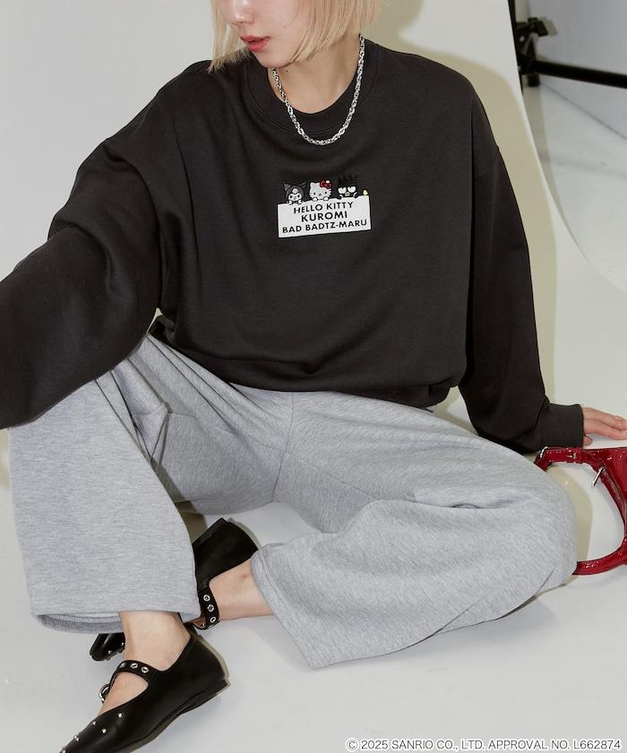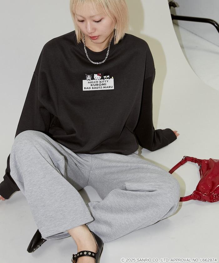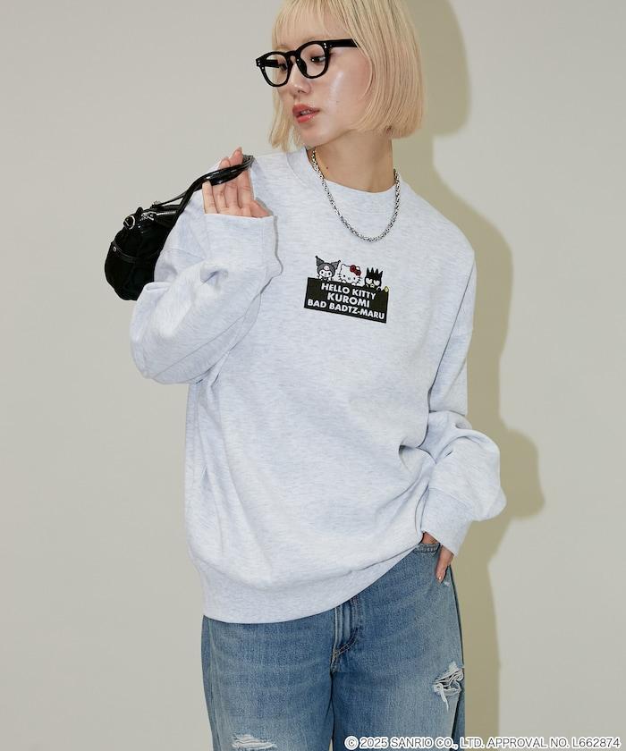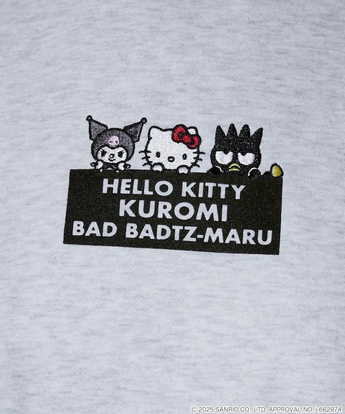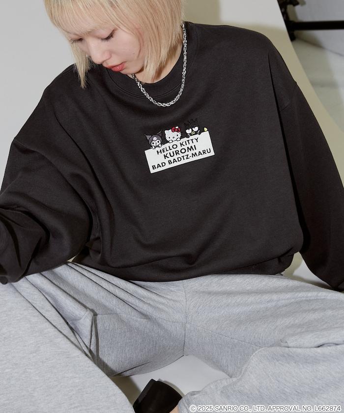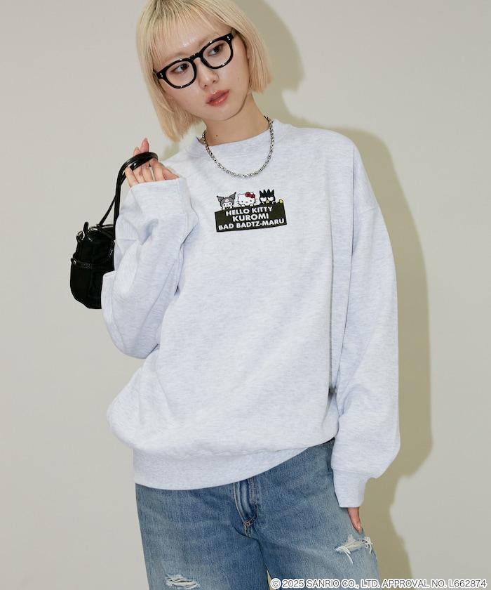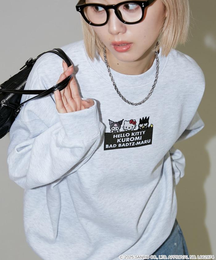 圓領運動衫上繡有卡通人物 "Kuromi"、"Hello Kitty "和 "Bad Badtimaru"。