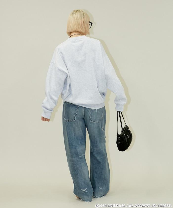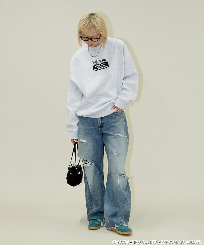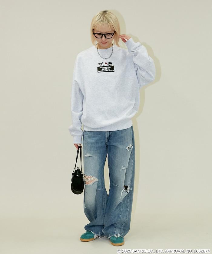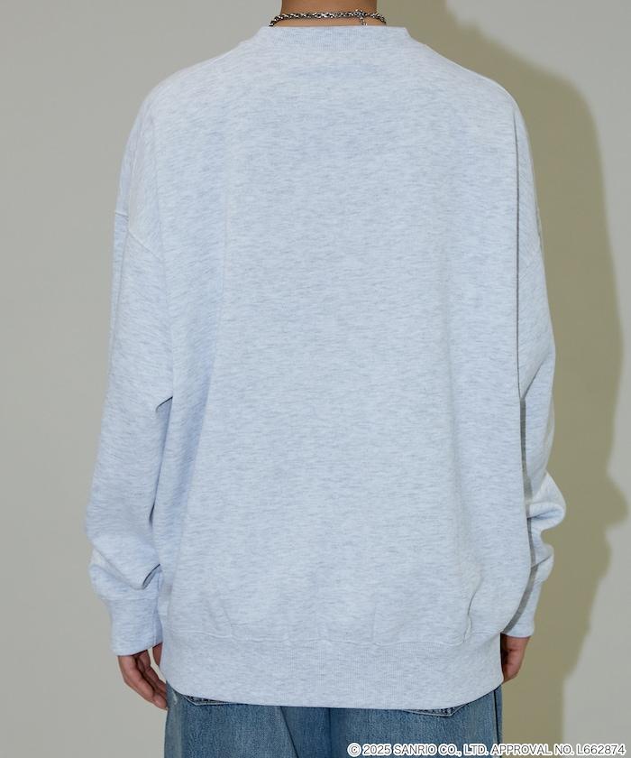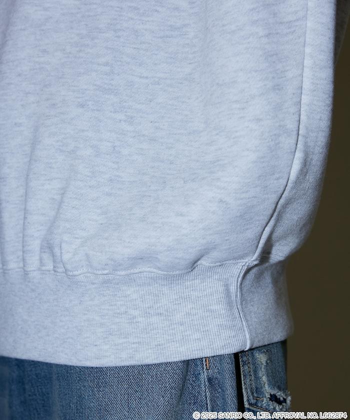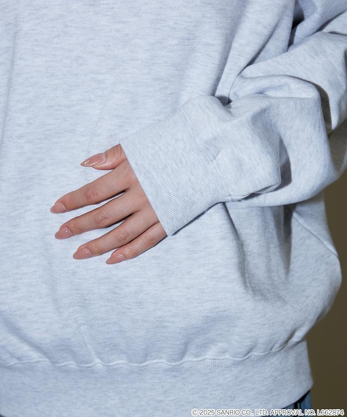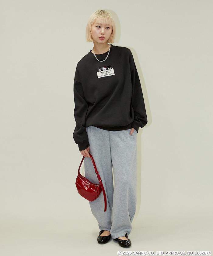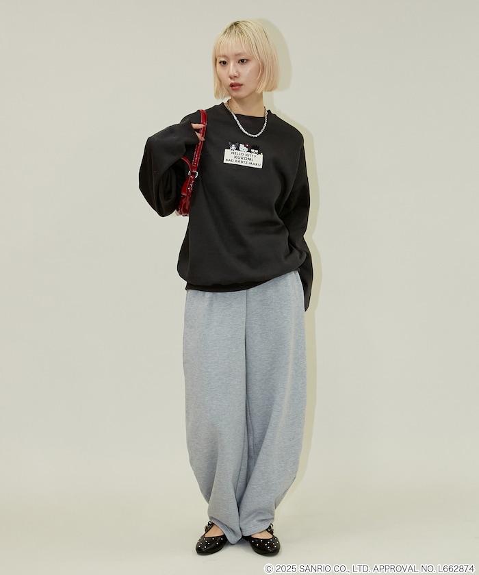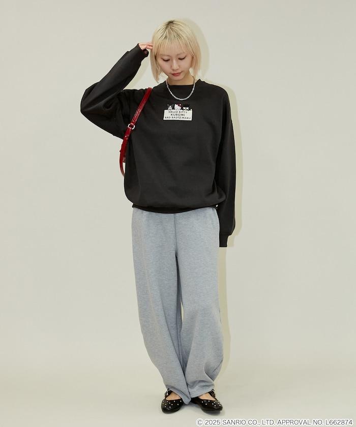 圓領運動衫上繡有卡通人物 "Kuromi"、"Hello Kitty "和 "Bad Badtimaru"。