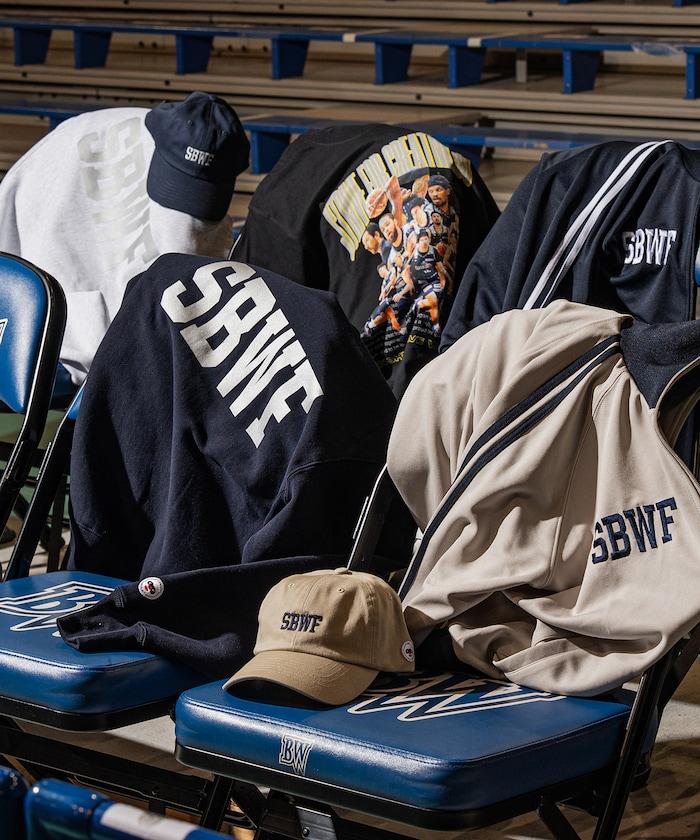SBWF 系列以軍隊和大學為背景,是美式休閒的中流砥柱,代表著 "SHINSHU BRAVE WARRIORS FREAK'S"。這不僅是兩個名字的交叉,也代表了熱情的粉絲(FREAK'S)。設計以 SBWF 字母為主要標誌,吉祥物布萊爾的臉部刺繡作為點綴,巧妙地貼在下襬和胸前。