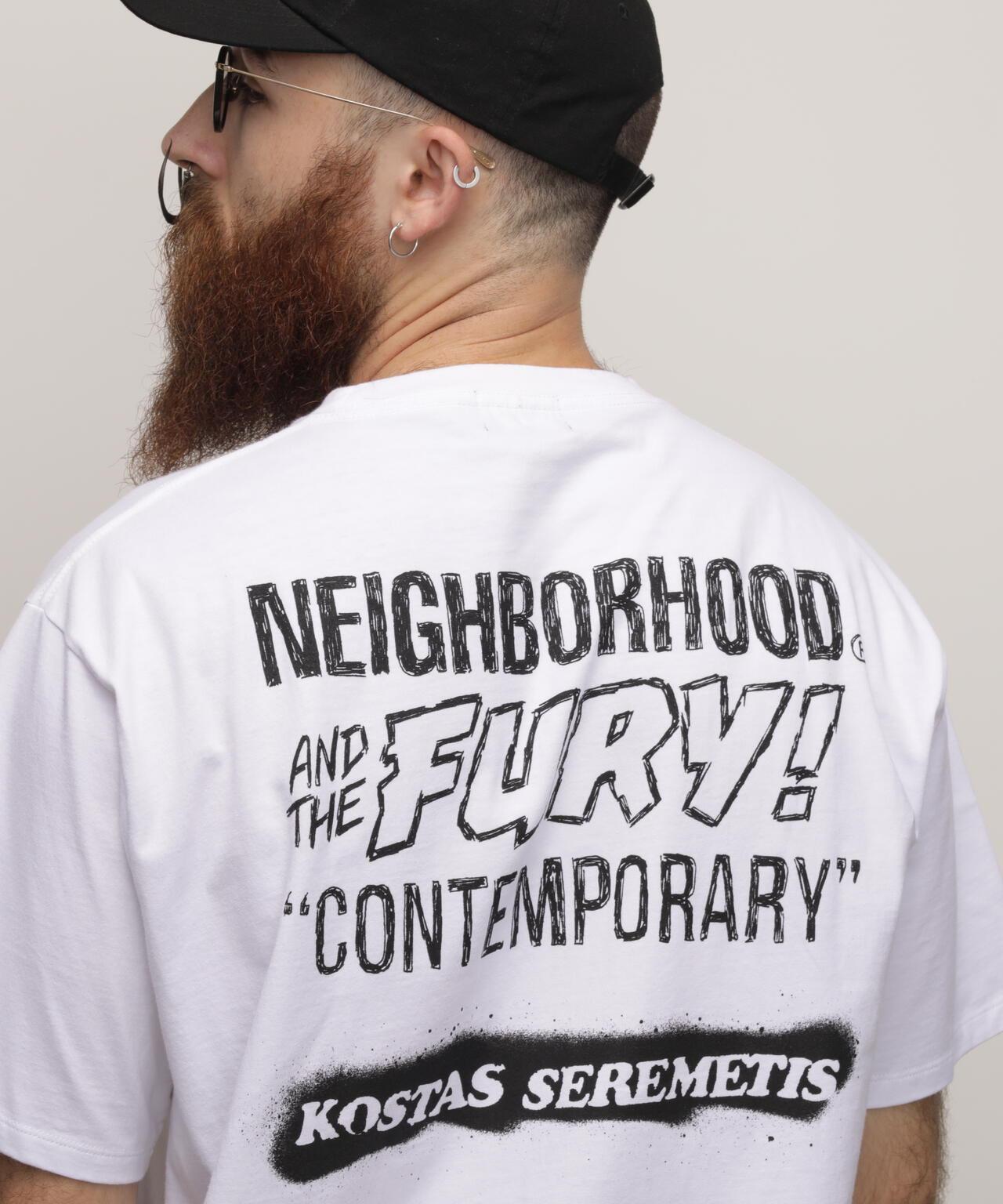 短袖 T 恤,圖案出自美國紐約藝術家 Kostas Seremetis 之手。棉質針織衫身。與 NEIGHBORHOOD 和 Kostas Seremetis 的三重合作款。