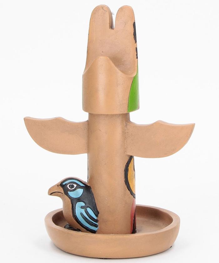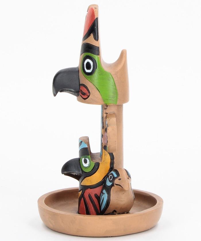 獨特的圖騰柱形眼鏡架。 它是一件神秘的物品,看起來有些不協調,但又與掛在上面的眼鏡和太陽鏡的外觀融為一體。