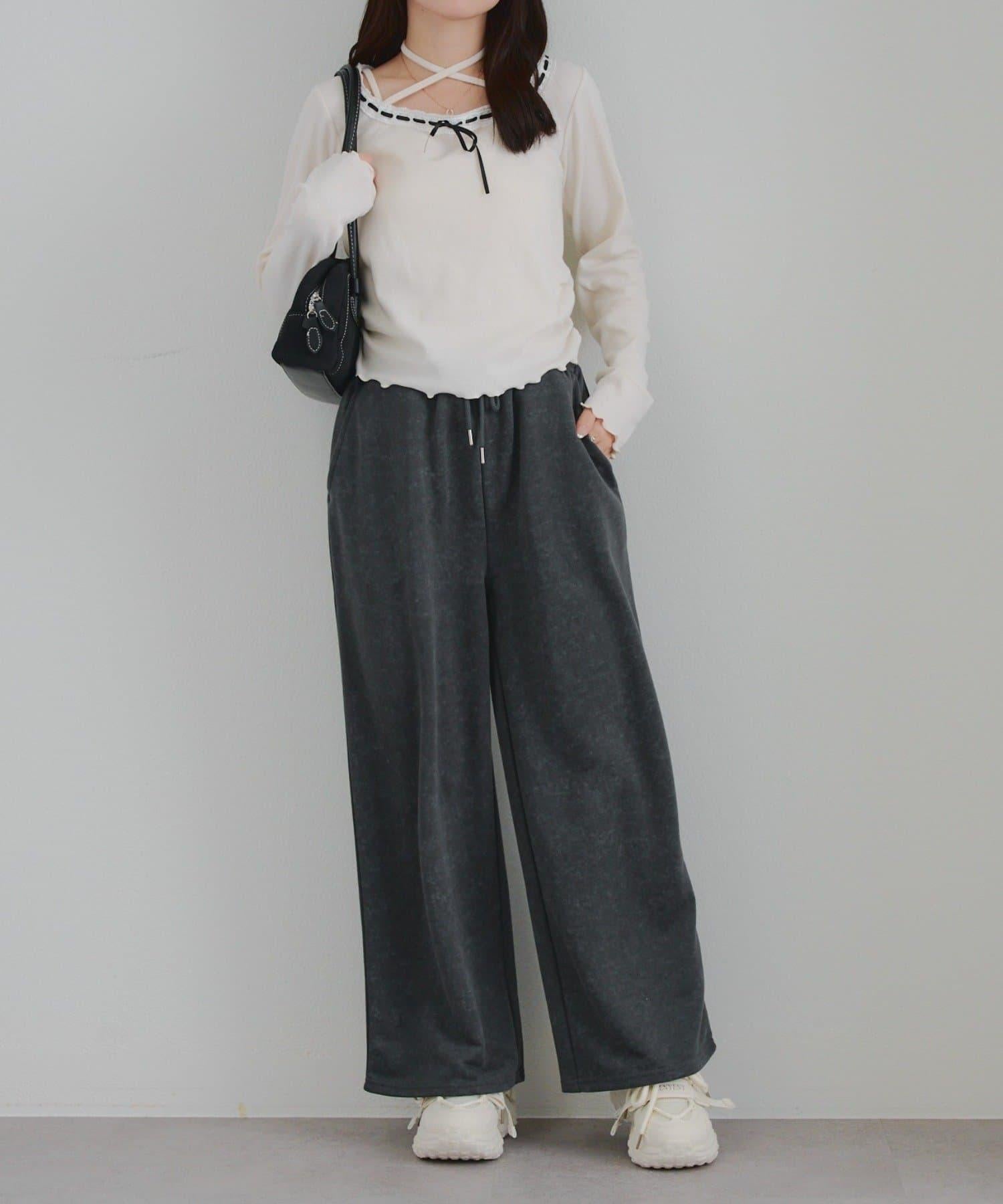【SETUP】背部標誌水鑽裝飾休閒褲
