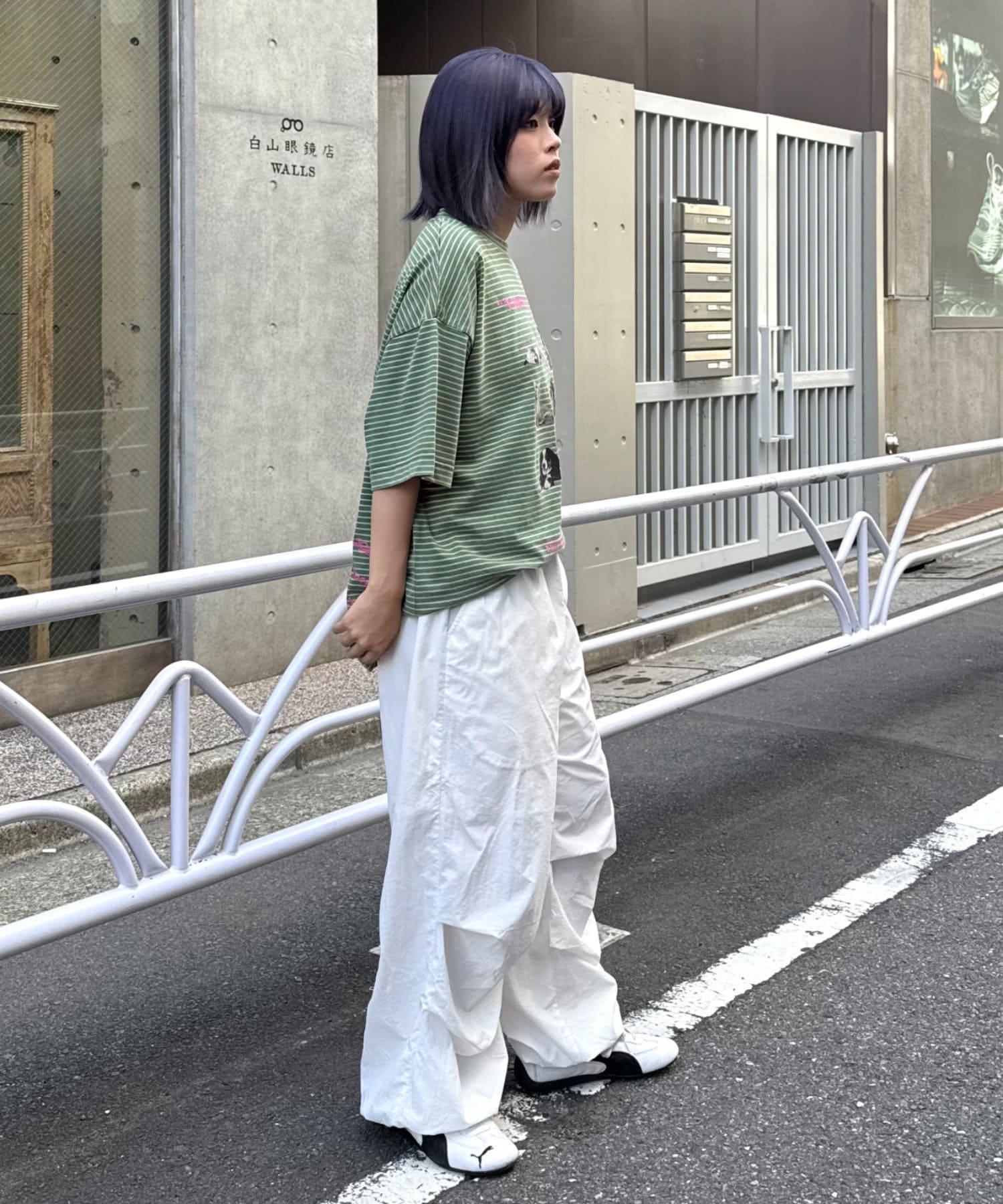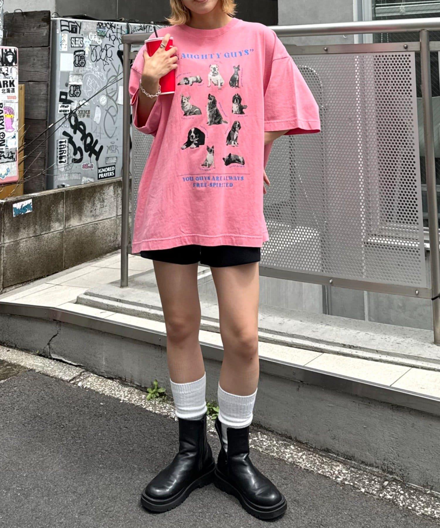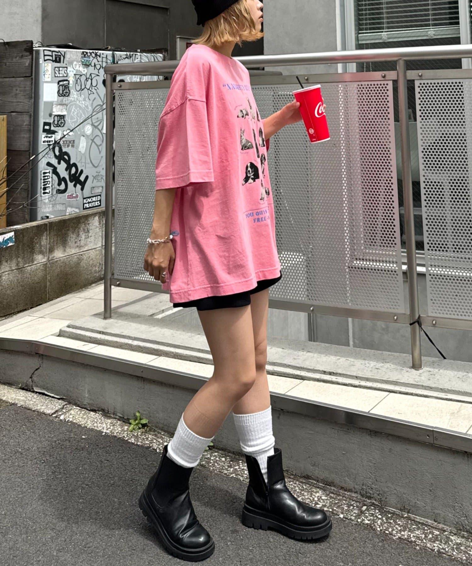 超大的尺寸讓它更像男裝,但與裙子的少女搭配也很可愛。