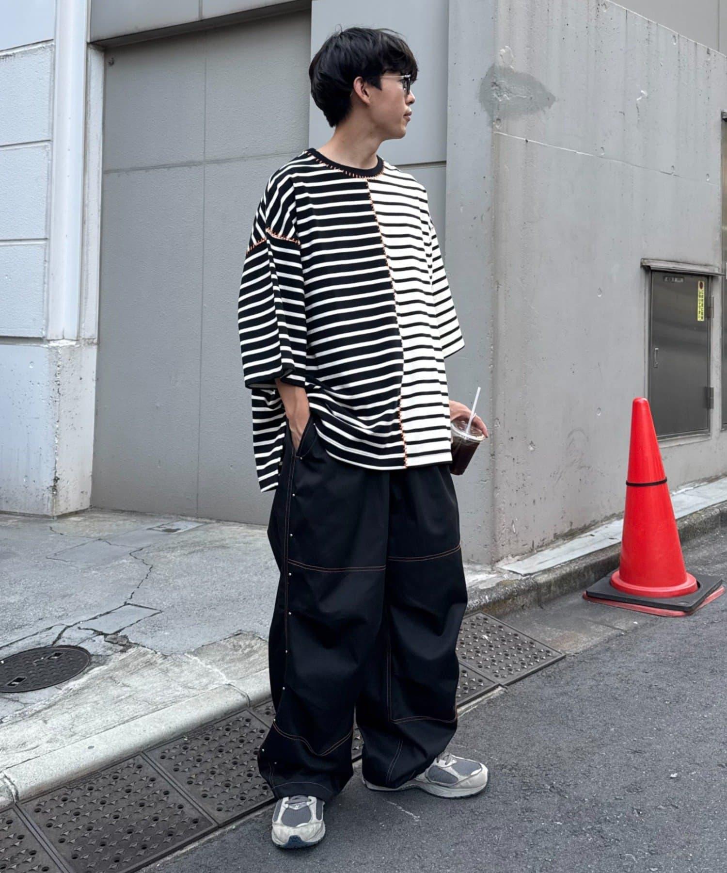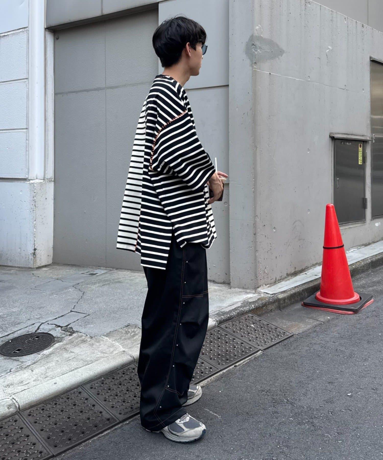 此外,長褲上的鉚釘也是一種巧妙的裝飾,增添了普通長褲所沒有的趣味性。