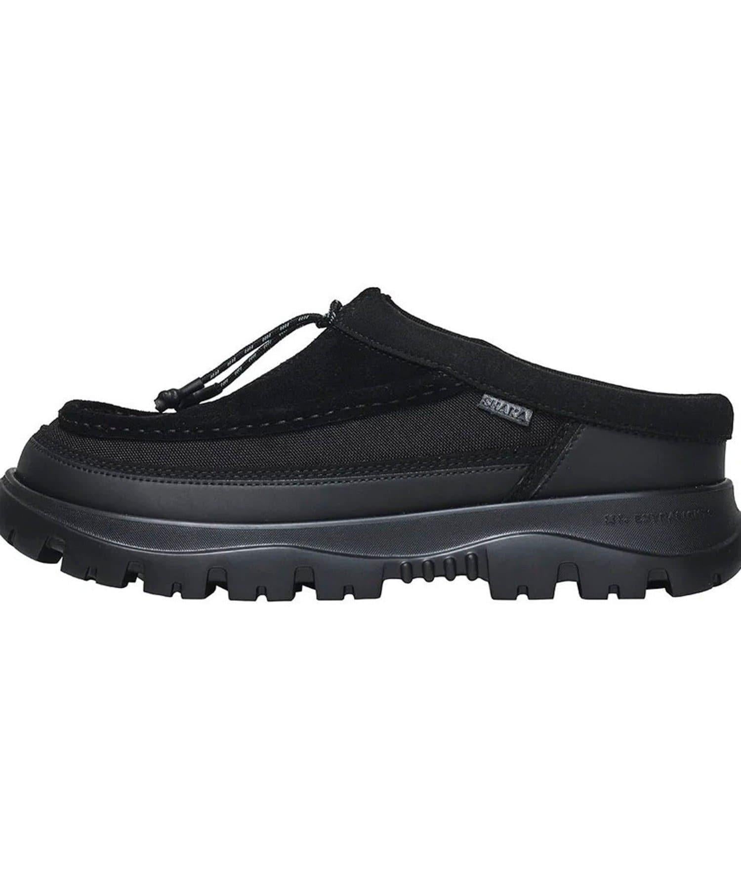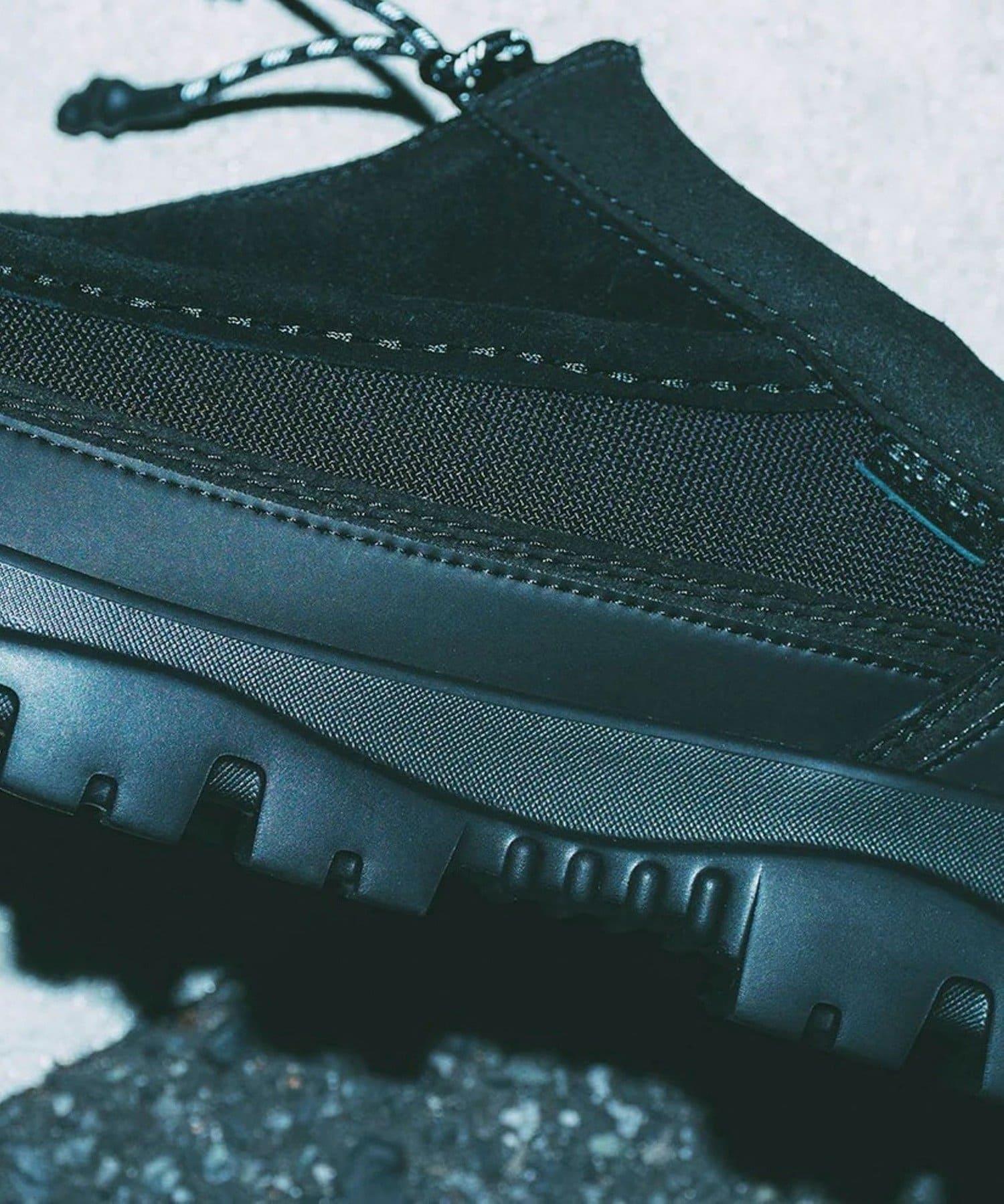 SHAKA 新款 ZIP Moccasin Mule 腳背採用優質麂皮,兩側採用耐用的 Cordura 尼龍。此外,仿真皮質感的超細纖維麂皮絨與 TPU 的結合賦予了這款騾子精緻的科技感設計。