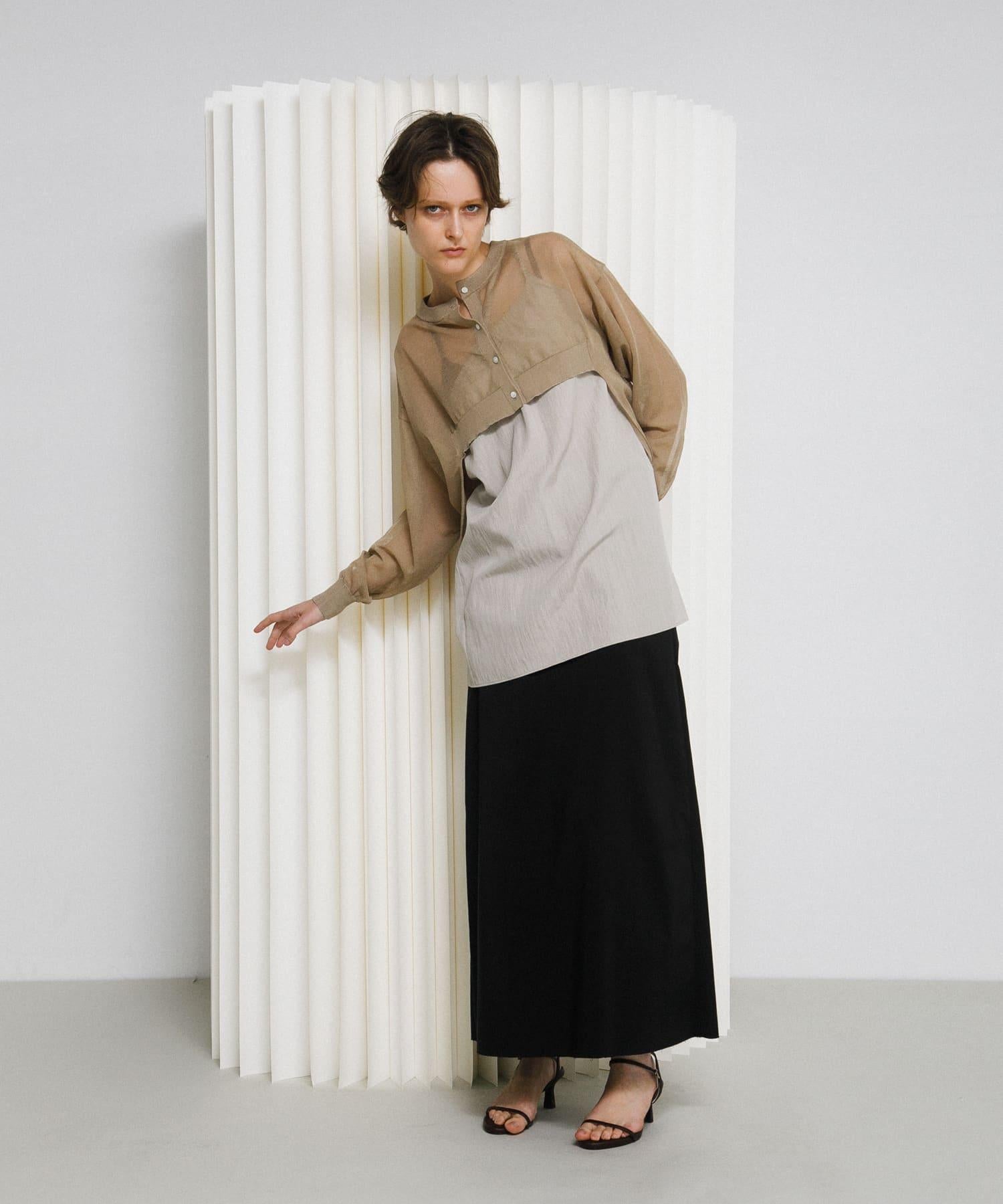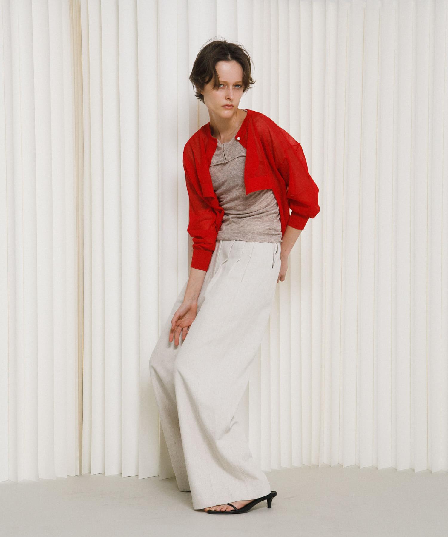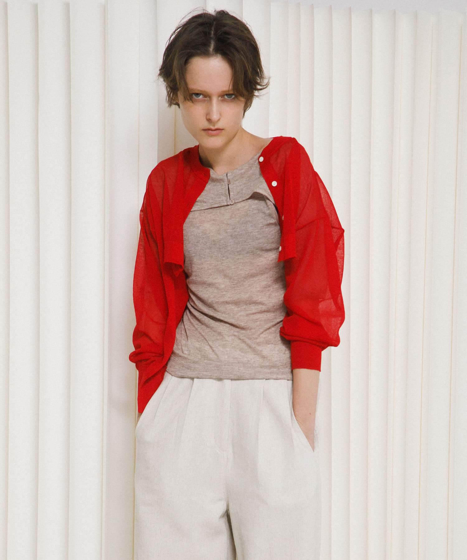 漂亮的透視開襟羊毛衫,輕盈透氣。前擺大膽剪裁的變形設計是 LAATO 的獨特設計。精緻而不失透明感的薄紗和人造絲特有的優雅光澤,為休閒裝增添了成人的高貴氣質。領口、袖口和下襬都採用了牢固的羅紋,收緊了精緻的薄紗材質,使輪廓牢牢固定。前襟的紐扣採用貝殼式設計,能柔和地反射光線,無需配飾即可照亮臉龐。它採用優質混紡紗線製成,既有人造絲的柔滑飄逸,又有滌綸的適度強度,每次接觸肌膚都能感受到涼爽舒適和絲般光澤。將它穿在剪裁合身的背心或吊帶衫外面,可以展現健康的肌膚。由於它輕薄防皺,也非常適合放在包裡,作為夏季的冷氣措施。