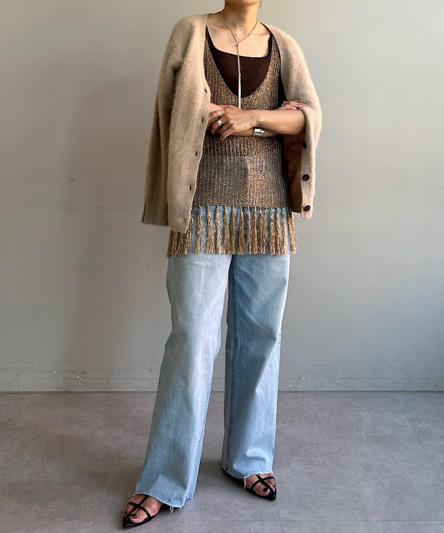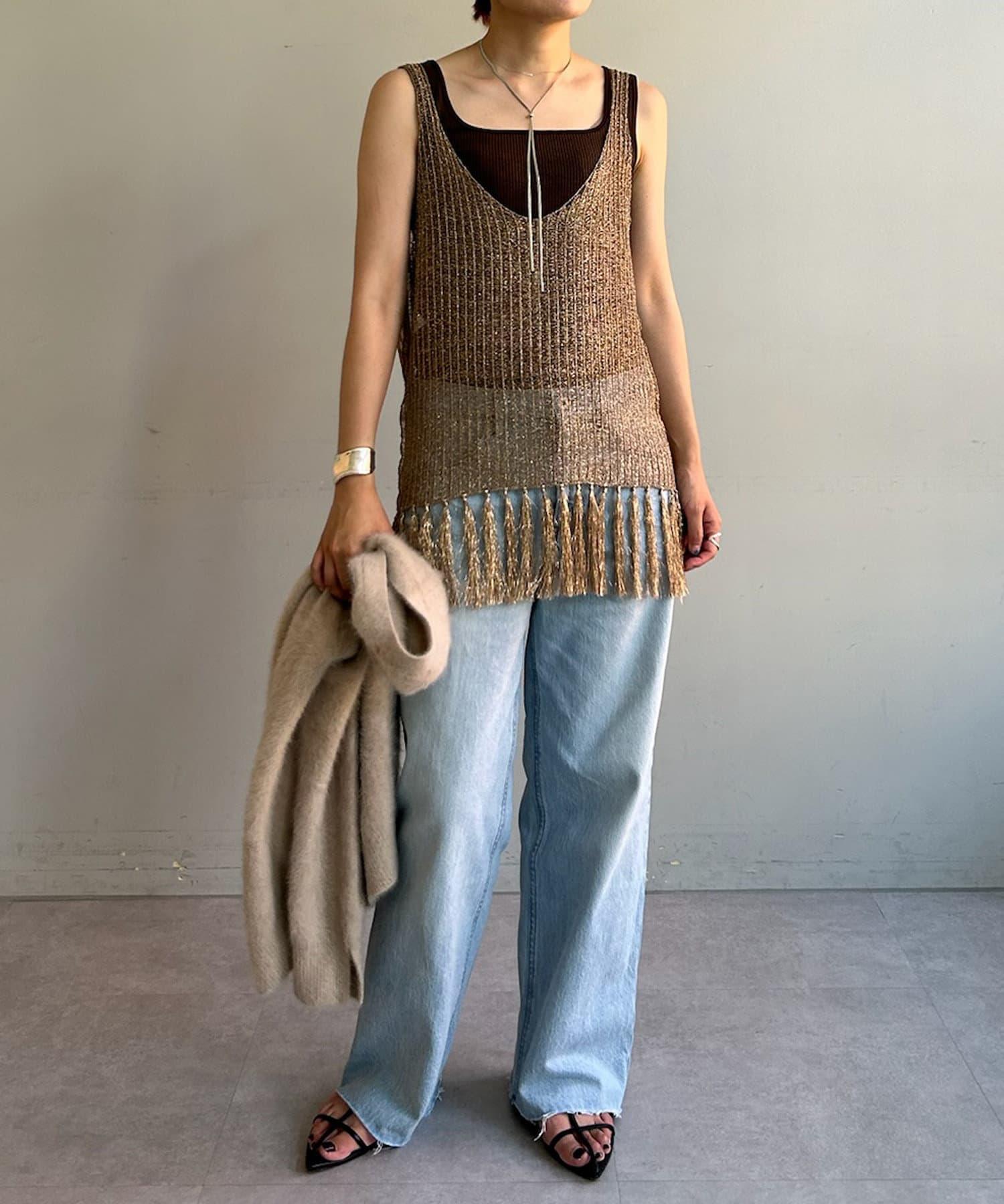這款上衣的下襬有流蘇,在炎炎夏日可搭配無袖衫和 T 恤等夏季單品。
