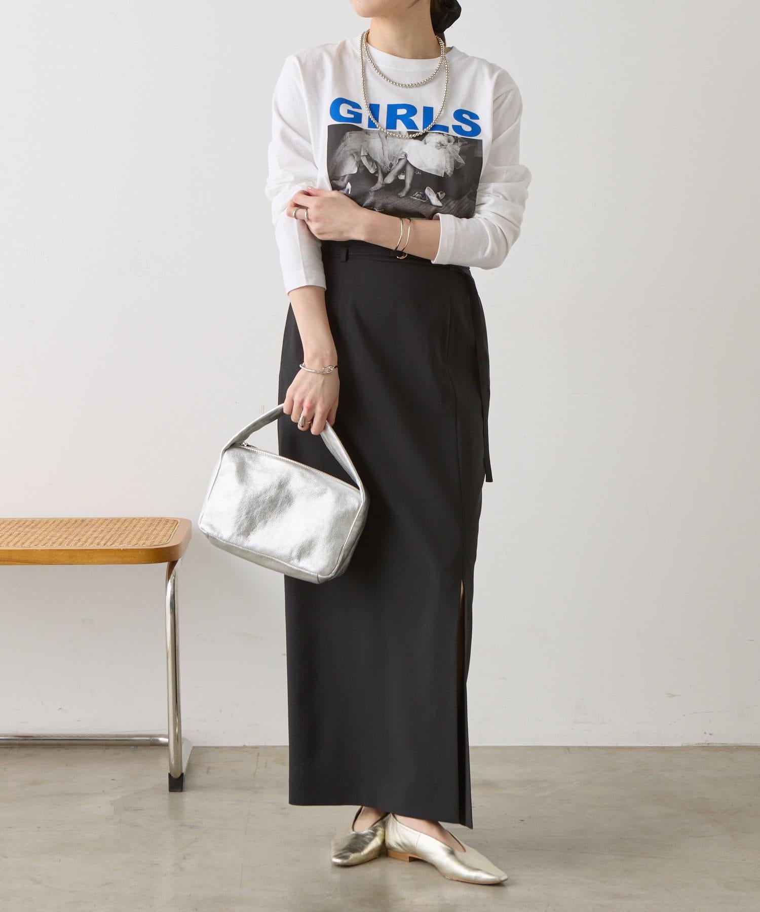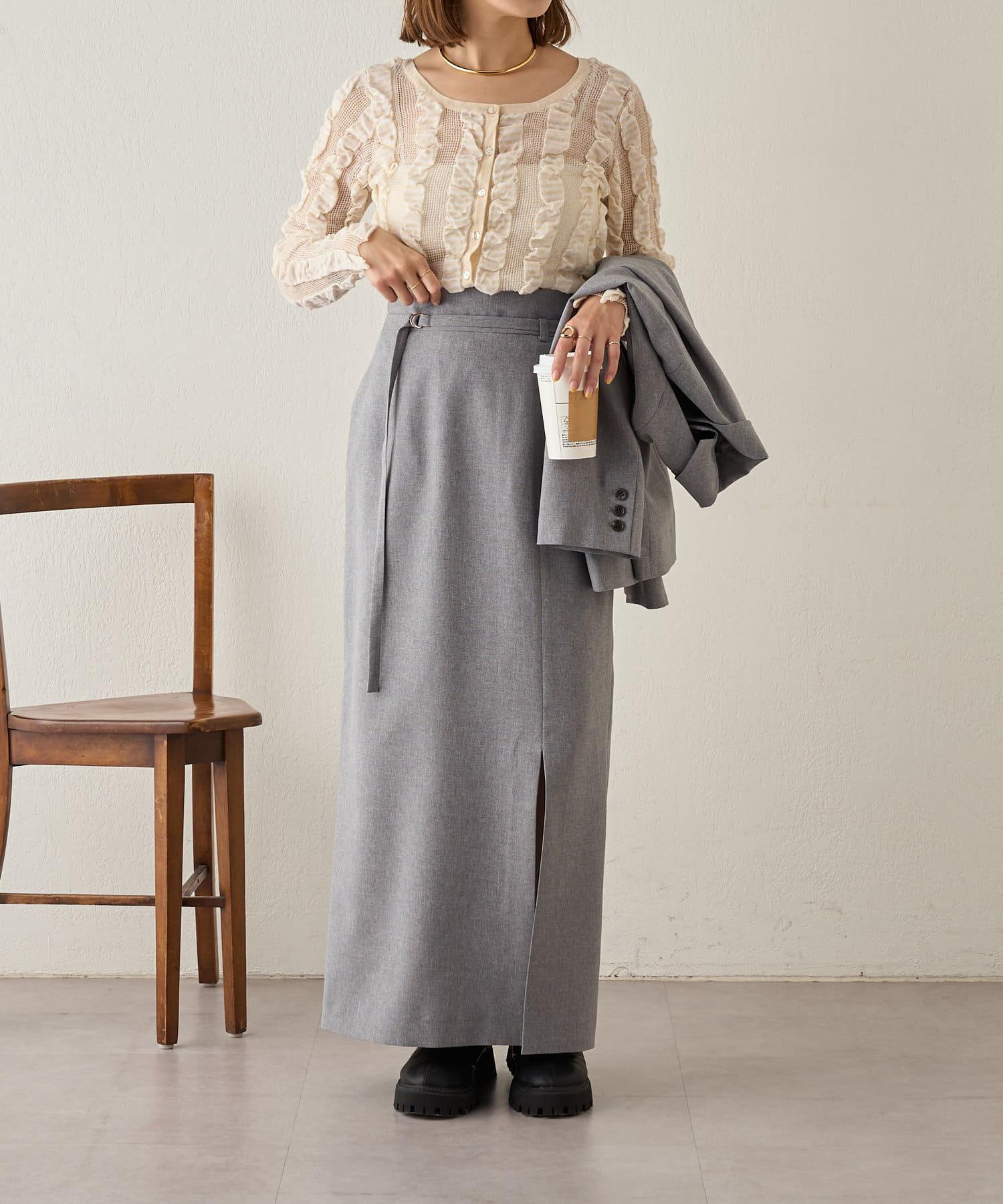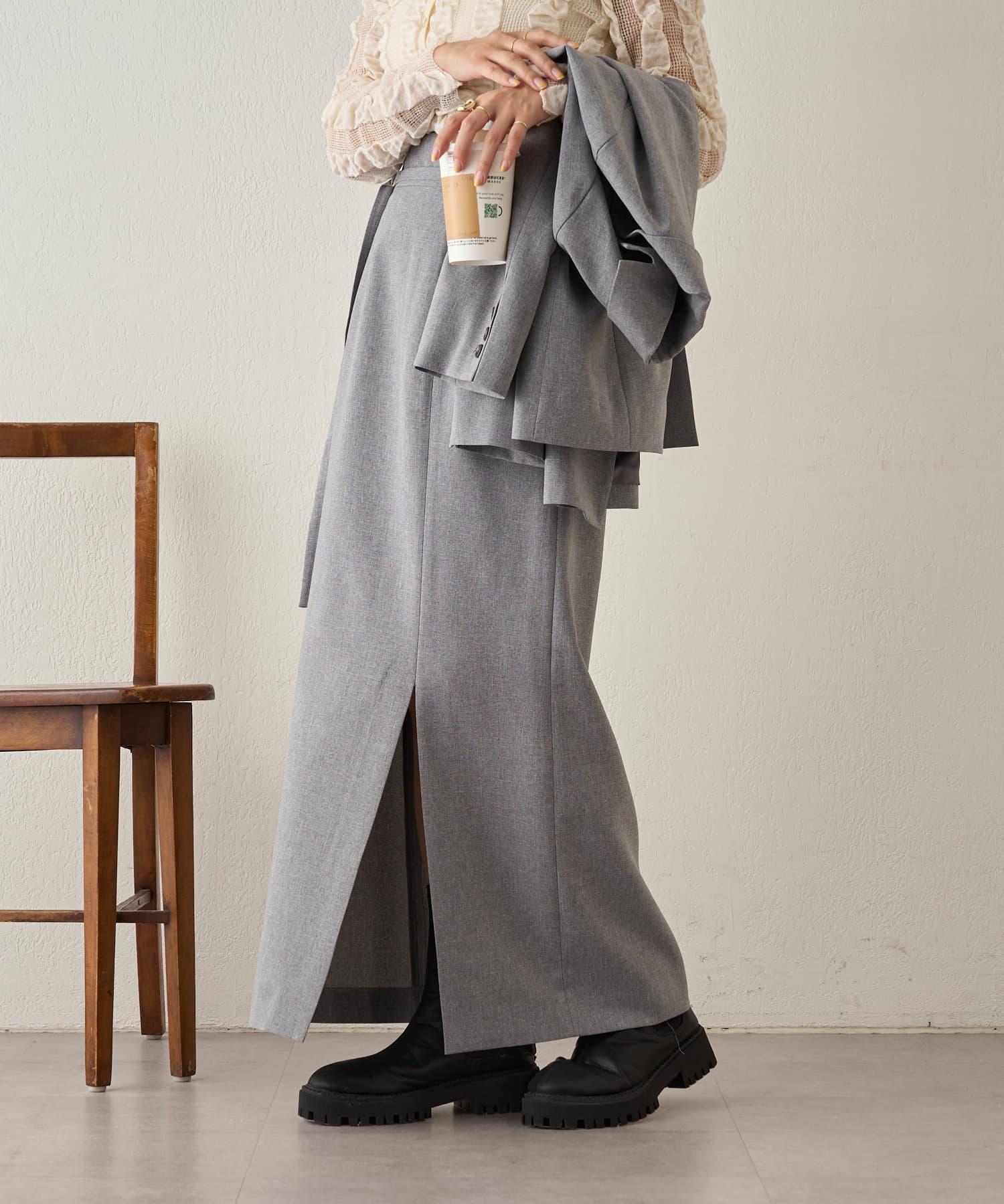 斜前幅的開衩設計是打造輕鬆造型的關鍵點。