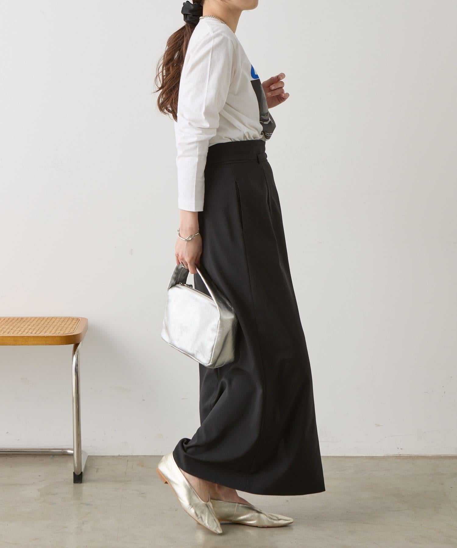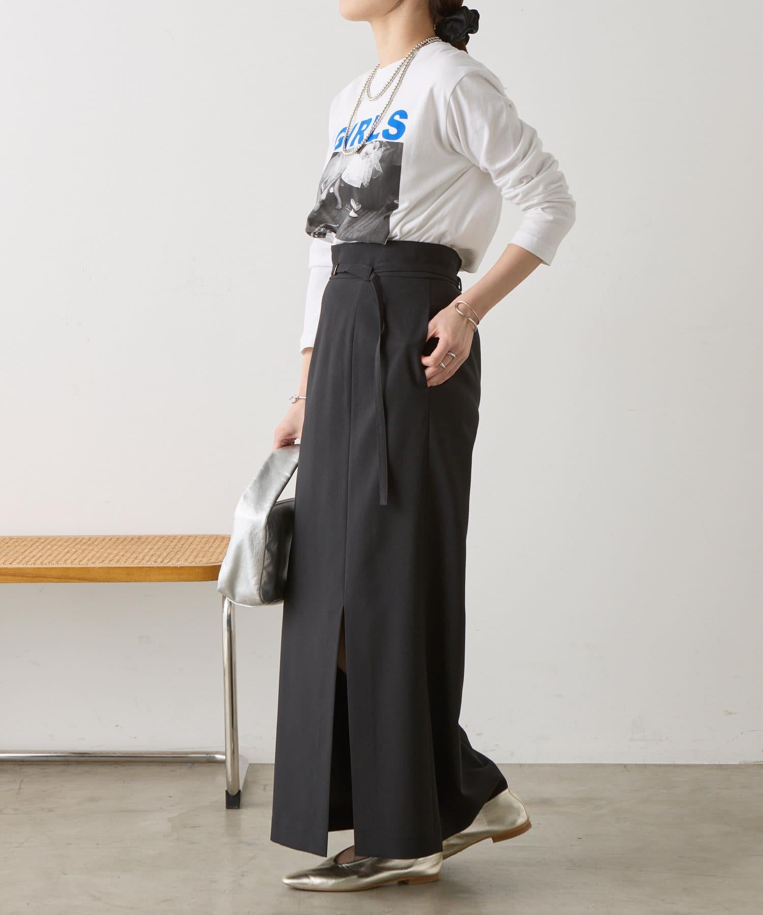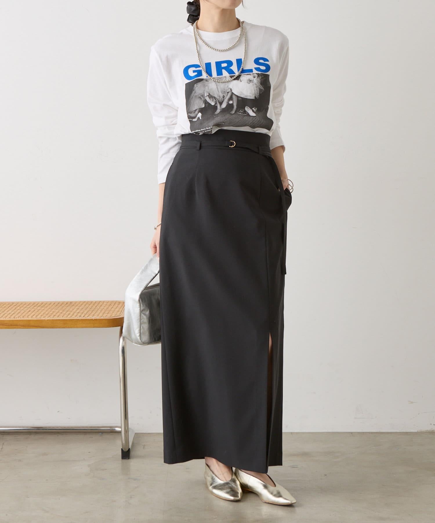 斜前幅的開衩設計是打造輕鬆造型的關鍵點。