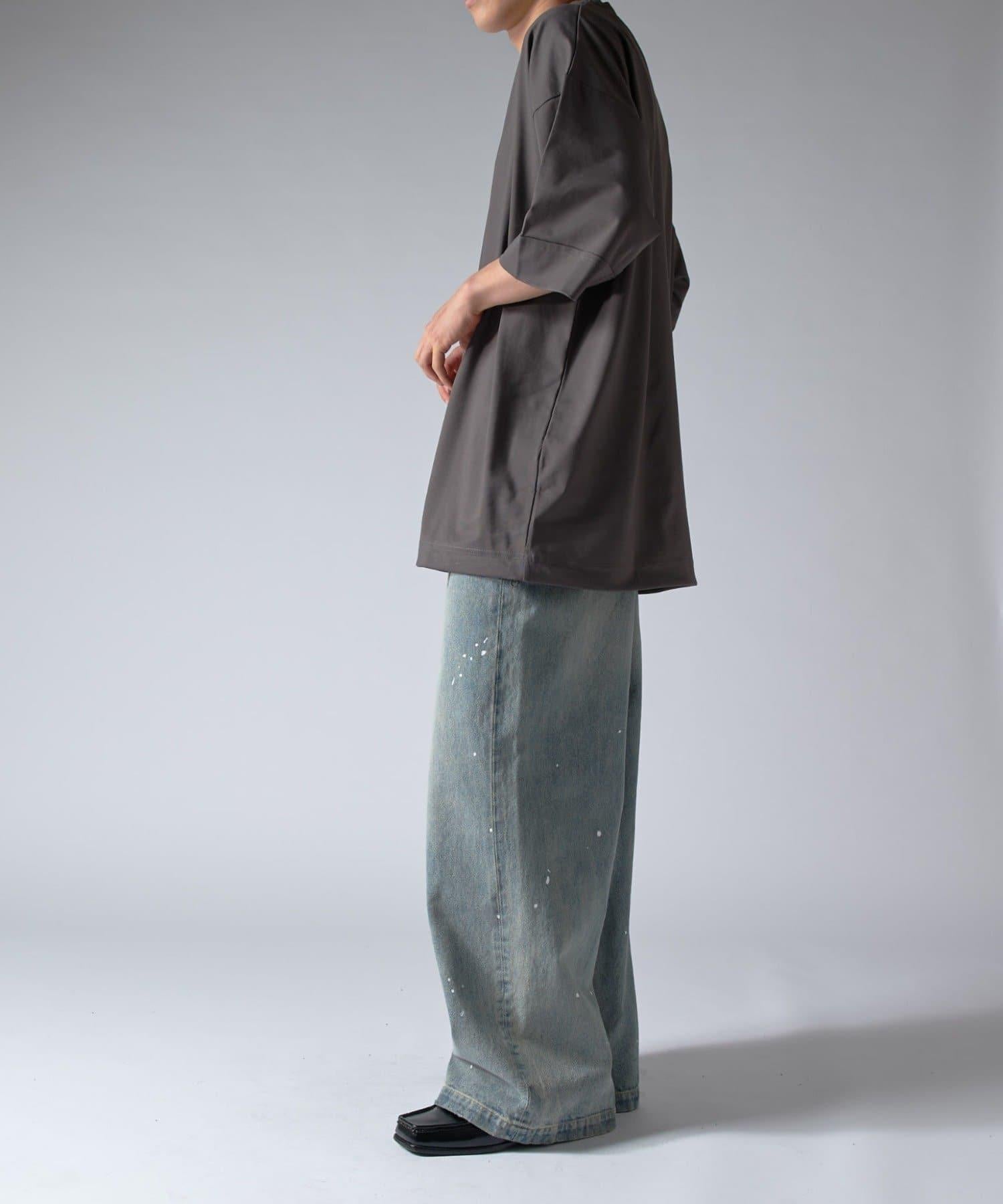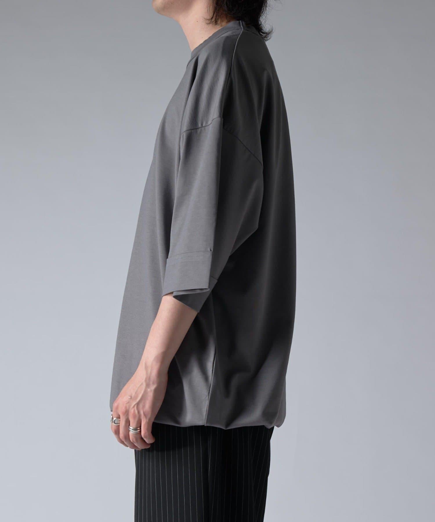 這款單品可以讓你享受純色 T 的存在感。另外,下襬處有抽繩,可通過擠壓長度和廓形進行調節。