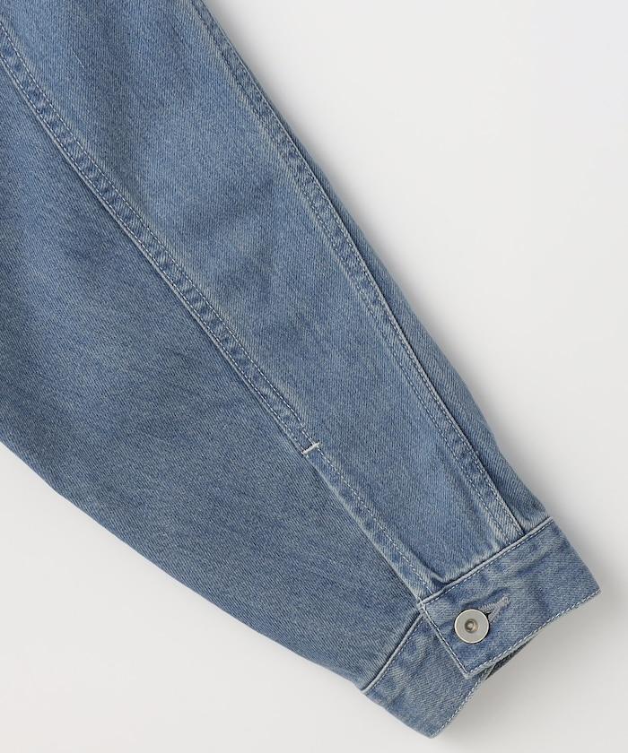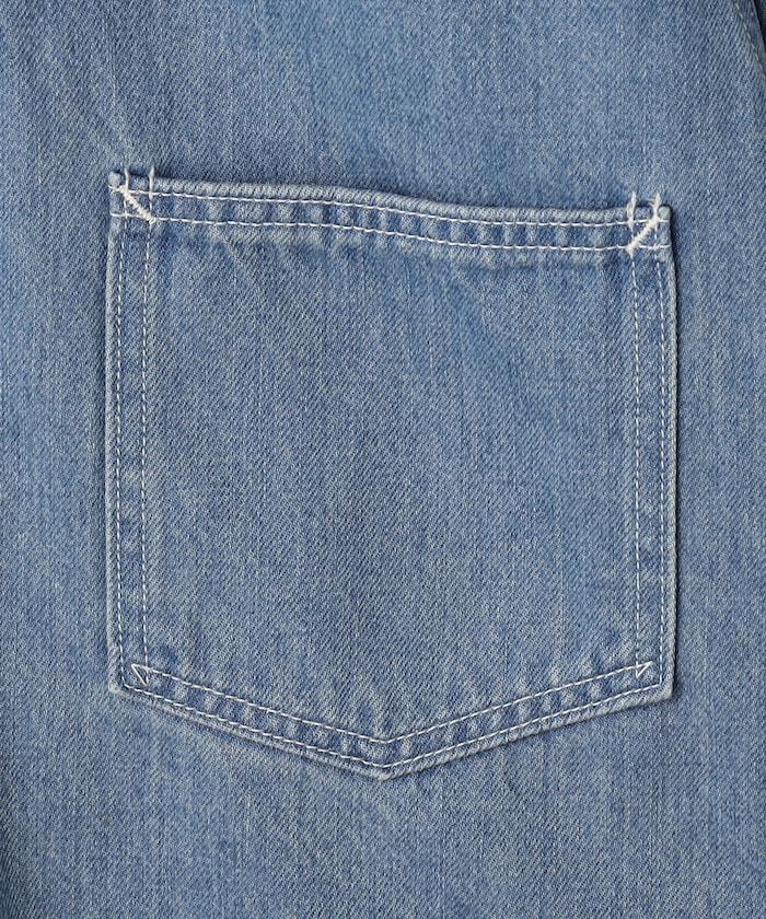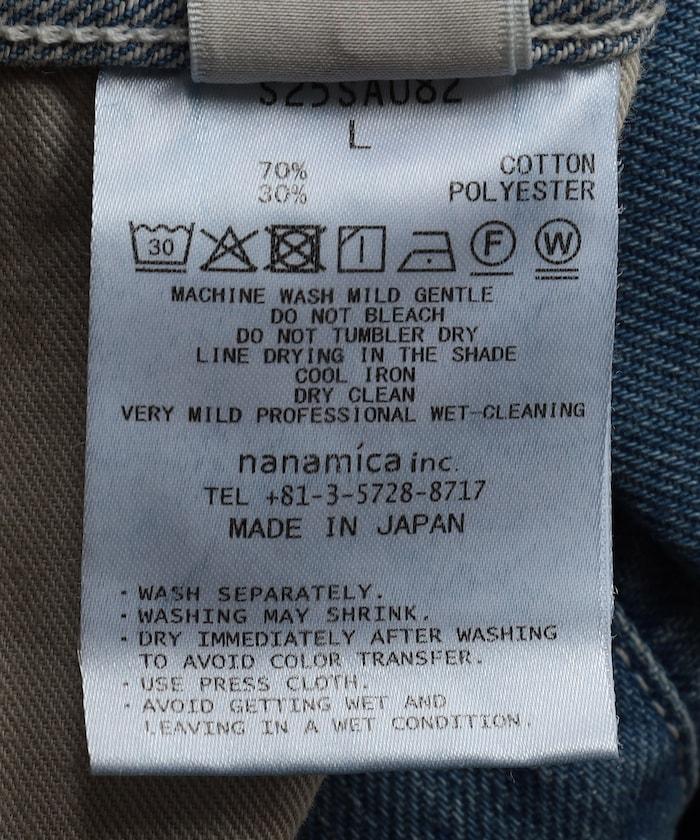 由回收聚酯纖維製成的粗細不均的紗線,外層包裹棉布,由公司自主研發,採用繩染工藝染色。這種 Nanamica 原始混合牛仔布輕便、耐用、易幹,同時還能讓面料隨時間自然變化。
