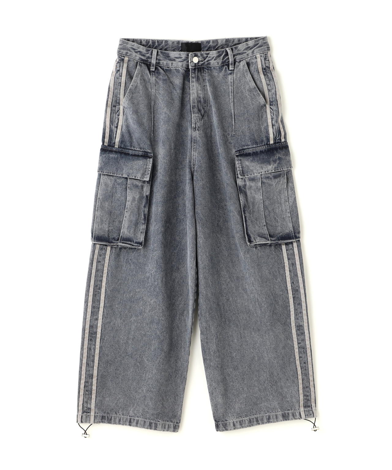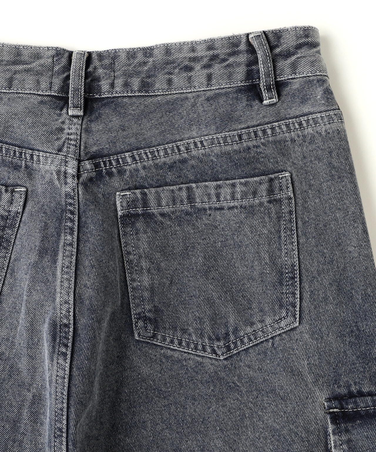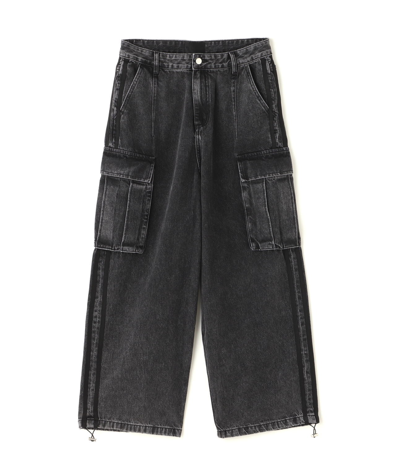 寬鬆牛仔長褲,側袋和側線裝飾。