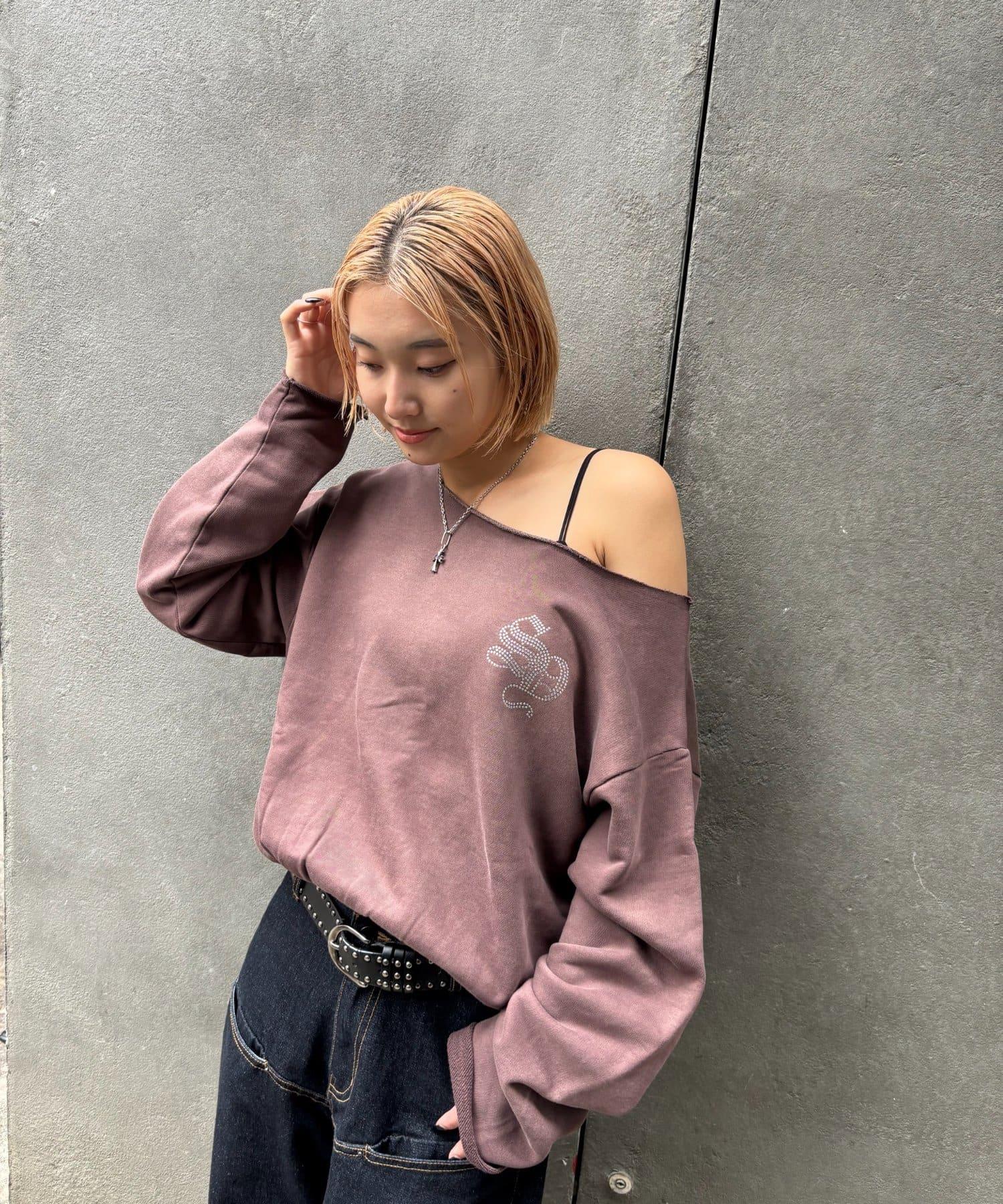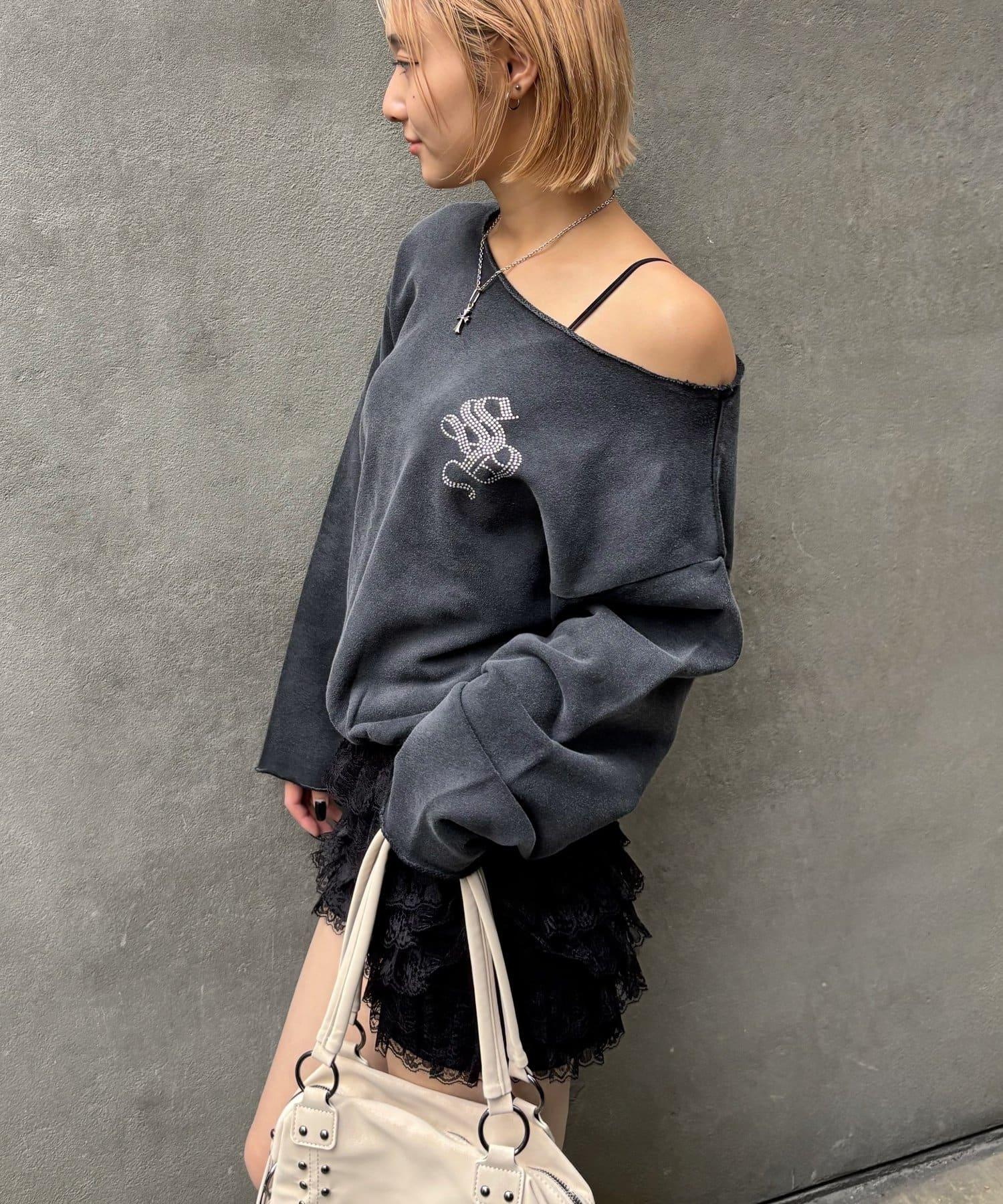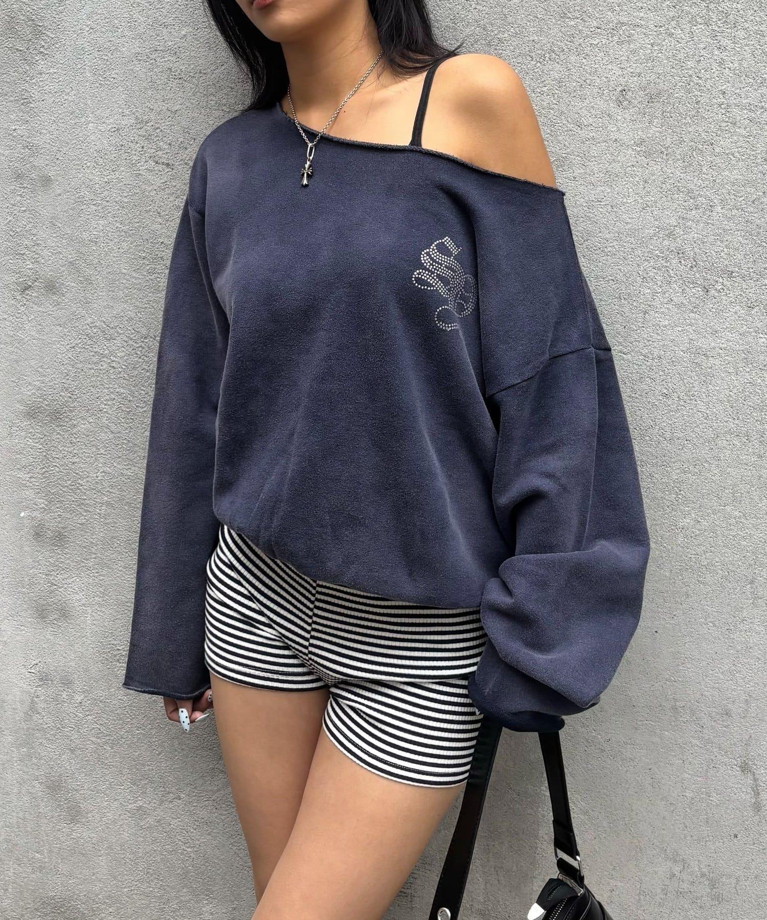 SLOPPY水鑽露肩運動衫閃亮、粗獷,隨時準備彰顯個性。