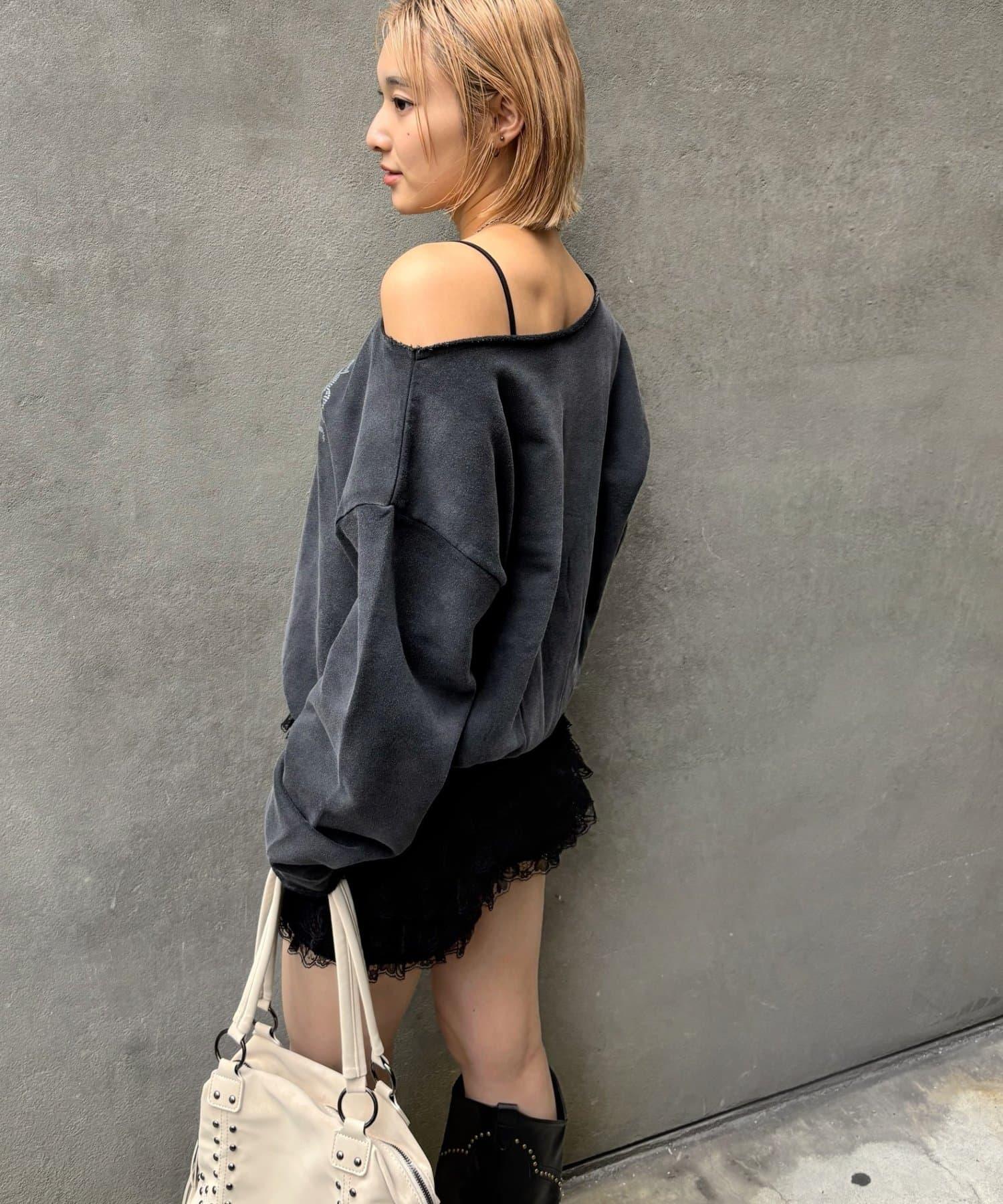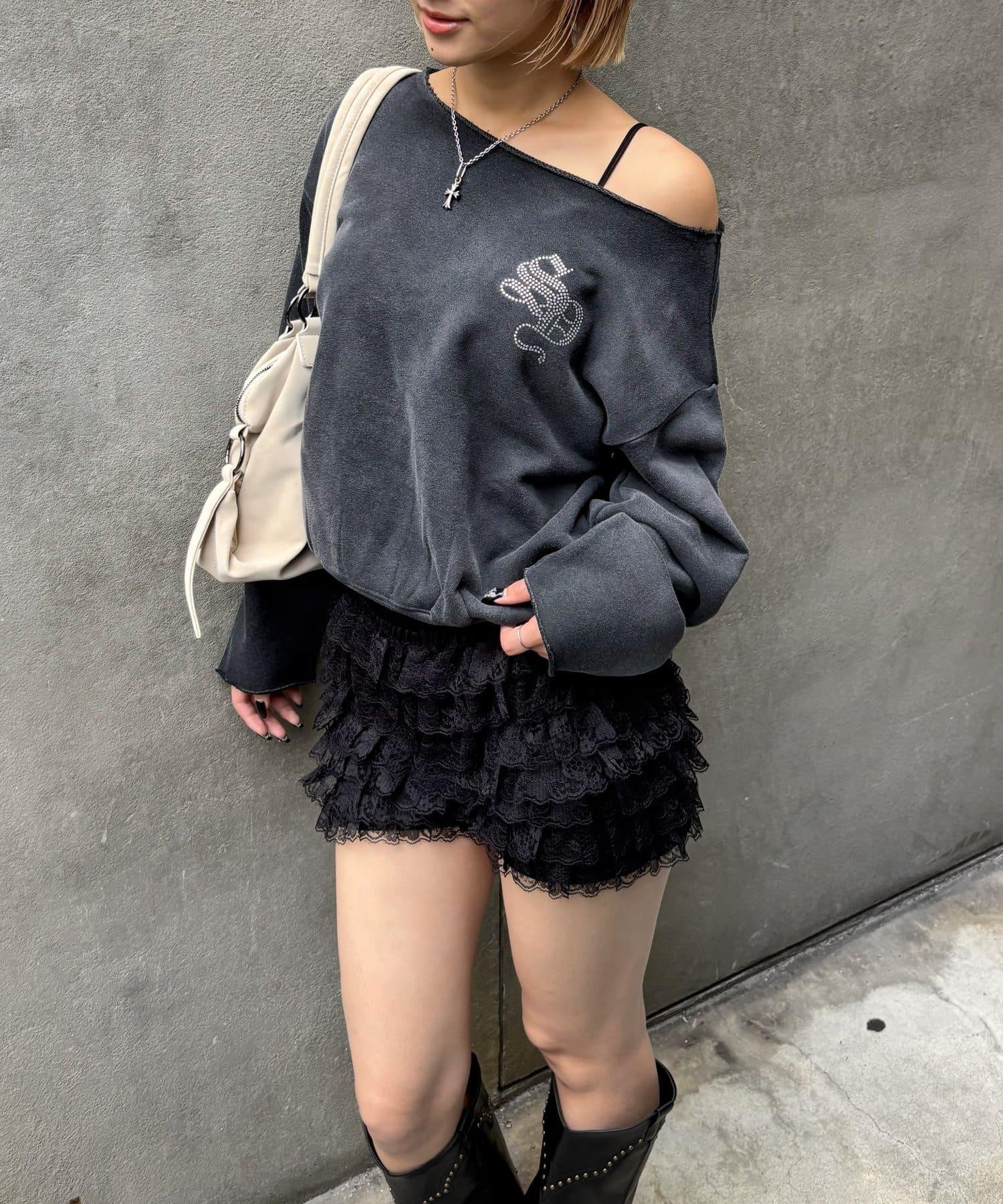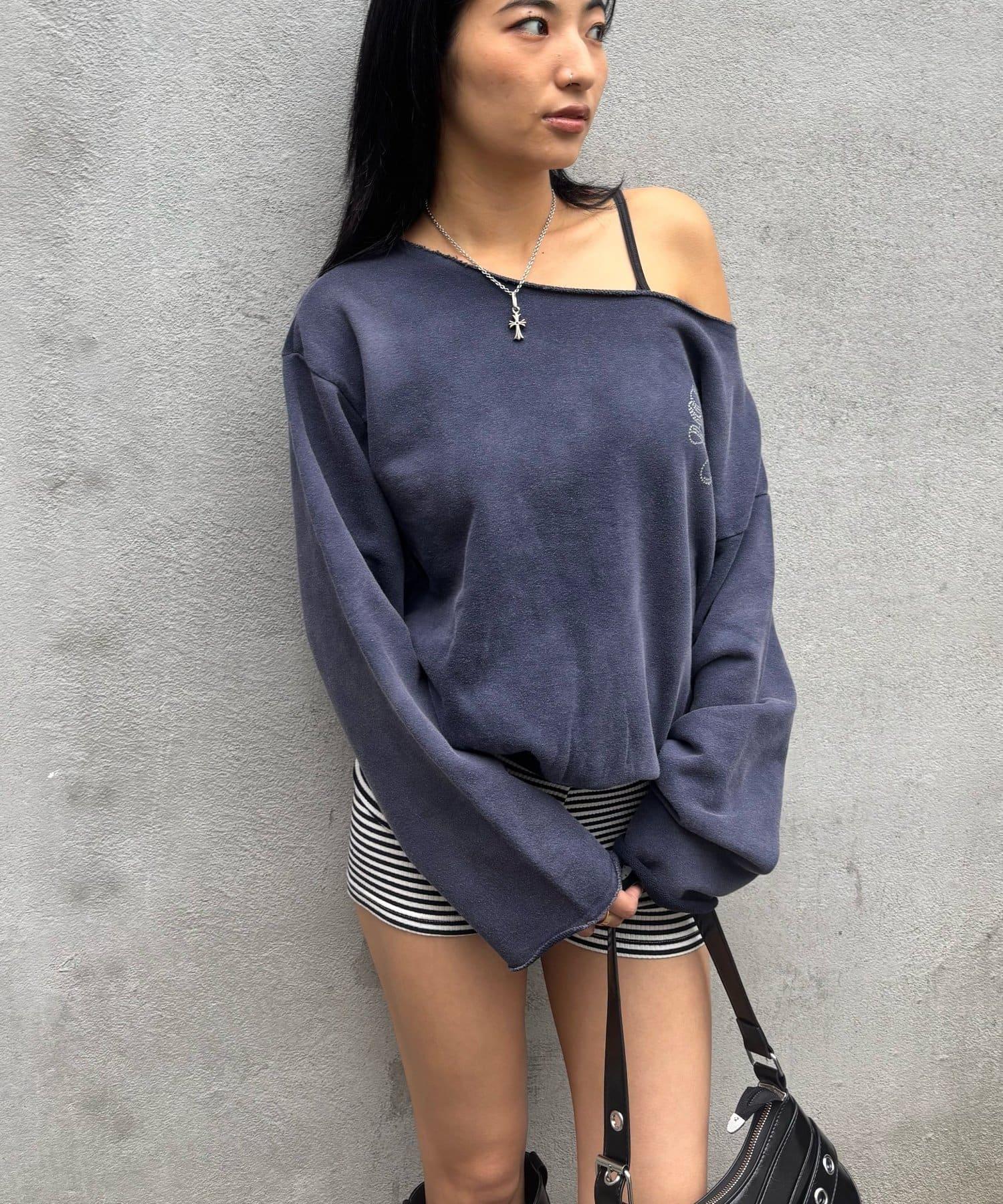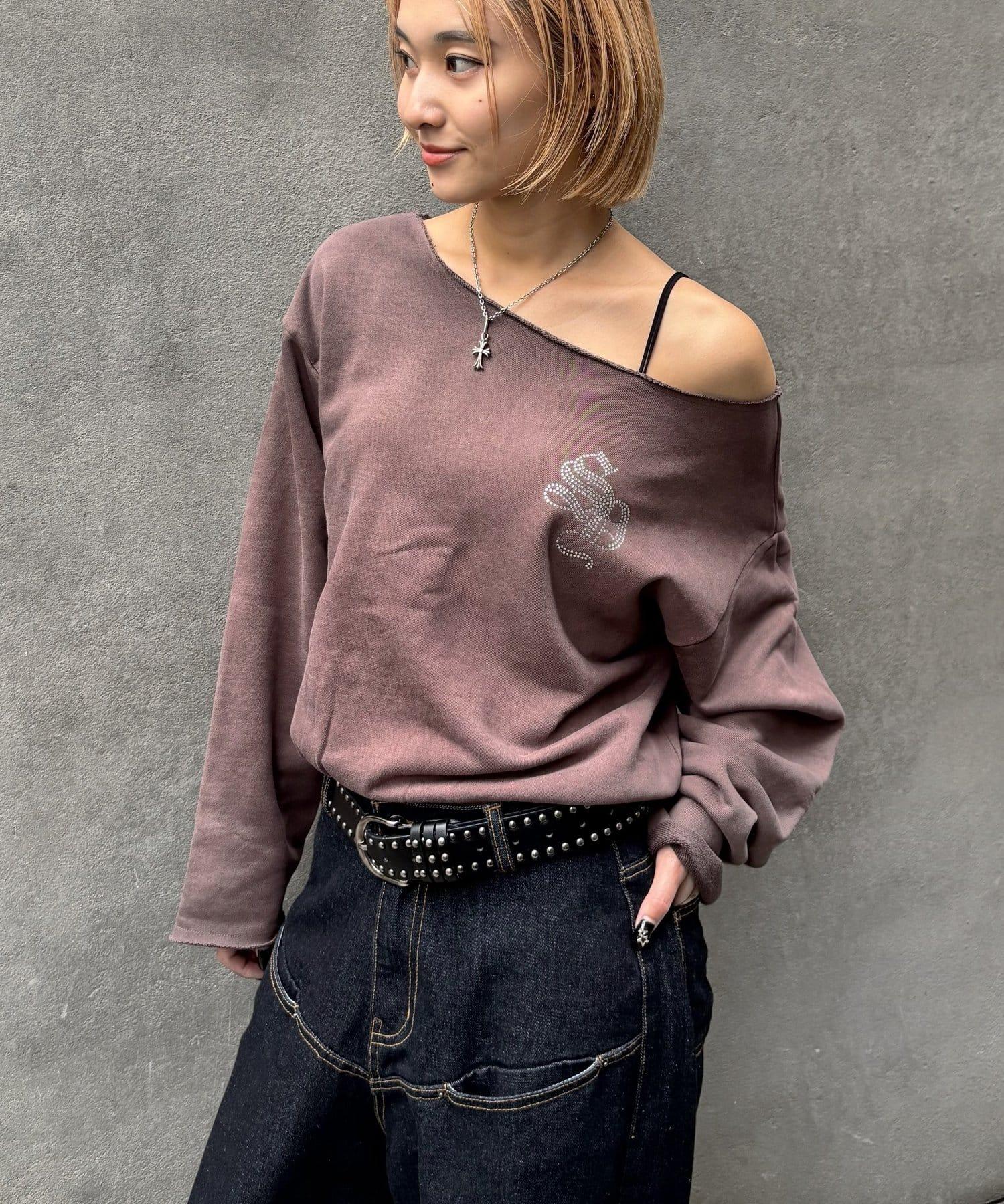 SLOPPY水鑽露肩運動衫閃亮、粗獷,隨時準備彰顯個性。