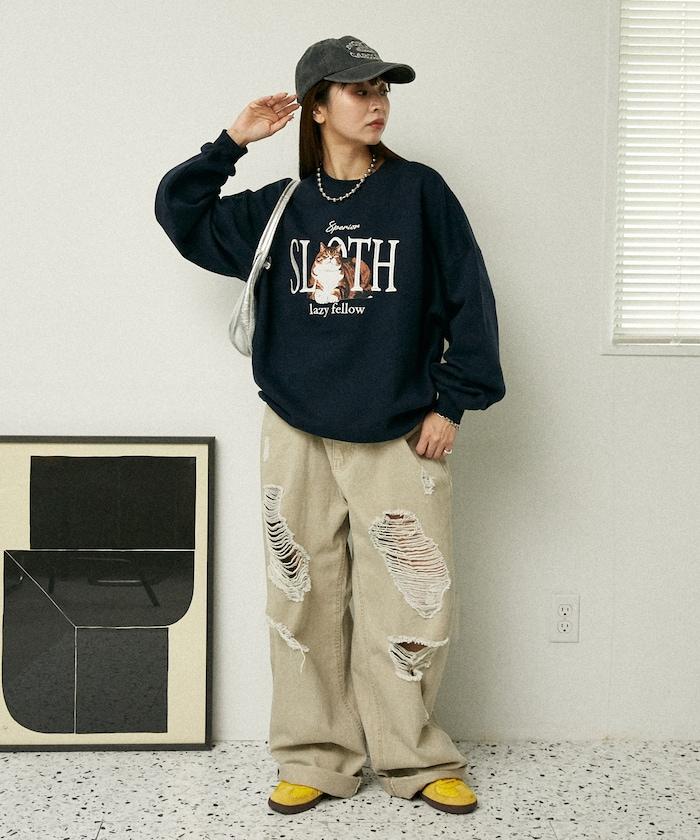 搭配簡單的直筒牛仔褲或闊腿褲,以印花為主角,打造粗獷的街頭風格。