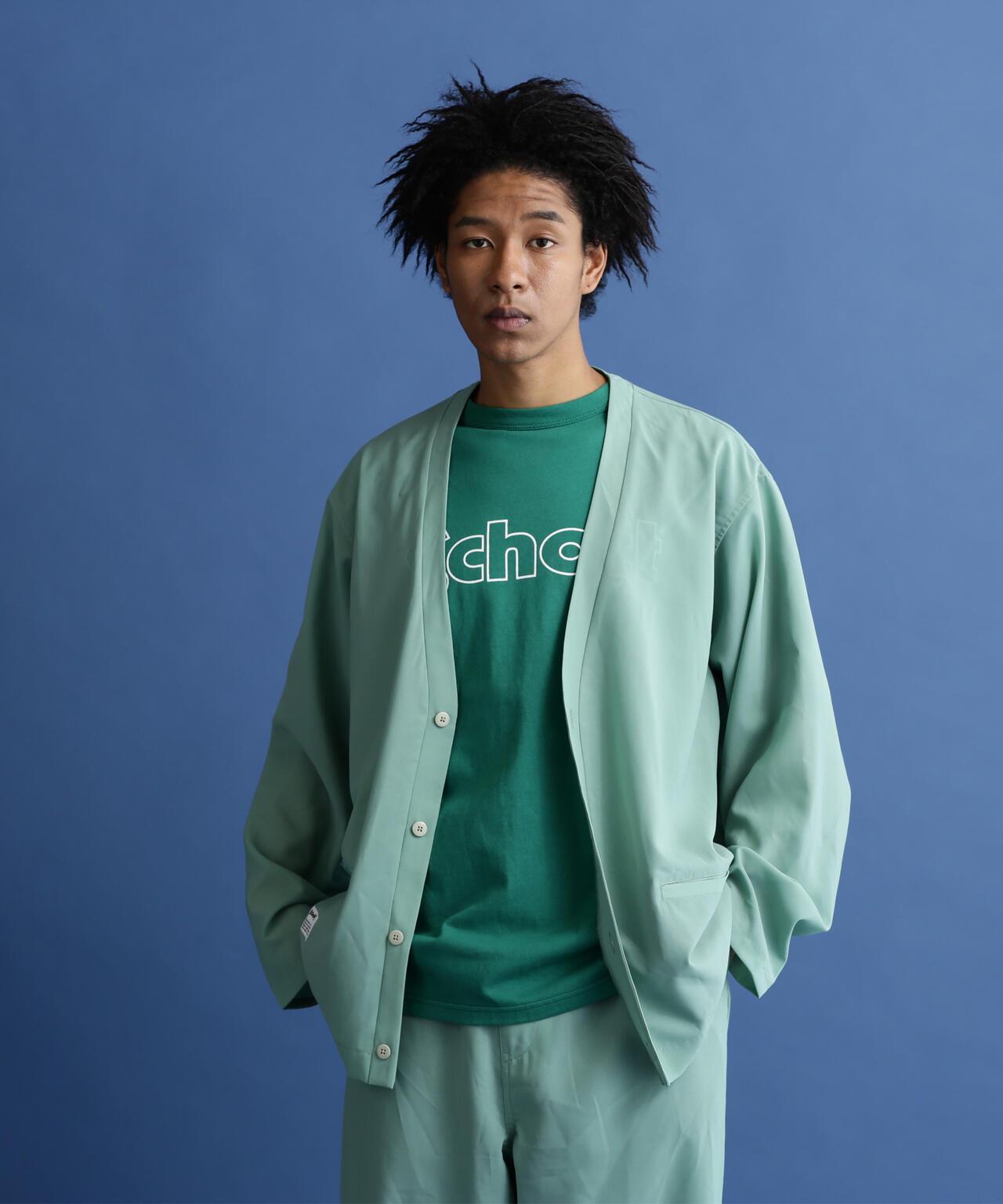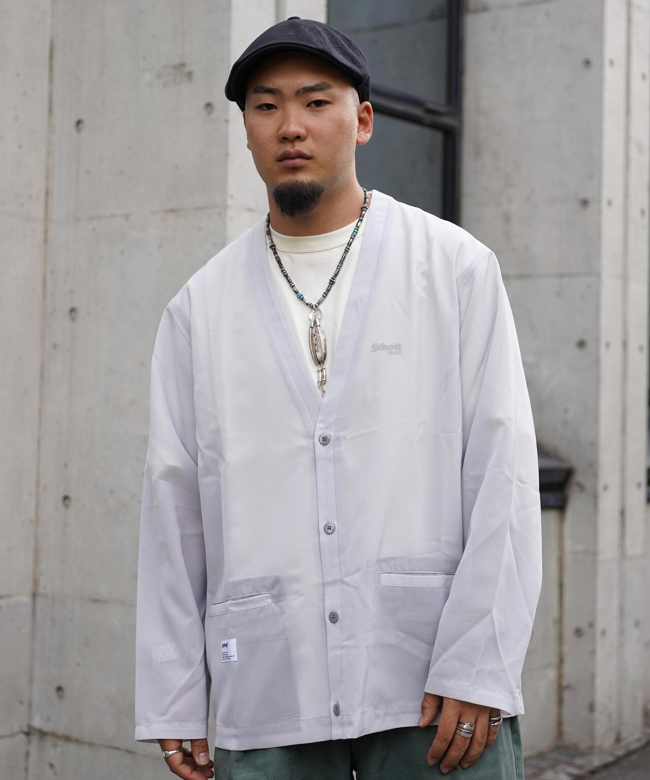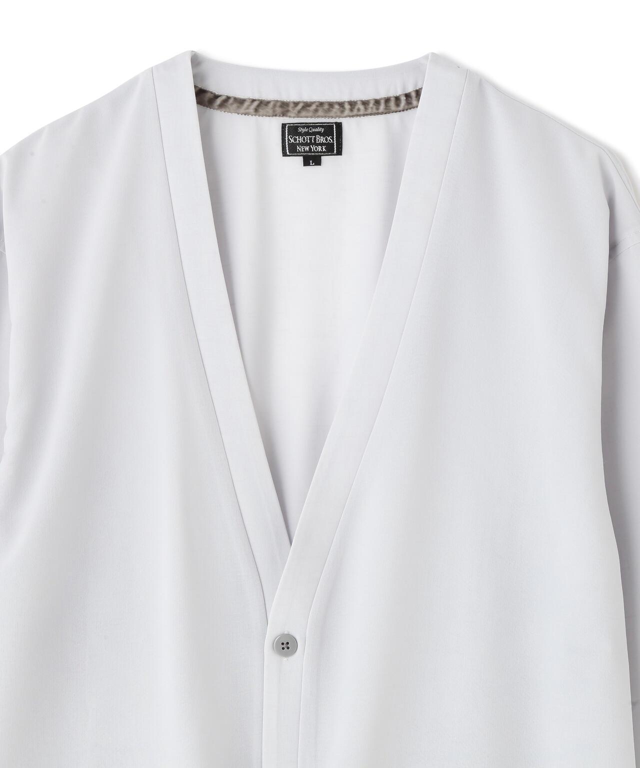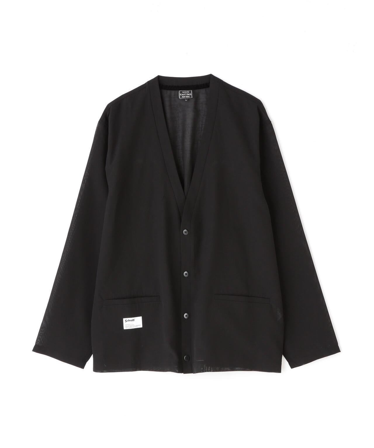 由滌綸短纖紗線製成的雪紡面料,具有牢固的折斷強度,可形成凹凸不平的線頭。由於使用了紗線的紗線,外觀看起來結痂大氣,透明度也不高,便於男士採用。紗線絨毛的特點隨處可見,其特有的凹凸感減少了皮膚表面的負擔,在溼熱的日本穿著也很舒適。由於這種面料具有天然的涼爽性,因此從初春到夏末都可以長期穿著。考慮到面料的特性,該款採用了寬鬆的剪裁。為了方便拿取小件物品,還增加了口袋。前襟的平衡度也做了調整,以適應那些從未嘗試過開襟羊毛衫的人。