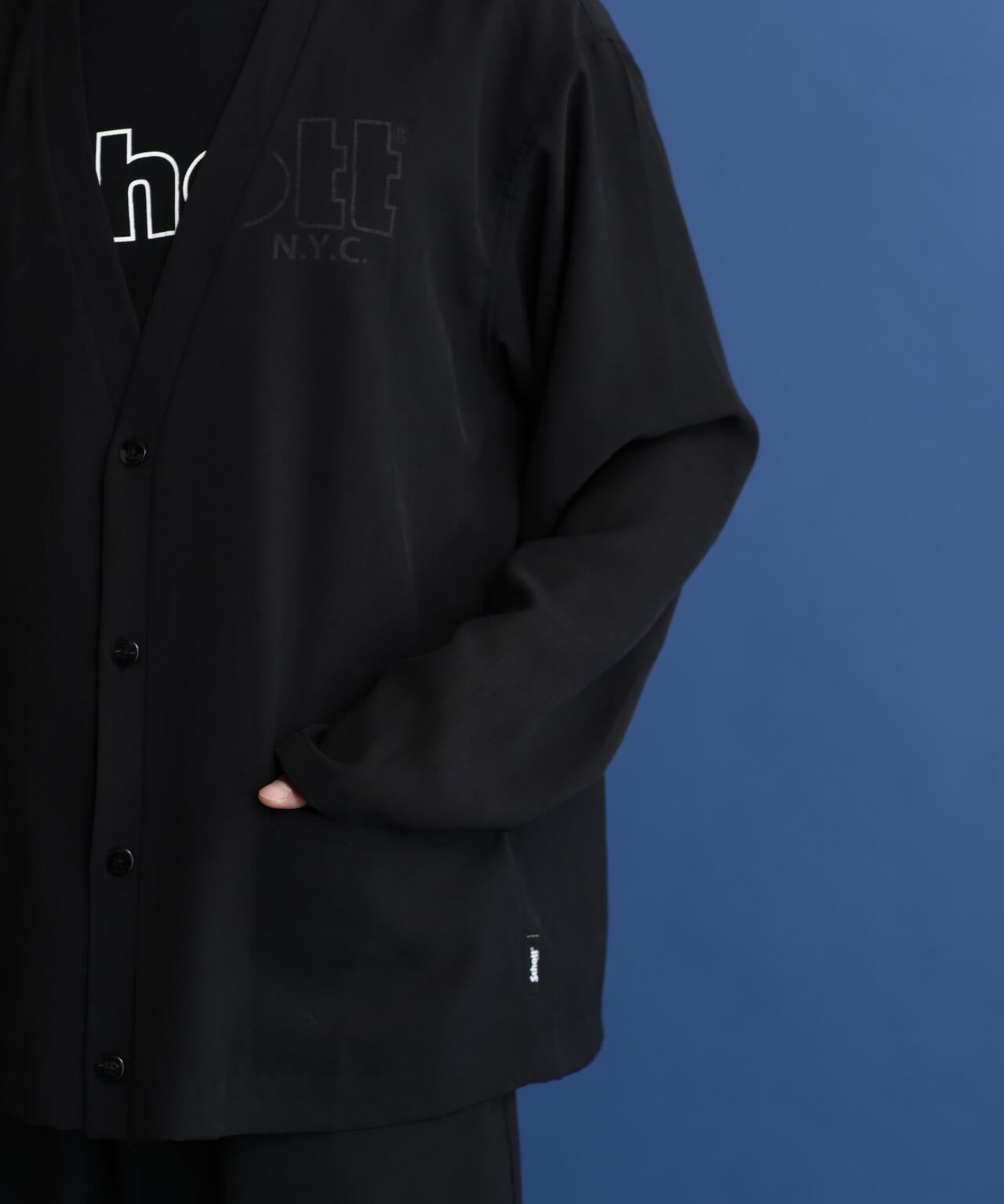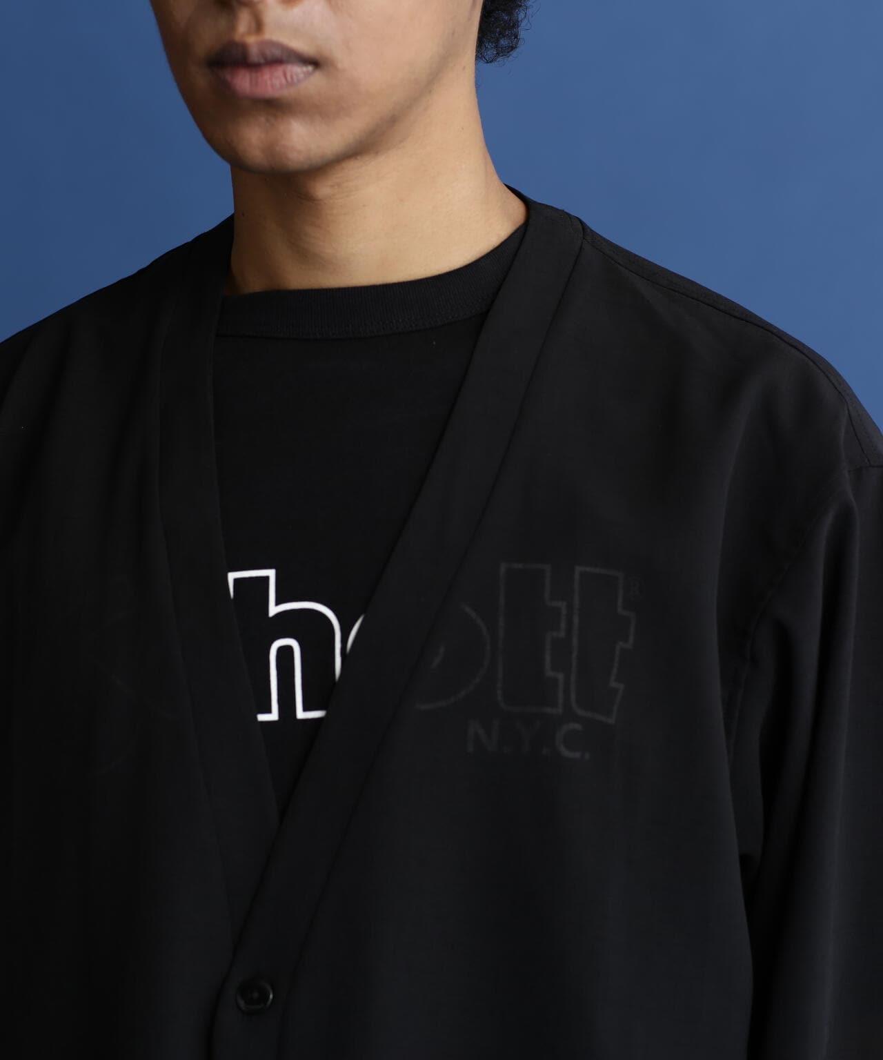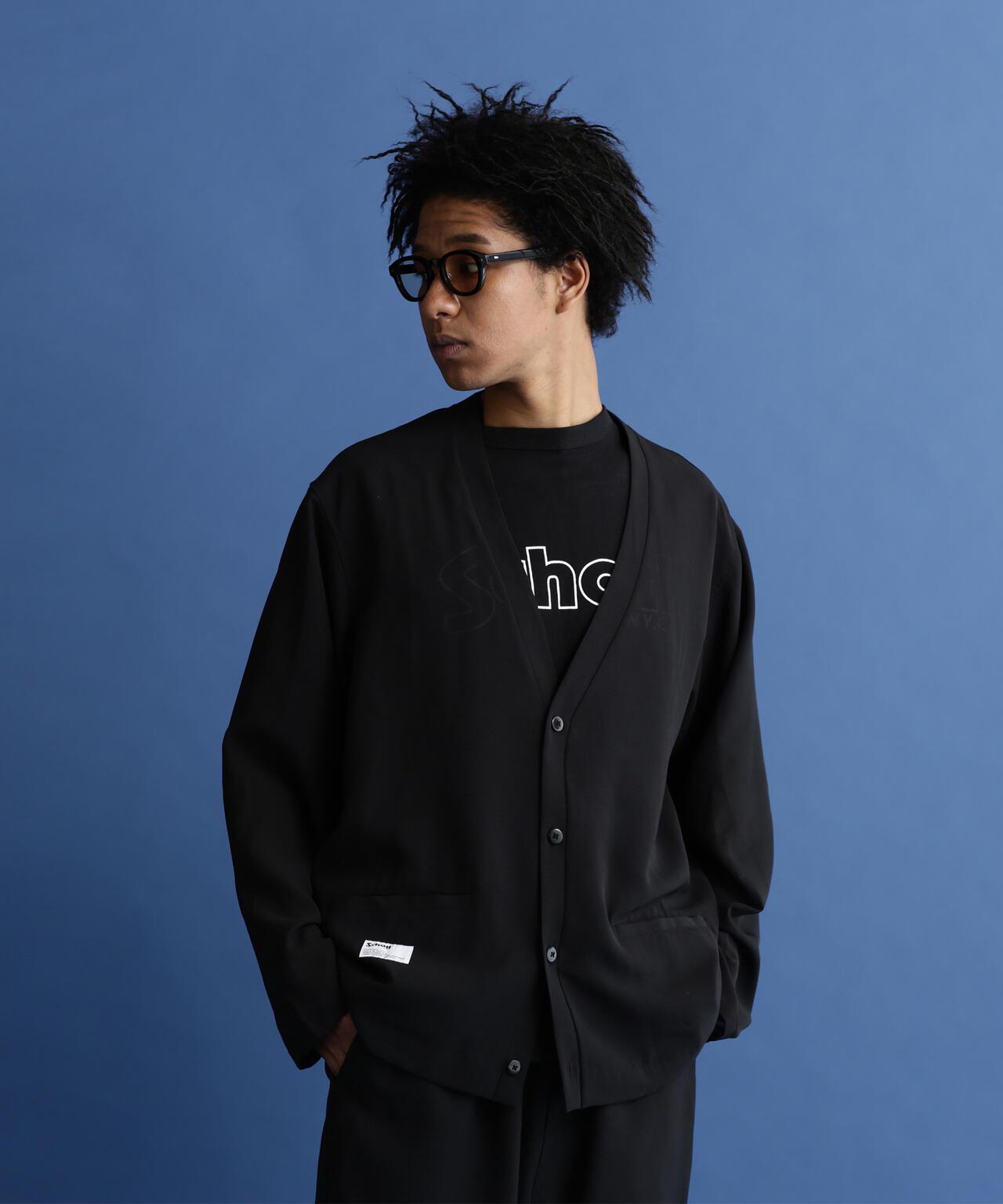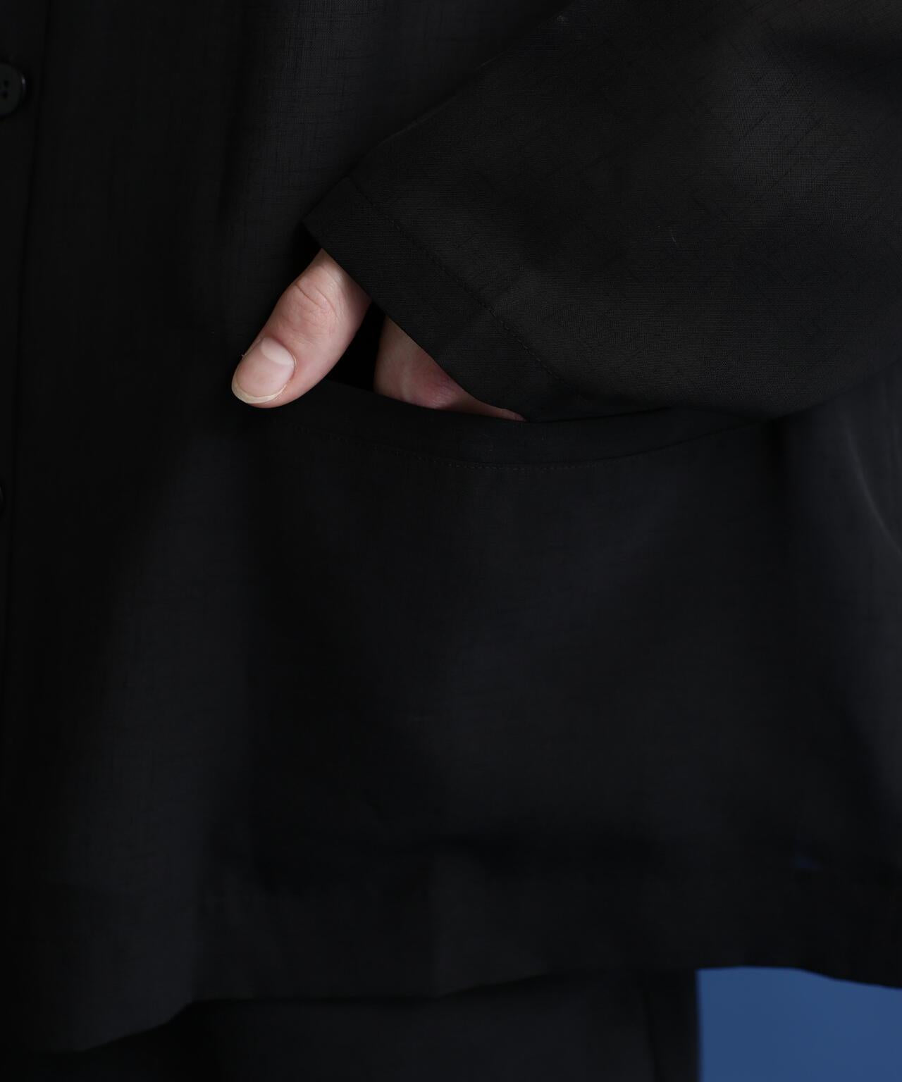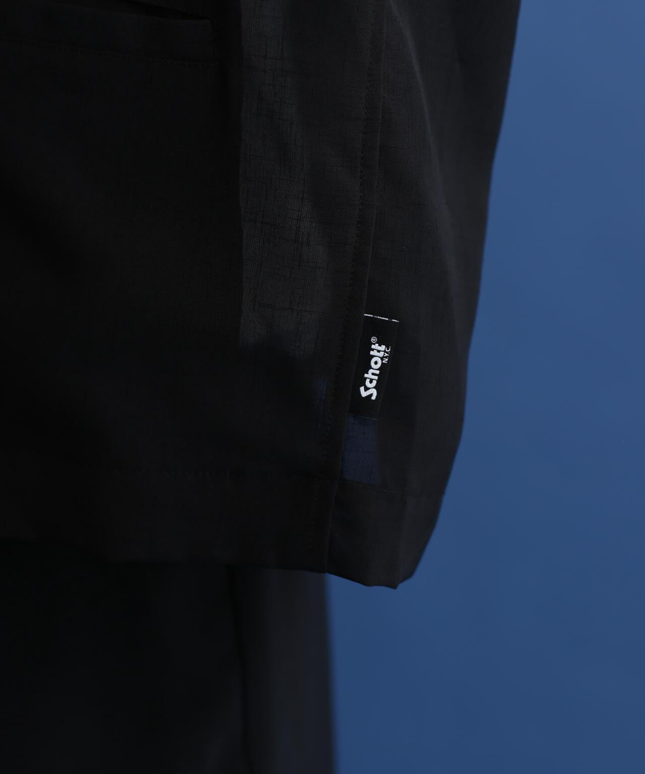 由滌綸短纖紗線製成的雪紡面料,具有牢固的折斷強度,可形成凹凸不平的線頭。由於使用了紗線的紗線,外觀看起來結痂大氣,透明度也不高,便於男士採用。紗線絨毛的特點隨處可見,其特有的凹凸感減少了皮膚表面的負擔,在溼熱的日本穿著也很舒適。由於這種面料具有天然的涼爽性,因此從初春到夏末都可以長期穿著。考慮到面料的特性,該款採用了寬鬆的剪裁。為了方便拿取小件物品,還增加了口袋。前襟的平衡度也做了調整,以適應那些從未嘗試過開襟羊毛衫的人。