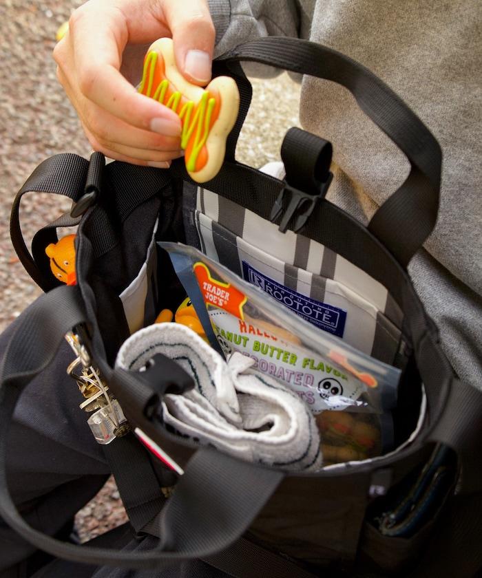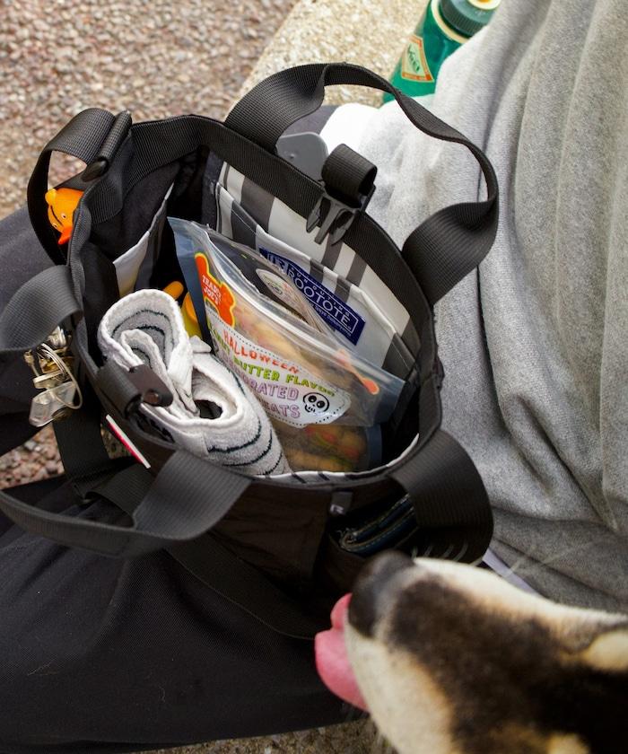 這款手提袋可以有條不紊地容納帶狗散步時的所有必需品。
