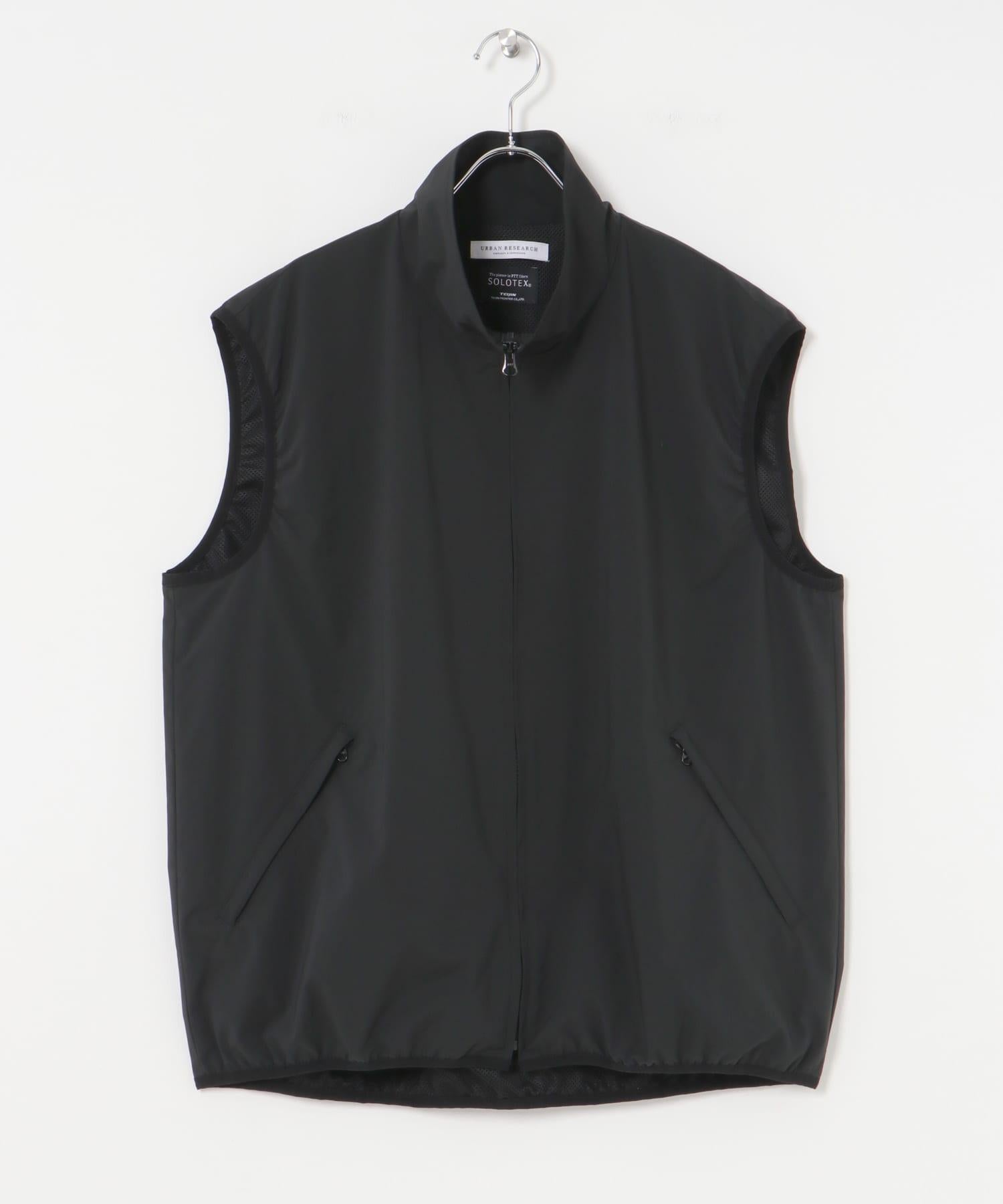 衣身採用帝人公司開發的高性能材料 "Solotex(R)",集柔軟觸感、輕度彈力、形狀恢復等多種規格於一身,穿著舒適。它是一款高規格背心,具有防水和速幹功能,並添加了 MINOTECH 功能。採用戶外風格的全襯裡網眼面料,穿著舒適,層次分明。
