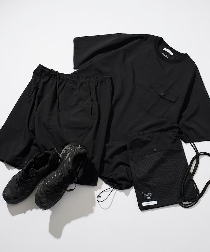 外層面料上的細網眼布由帝人Frontier的SOLOTEX(R)聚酯複合纖維製成。它還具有自然伸縮功能,穿著舒適。