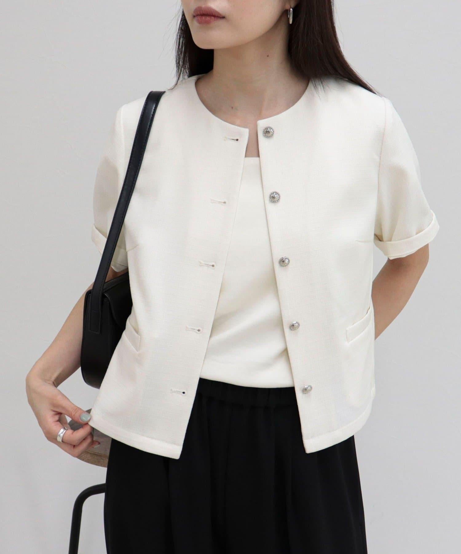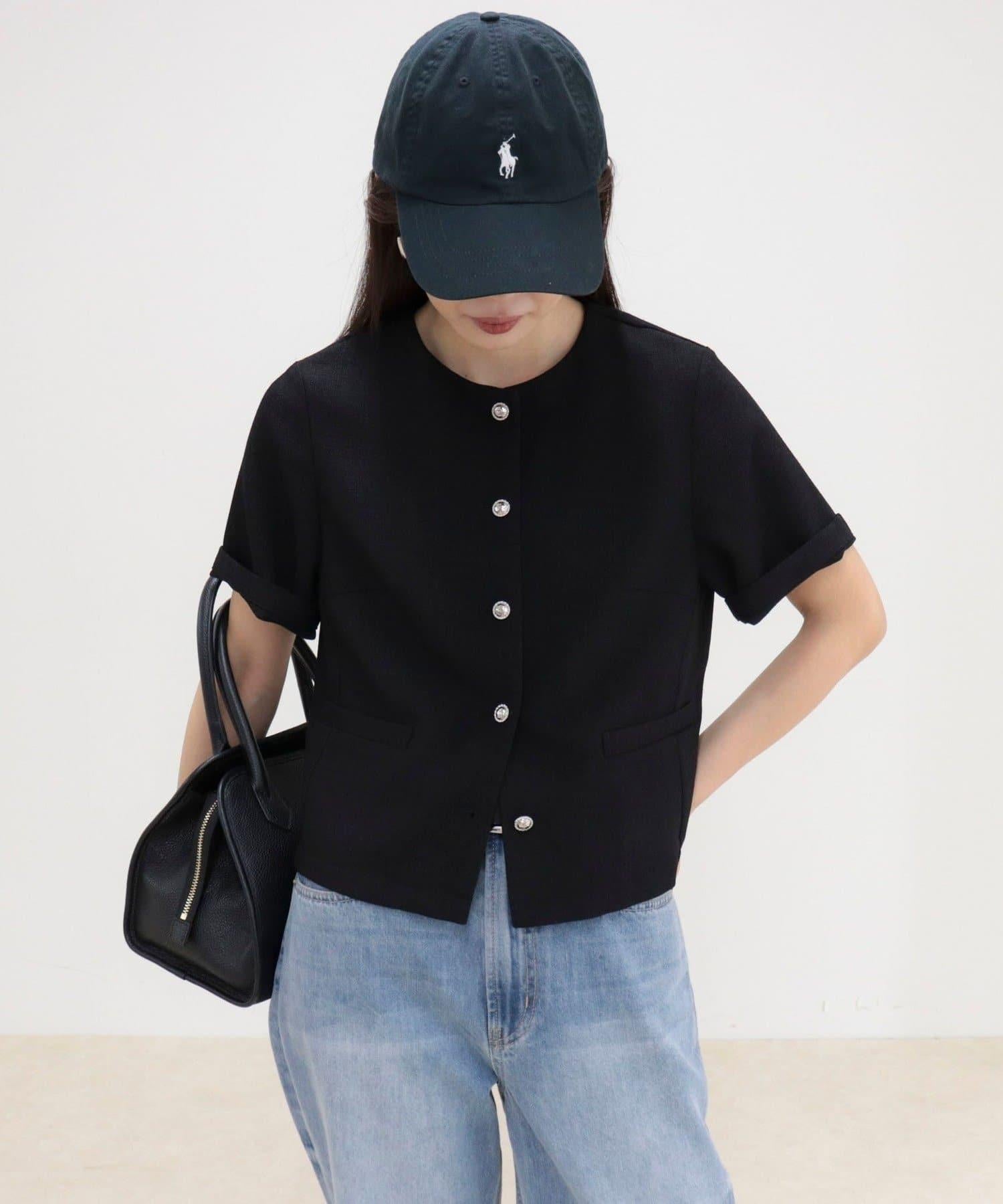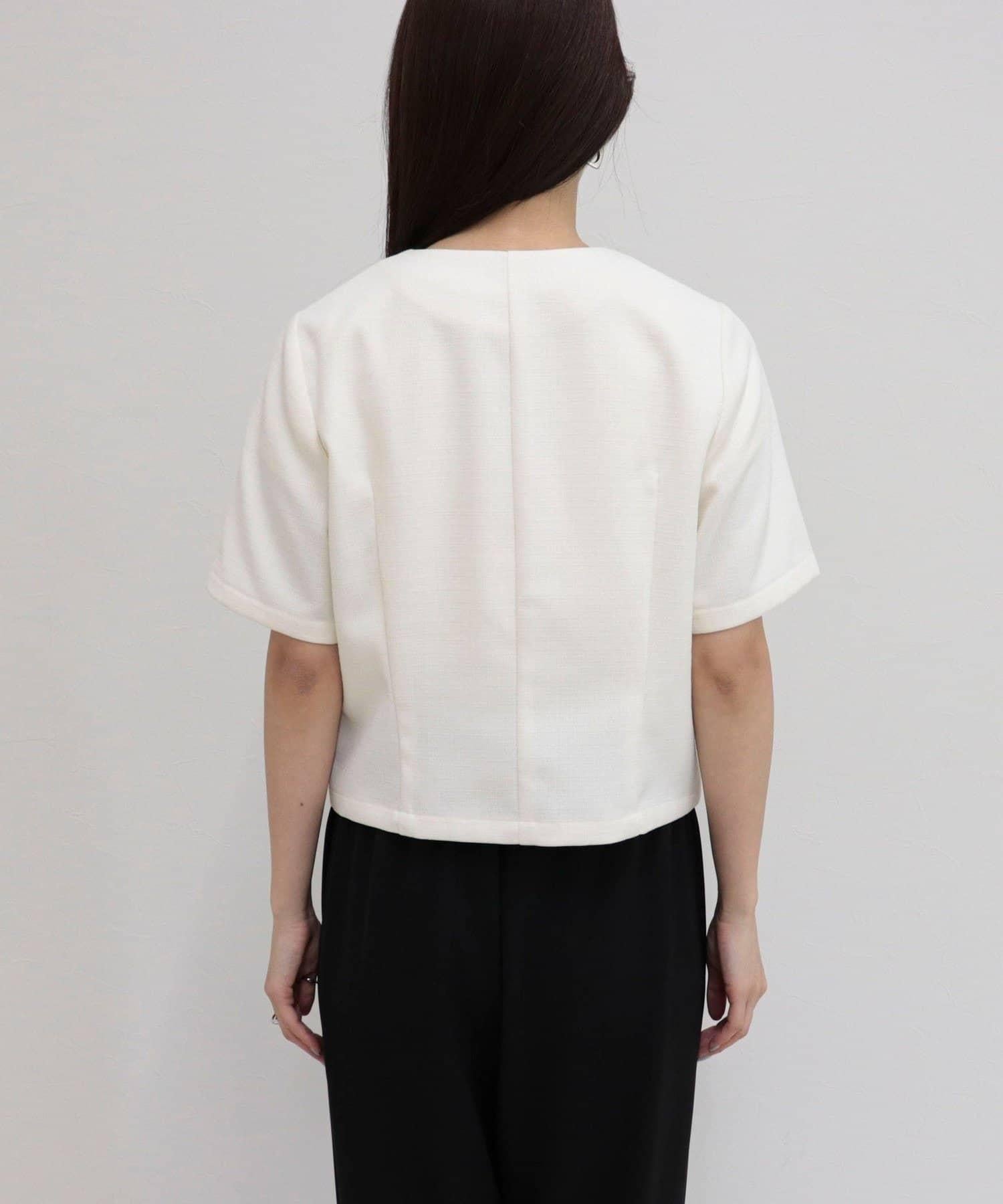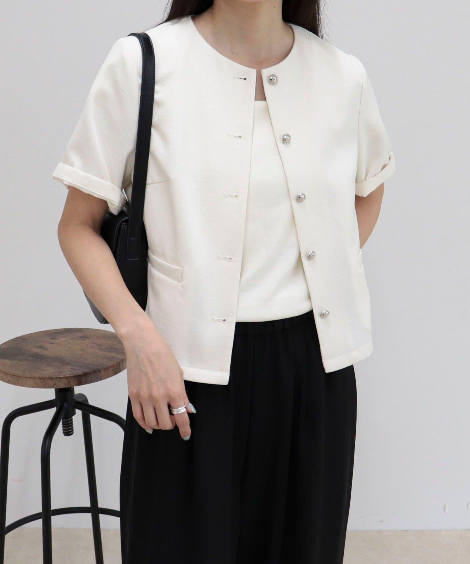 半袖夾克採用簡潔的無領設計,給人以優雅的印象。