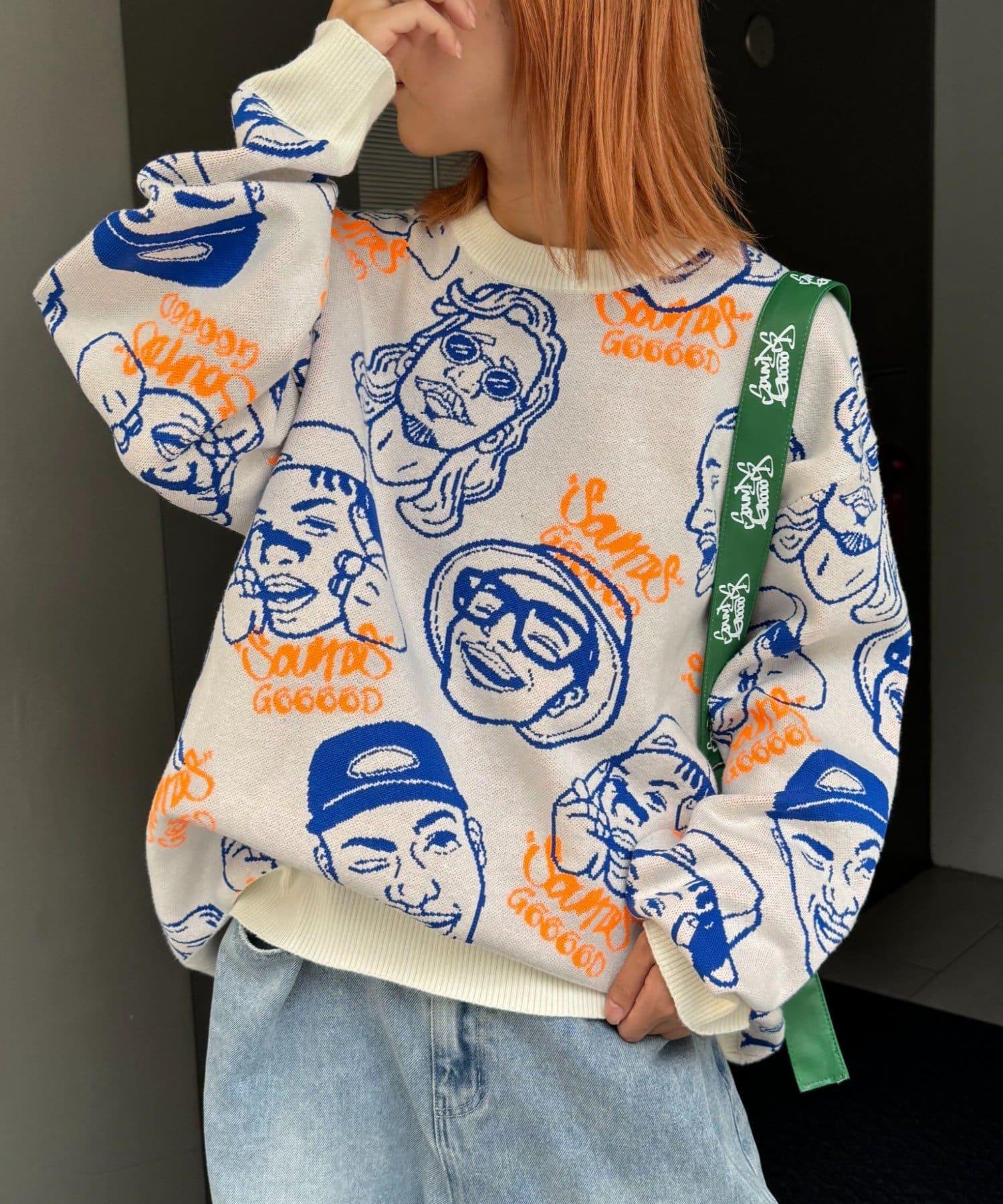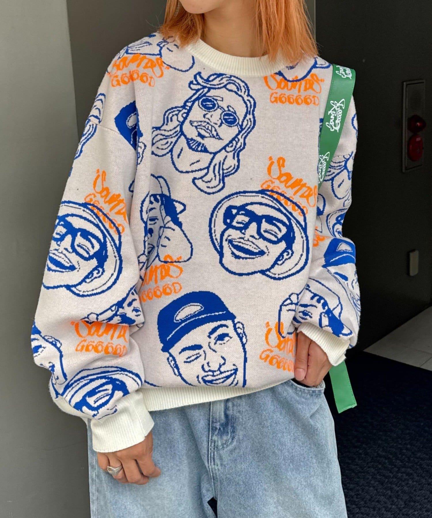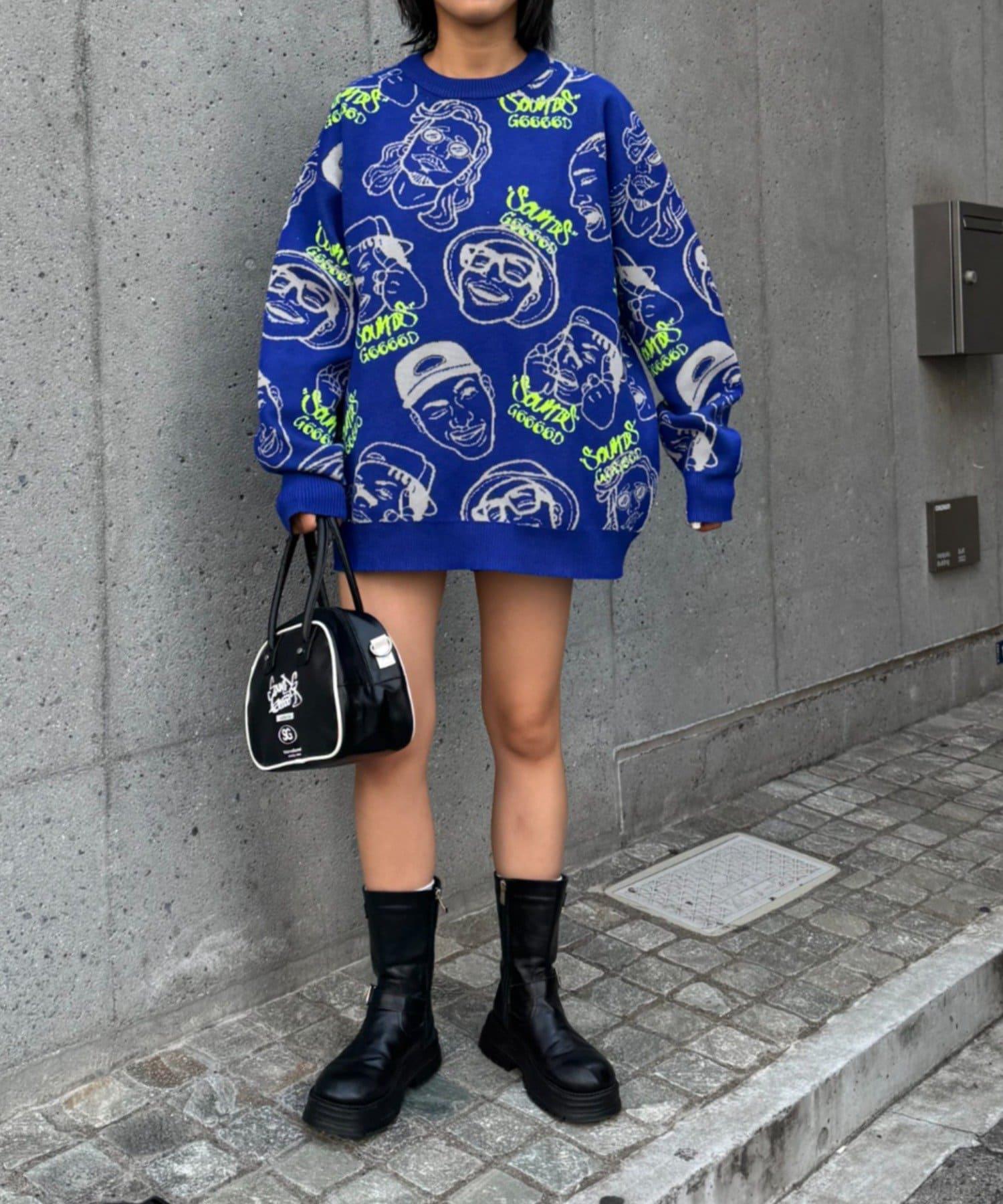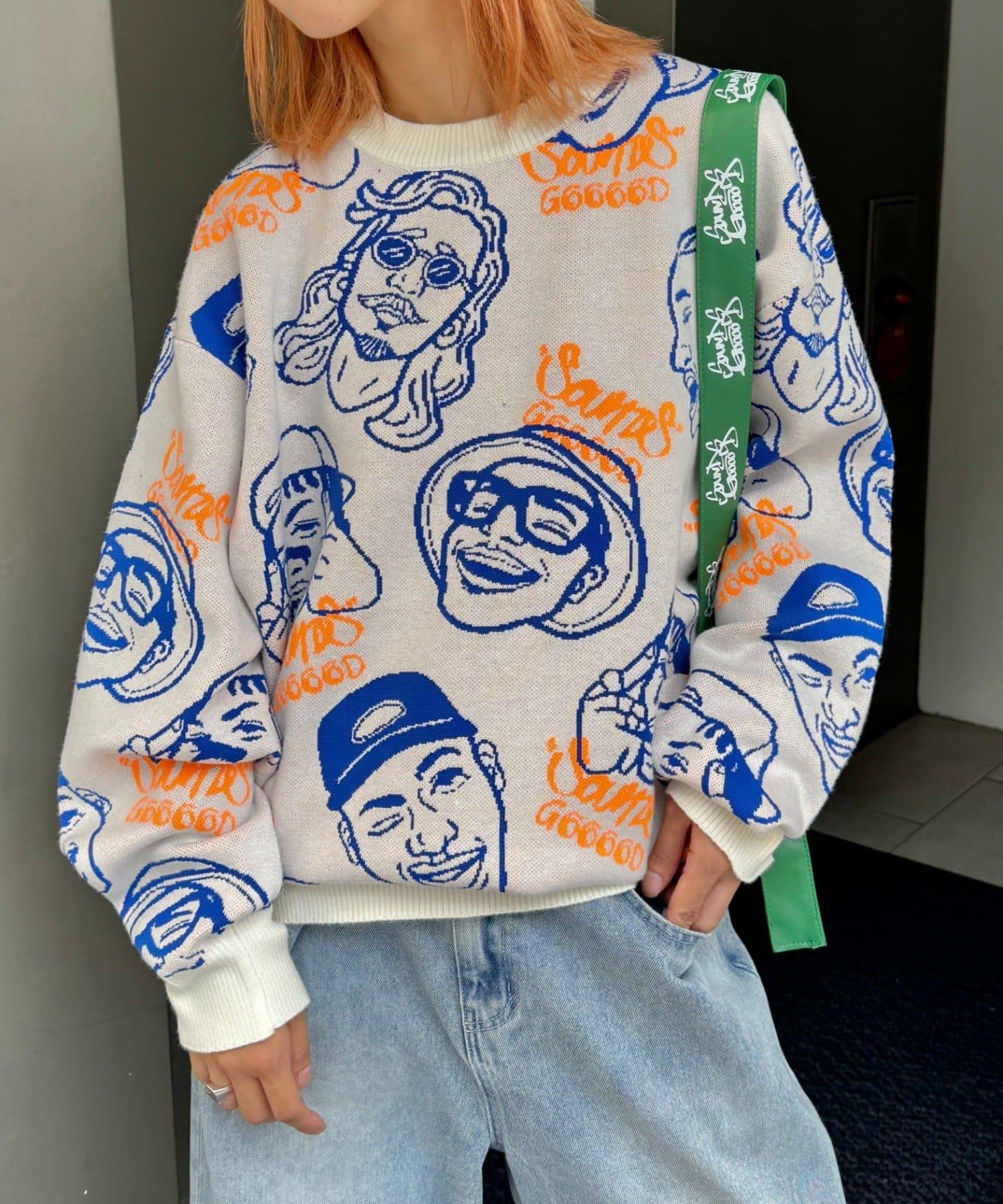 【SOUNDS GOOOOD】拼色臉部圖案針織衫