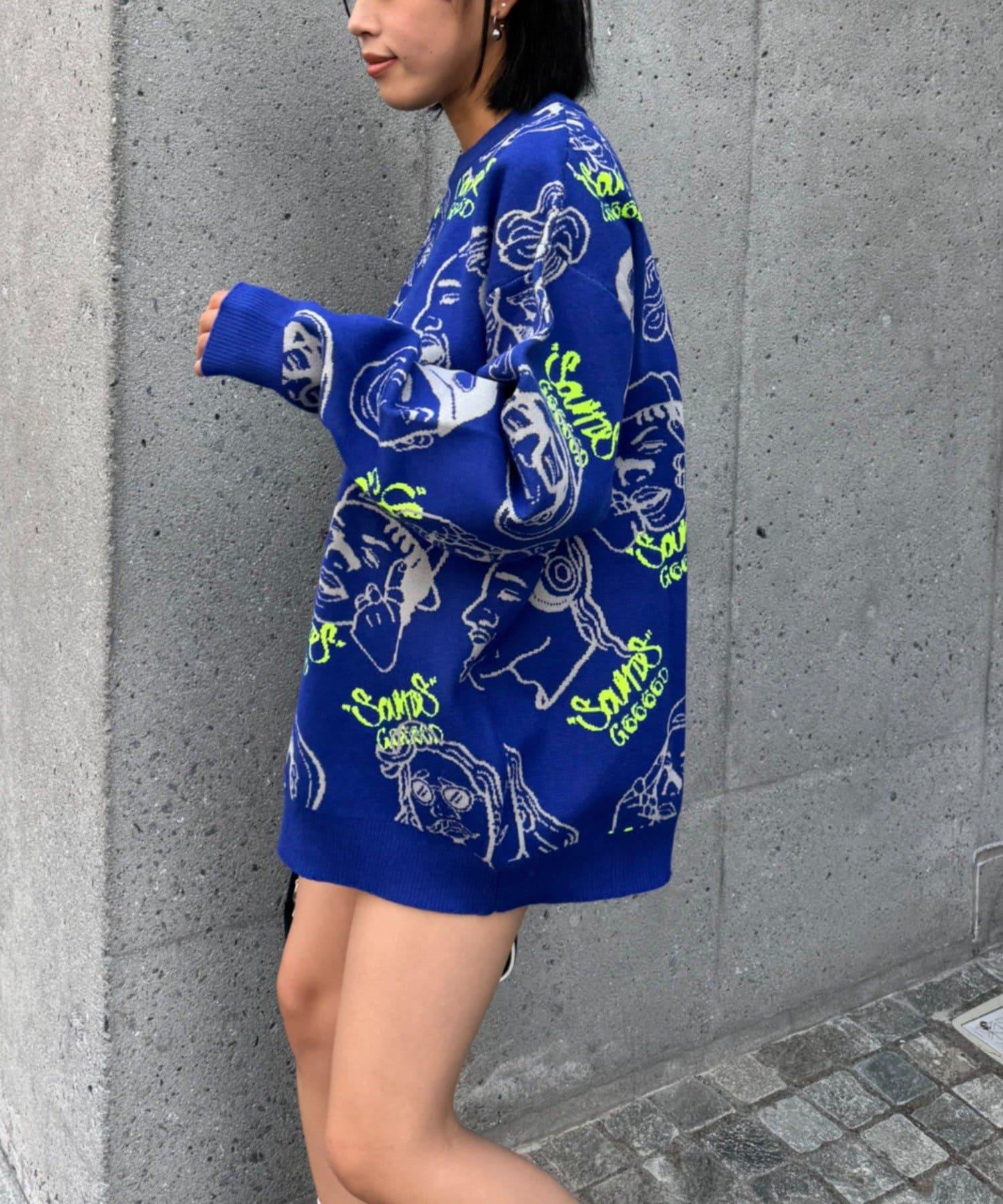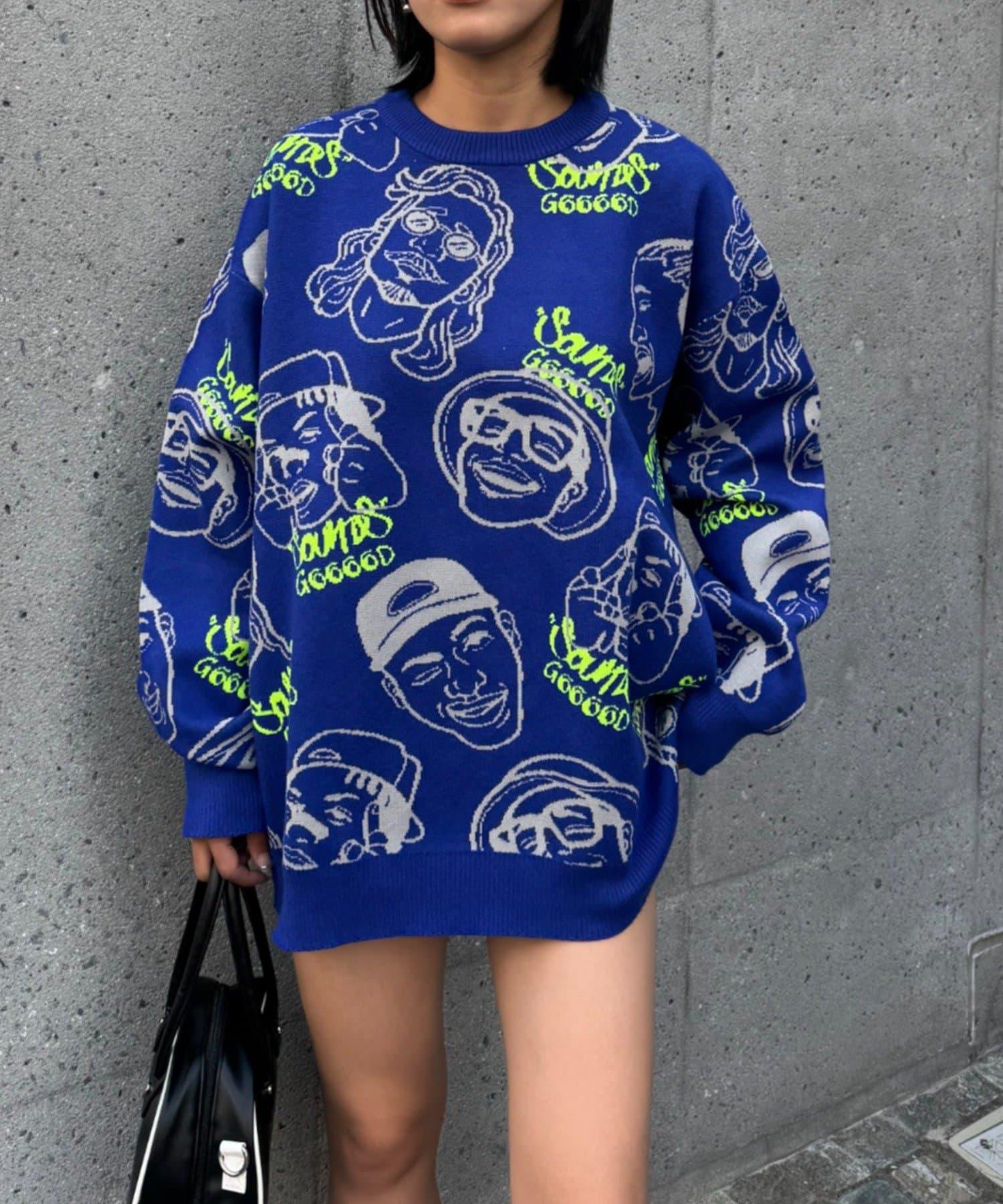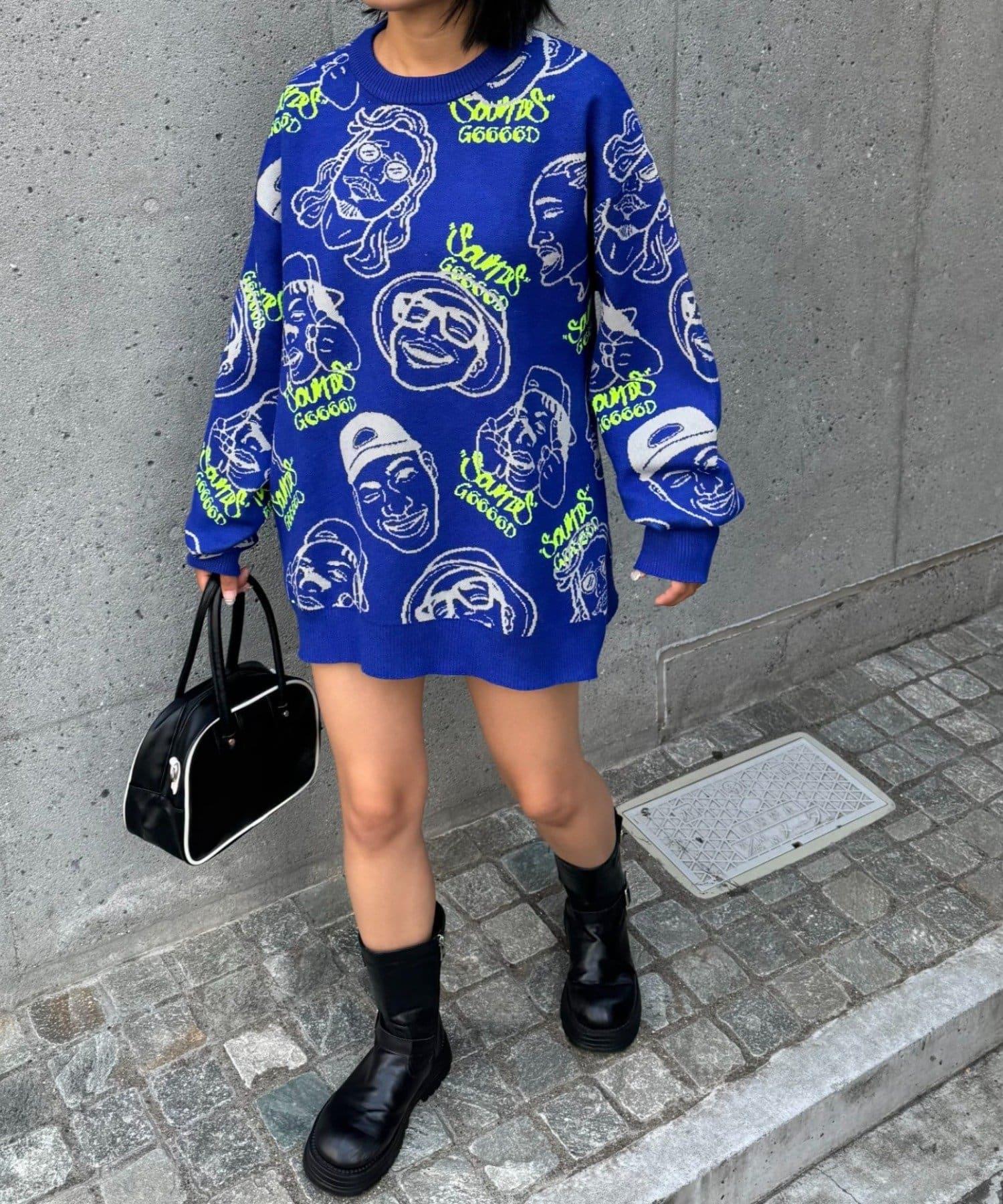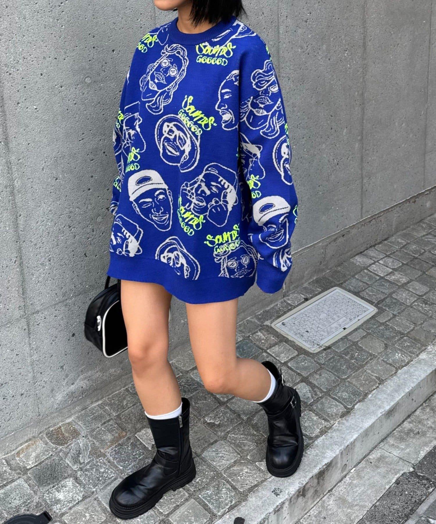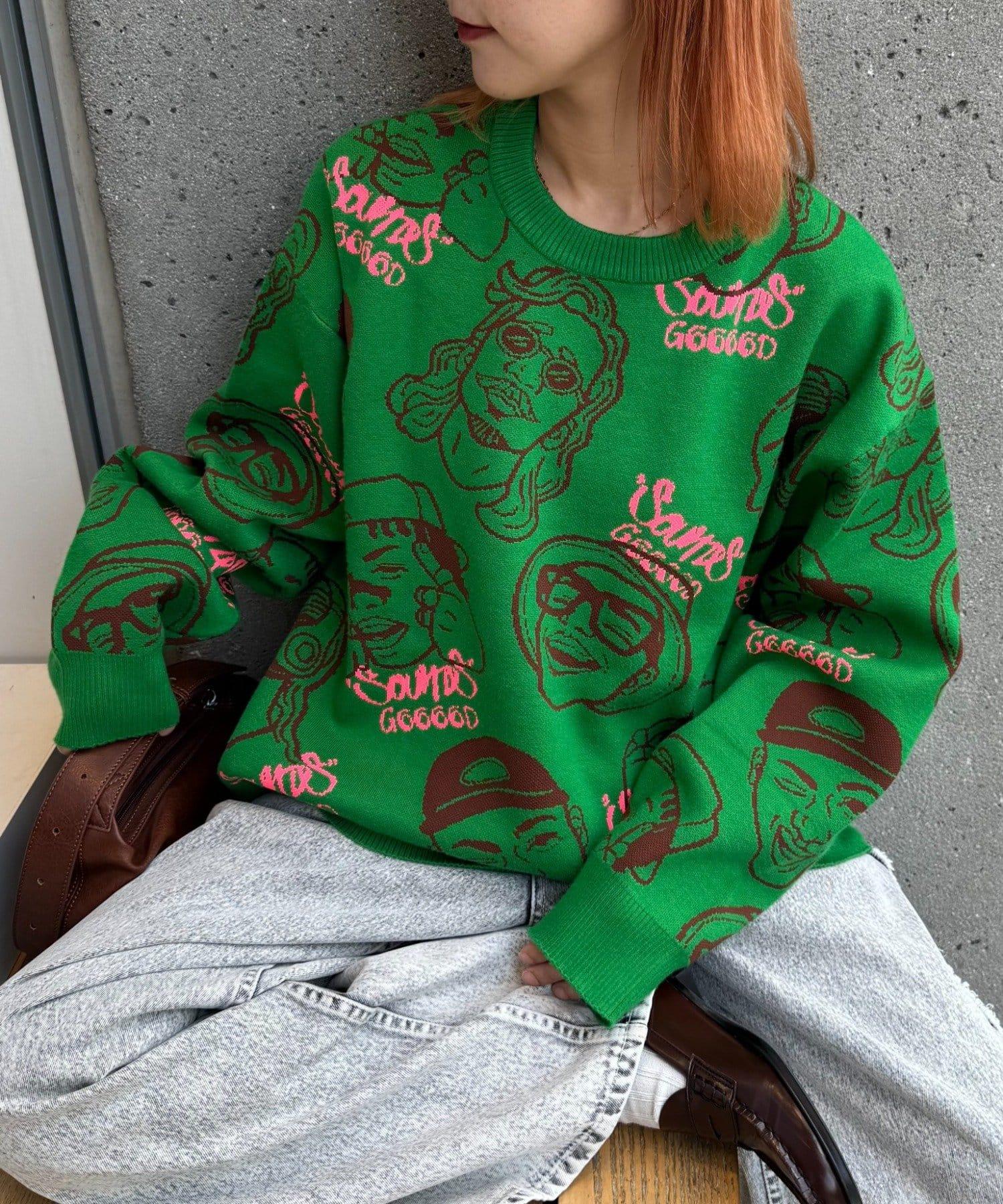 【SOUNDS GOOOOD】拼色臉部圖案針織衫