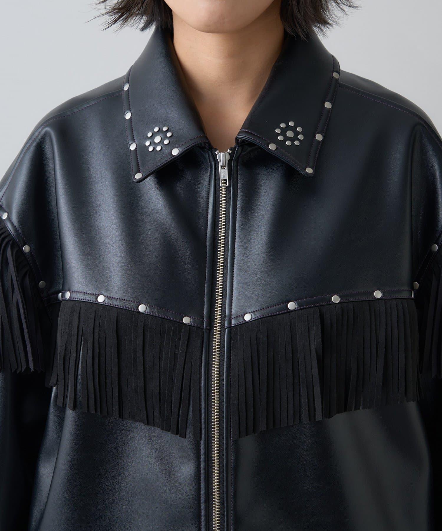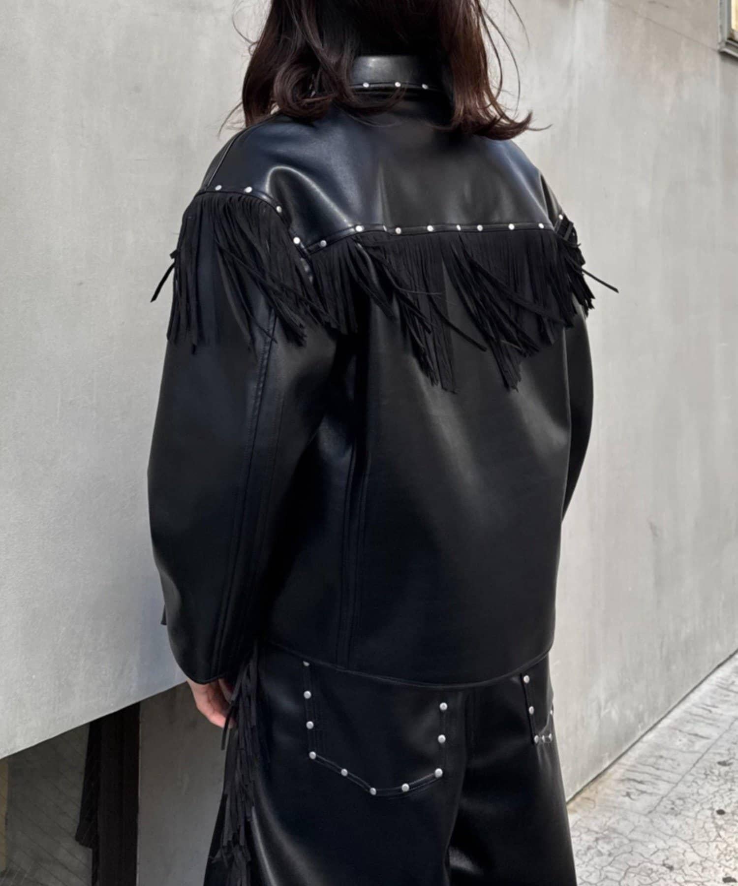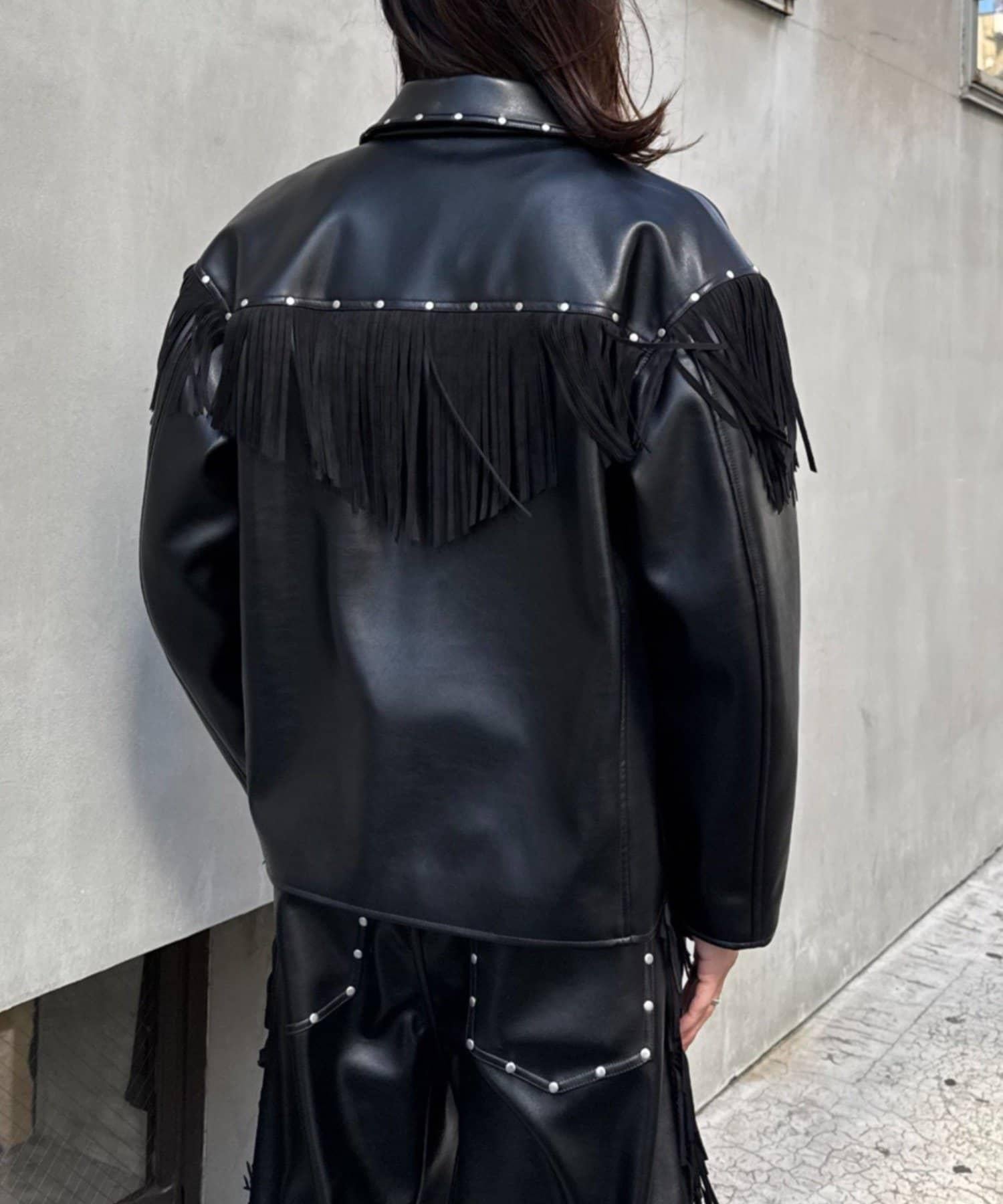 這款夾克上醒目的流蘇和鉚釘為您的著裝增添了亮點。