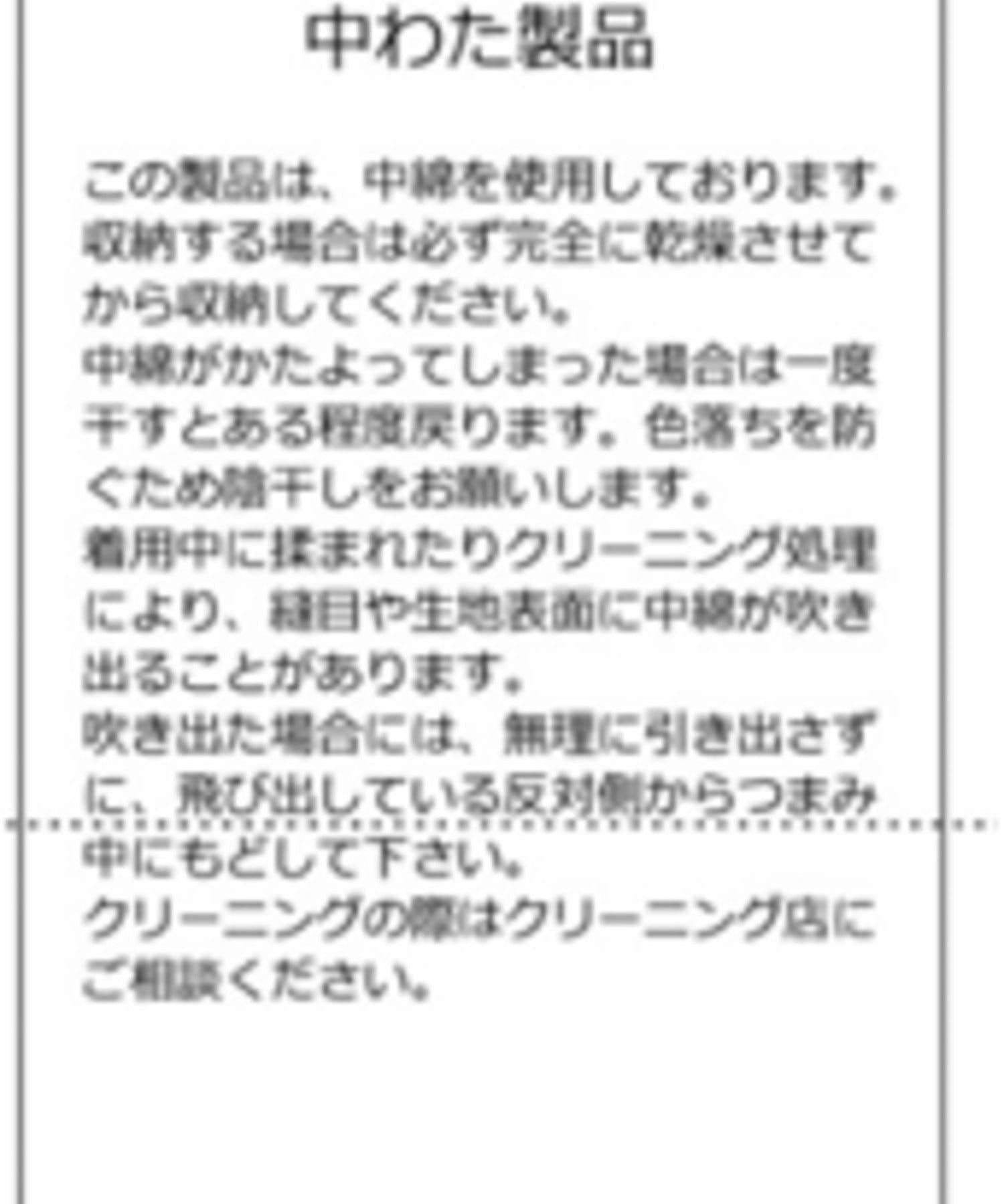 本產品採用顏料染色面料,專為時裝設計。由於染料的特性,請注意以下幾點: - 由於加工特性,請勿穿著或洗滌。