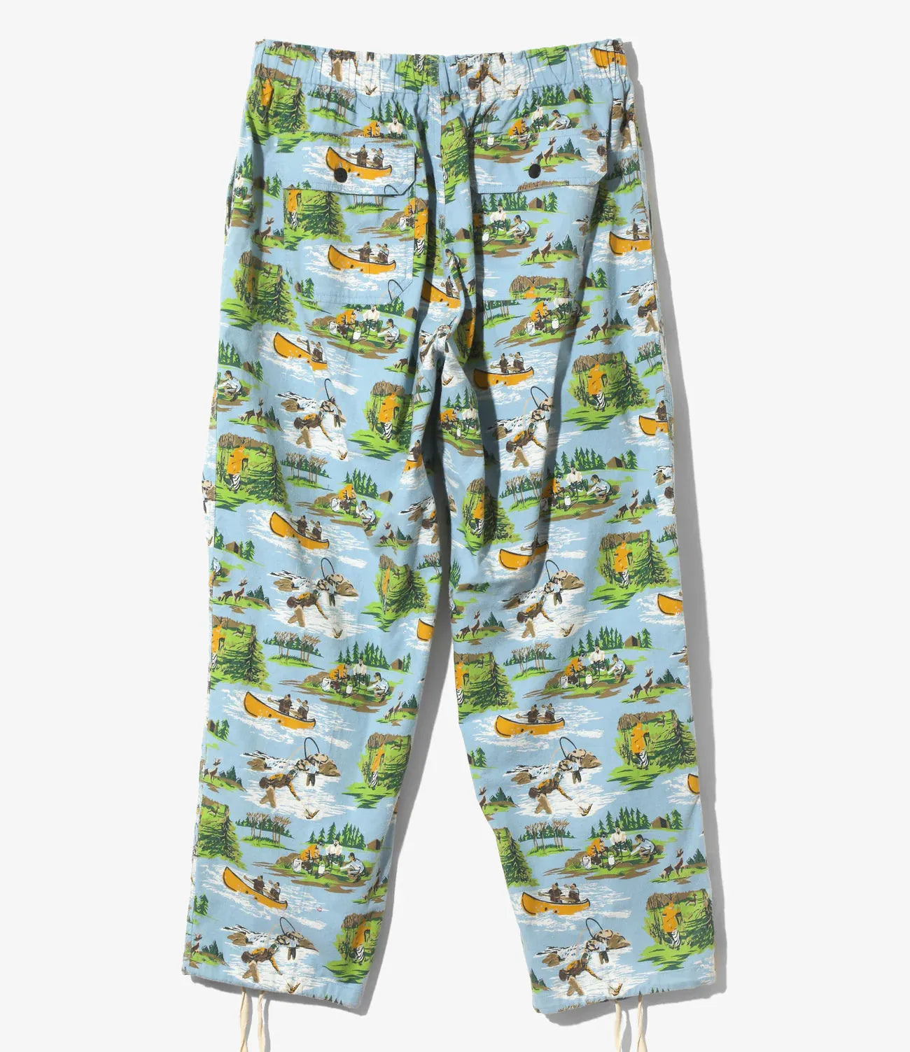 這款氣球長褲版型寬鬆,腰部和下襬採用繩帶設計,穿著輕鬆無束縛感。設計以戶外場景印花為特色,採用法蘭絨面料,具有秋冬季的舒適感。