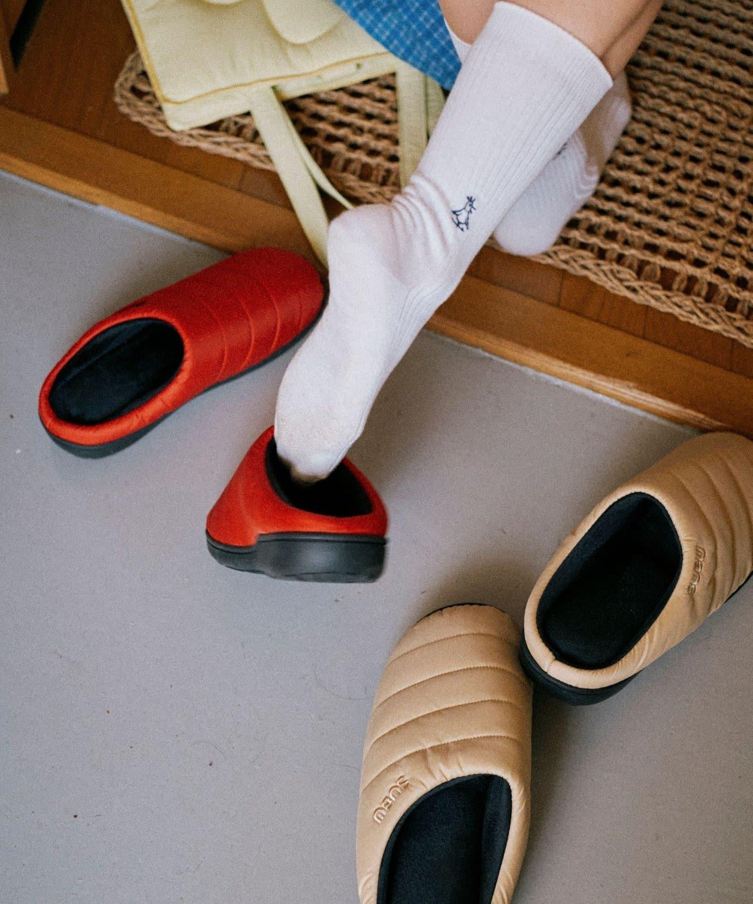 在寒冷的季節,SUBU 的涼鞋可以很快光腳穿上。👍系列是該品牌推出多年來一直深受喜愛的標準款式。