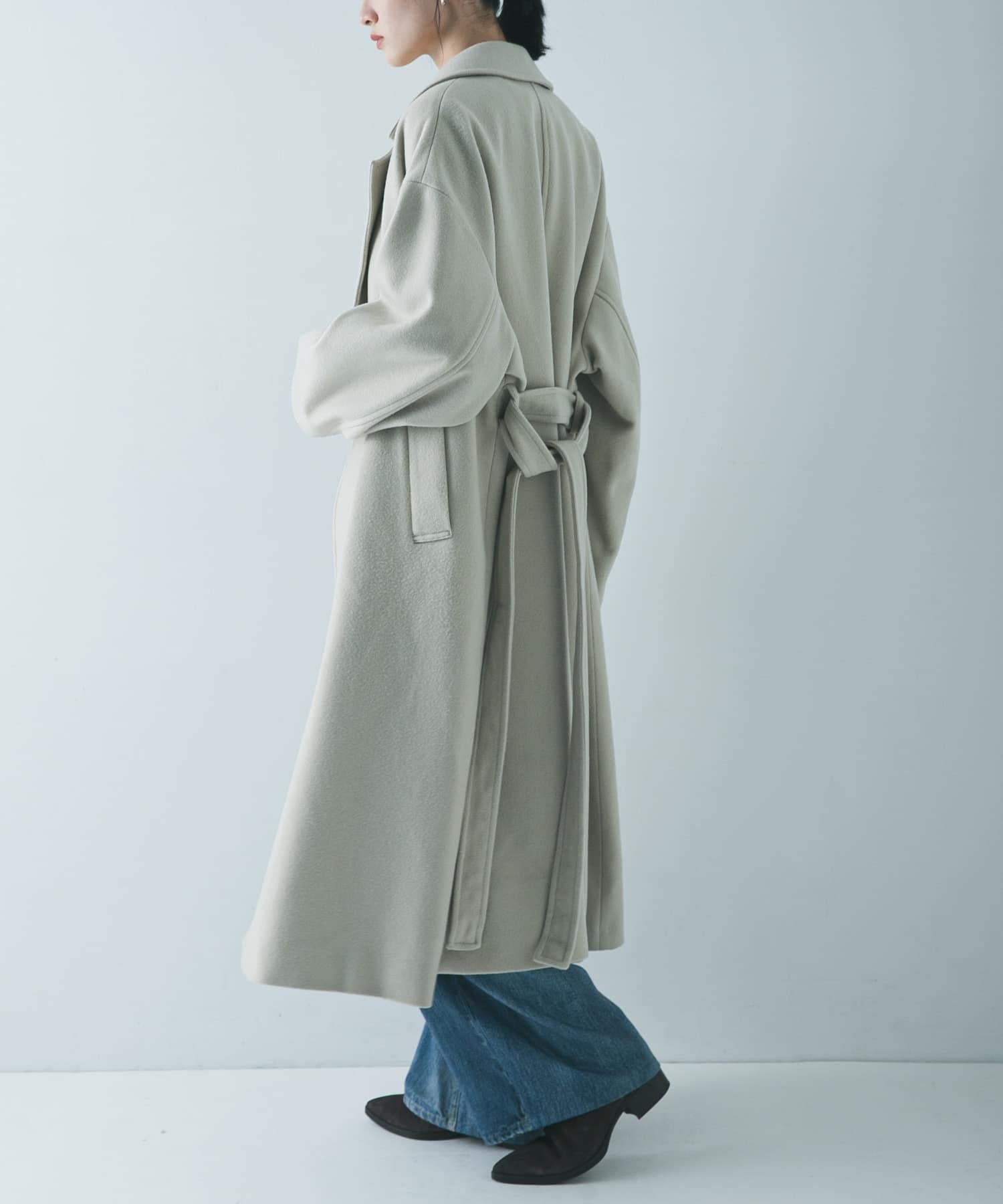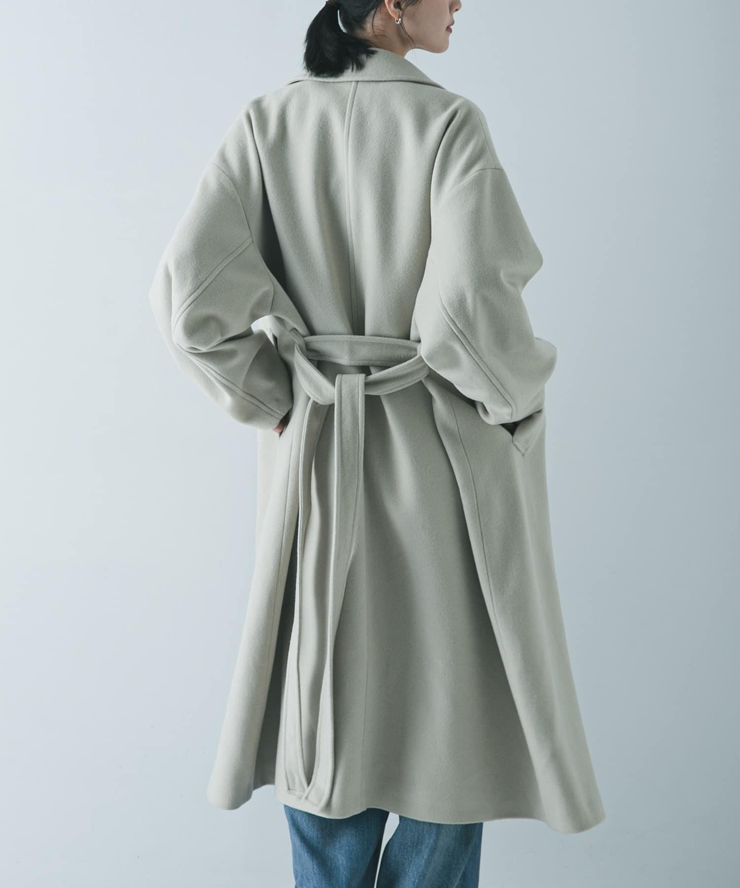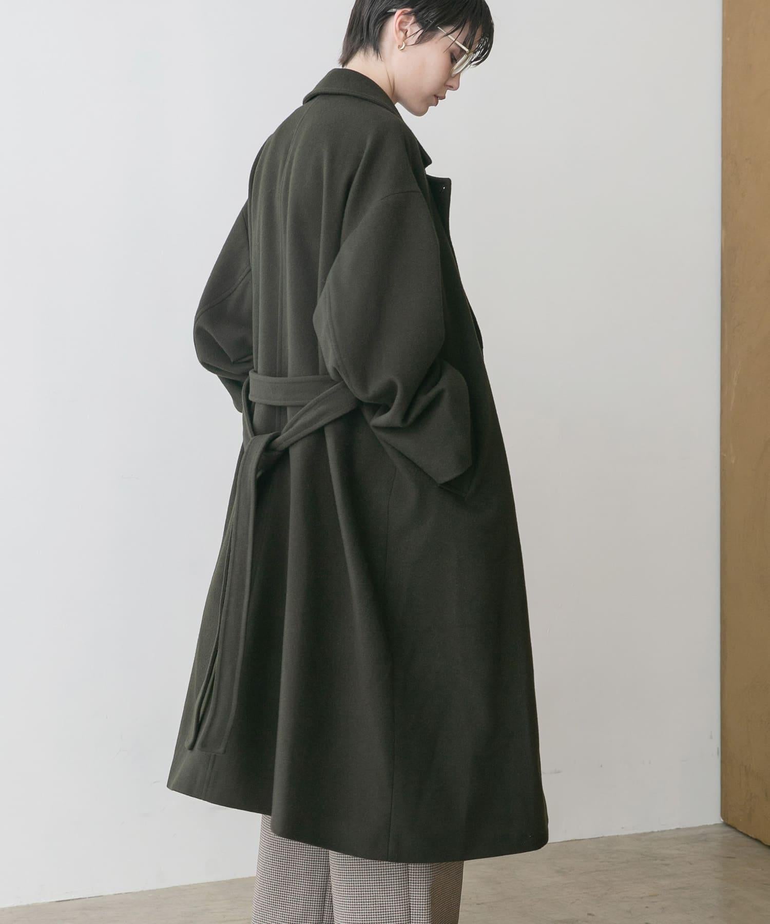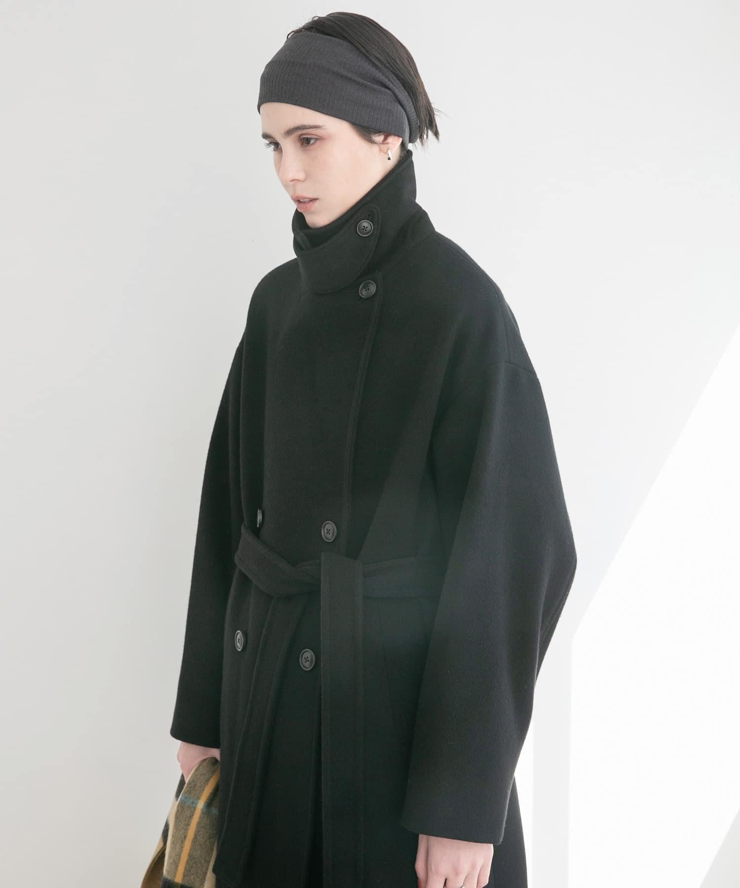 如果在腰間繫上配套的腰帶,就能展現出女性的利落氣質。領子可以翻起,形成立領,因此可以根據心情和風格改變印象。