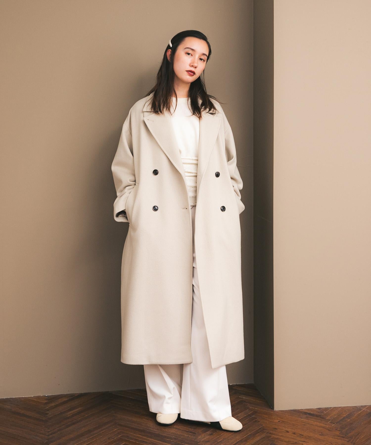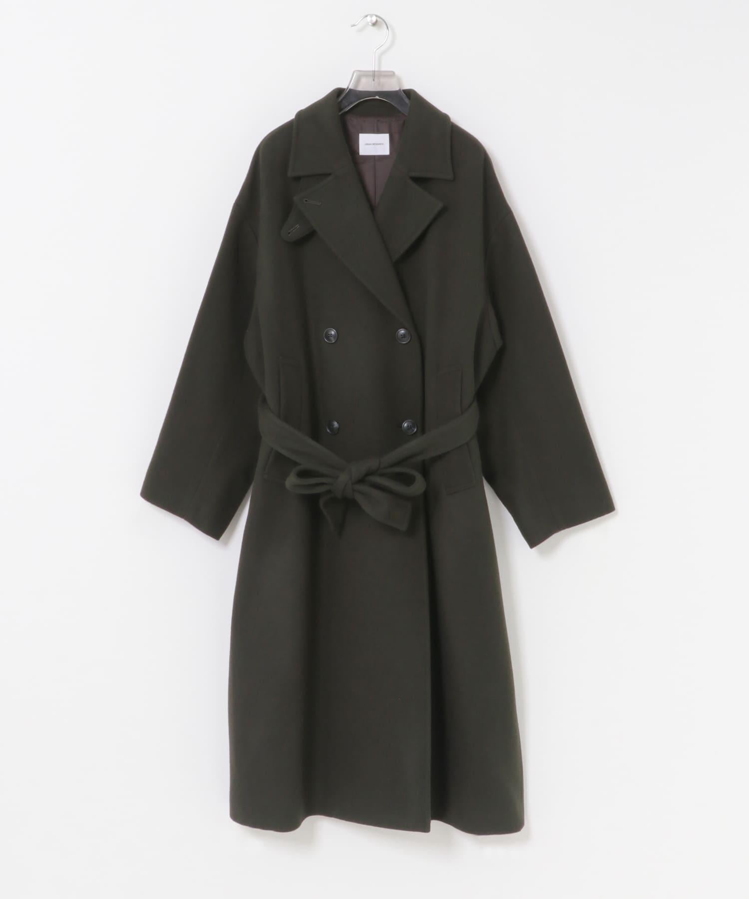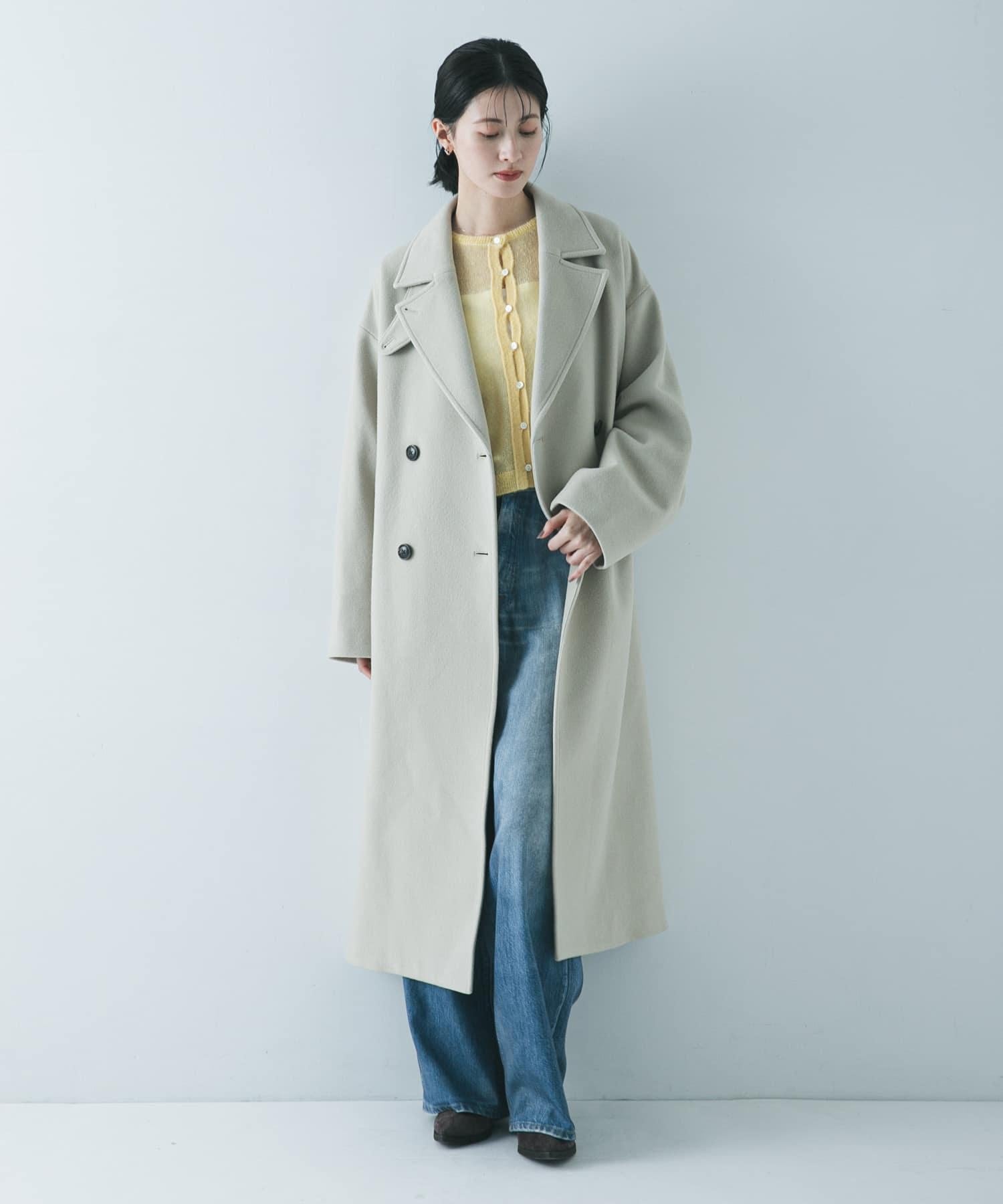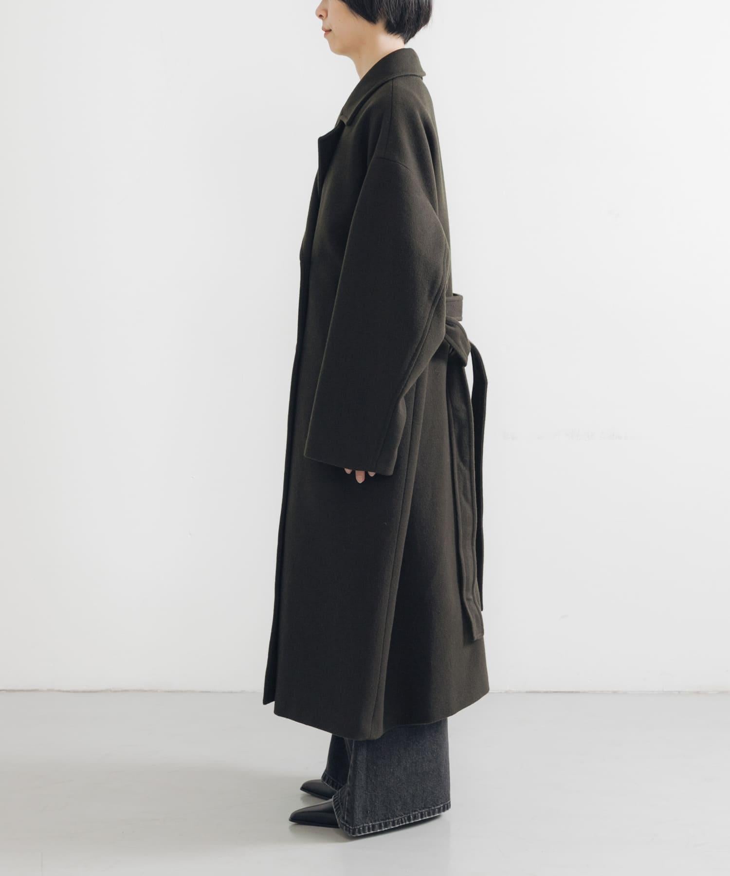 如果在腰間繫上配套的腰帶,就能展現出女性的利落氣質。領子可以翻起,形成立領,因此可以根據心情和風格改變印象。