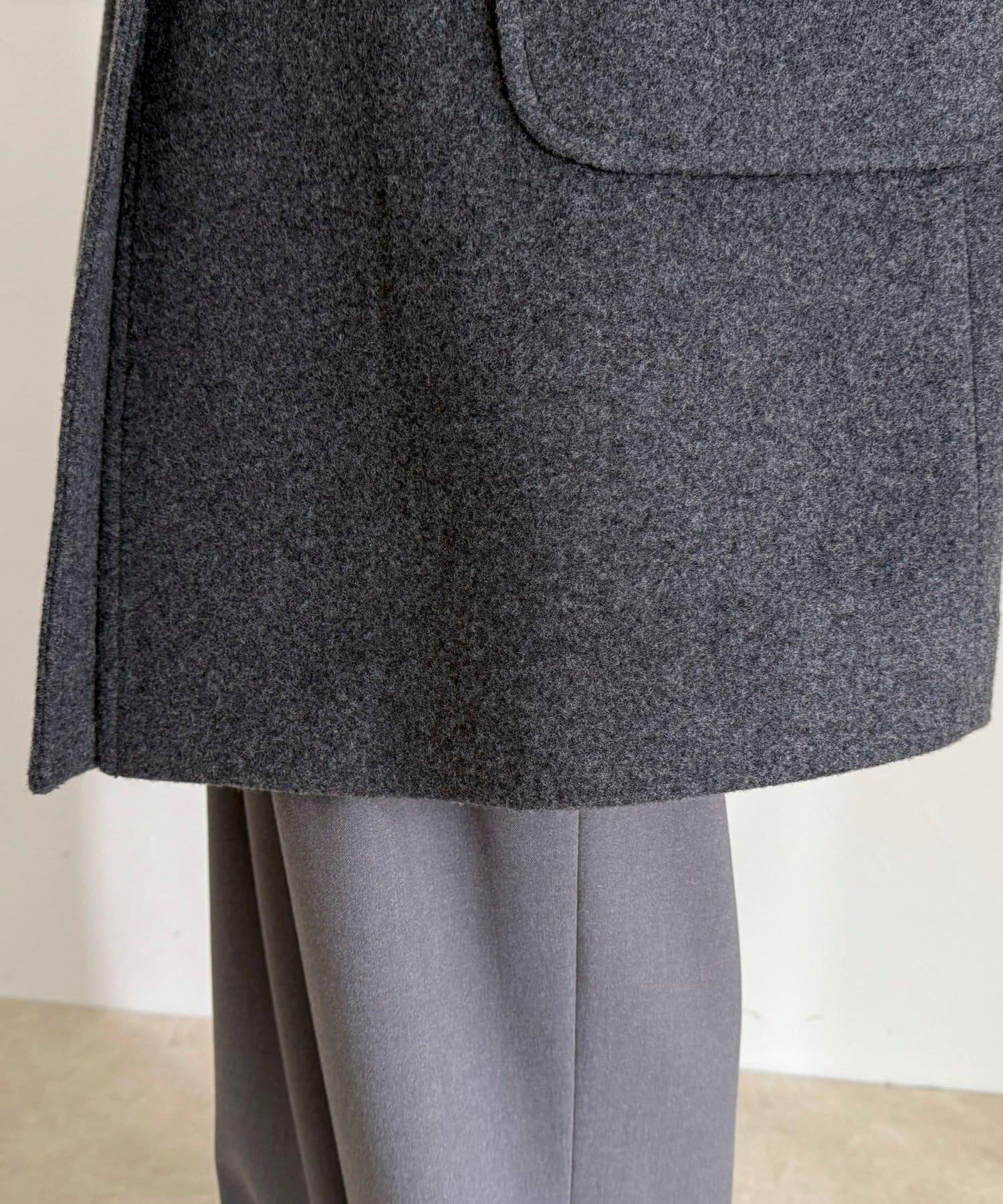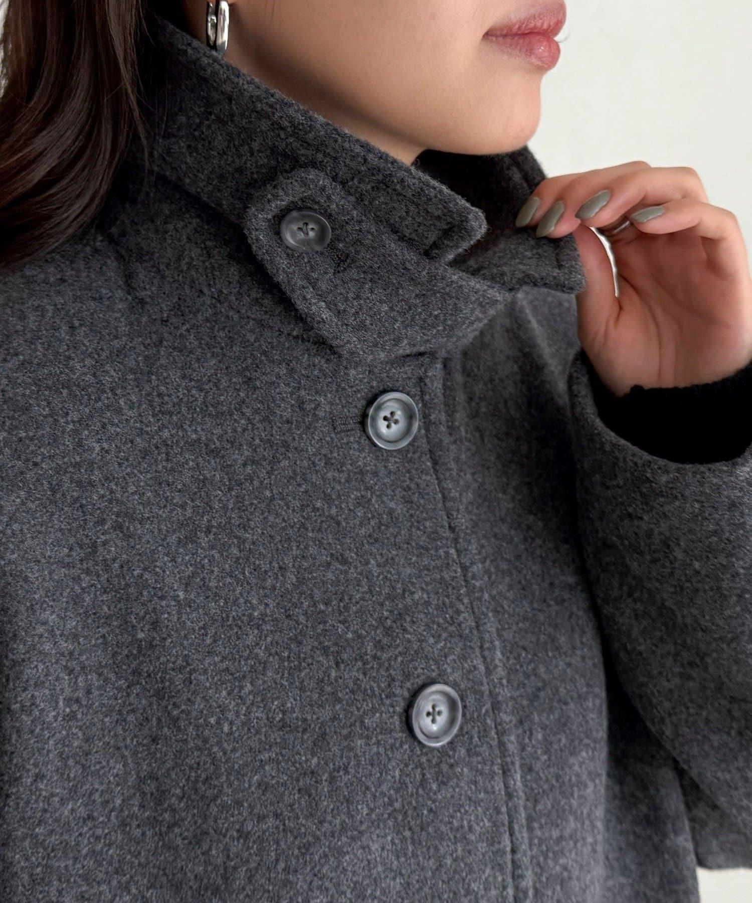 使用質地柔軟的 100%羊毛面料的高品質不鏽鋼中層大衣。