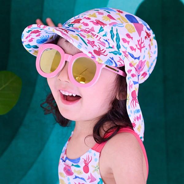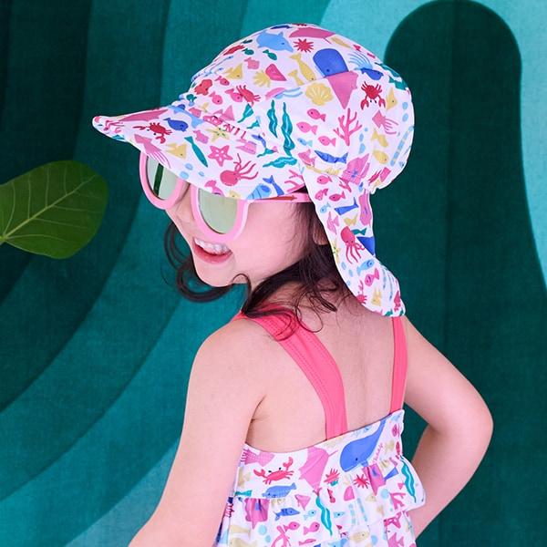 它具有防紫外線功能,帽簷和懸掛布料可保護孩子免受強烈陽光的傷害。